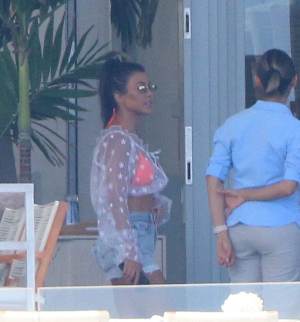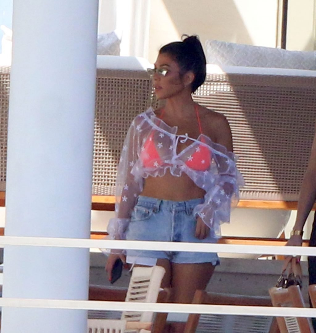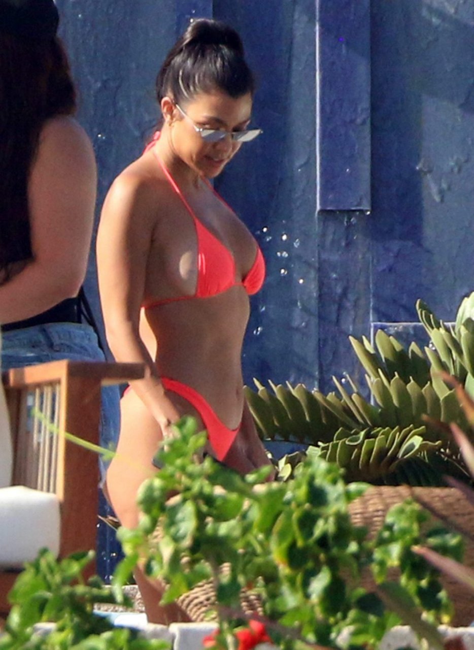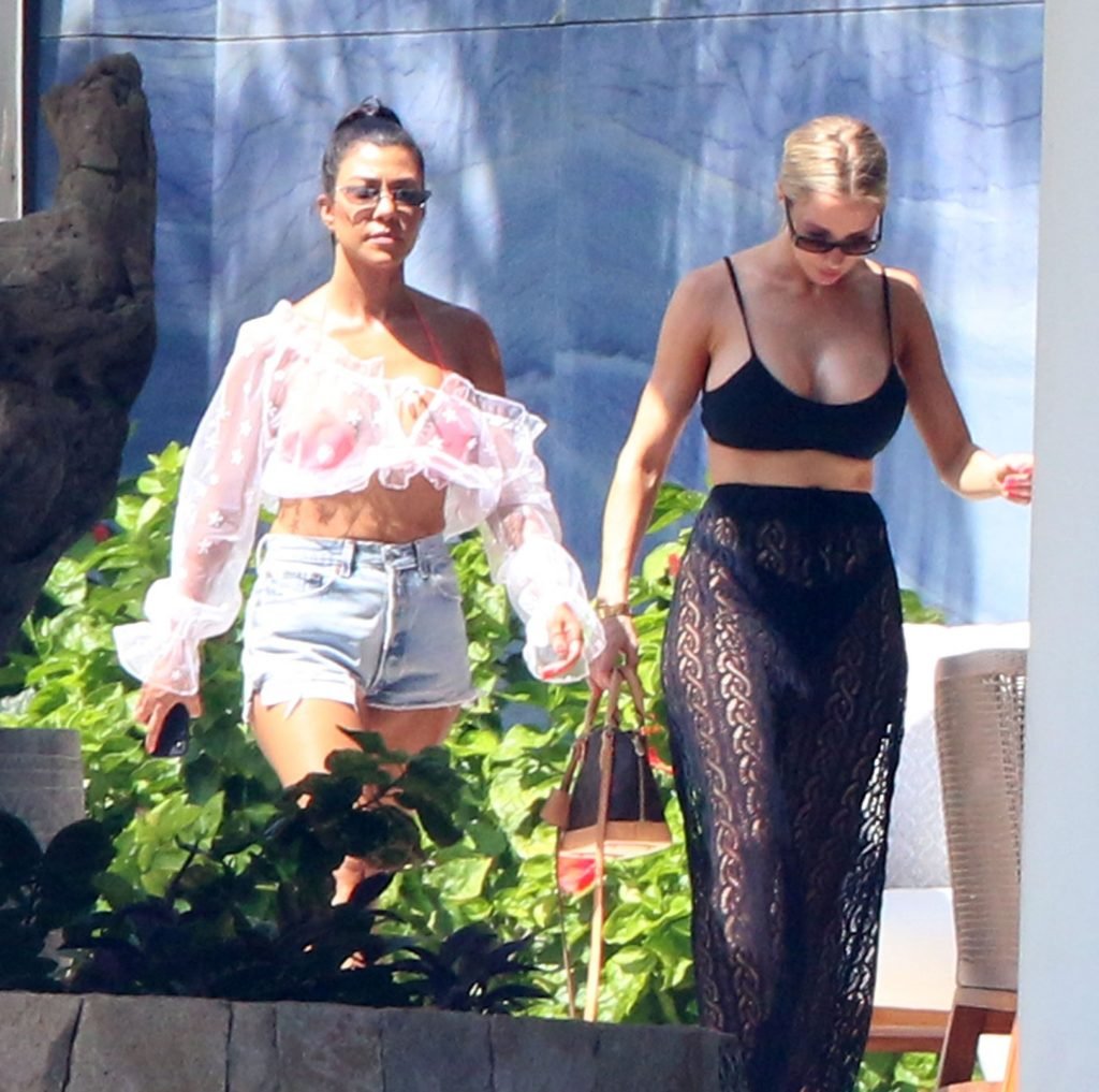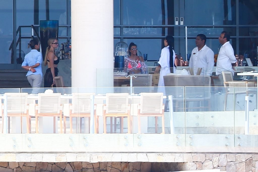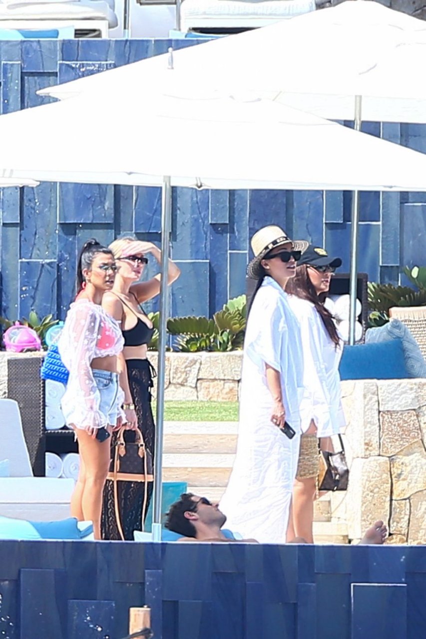 Kourtney Kardashian (39) continua la sua caldissima vacanza con gli amici a Cabo San Lucas, in Messico, mentre i suoi figli stanno trascorrendo del tempo con l’ex Scott Disick e la sua fidanzata Sofia Richie, 25/08/2018. Il gruppo si è incontrato per pranzo al ristorante del loro resort, poi si è avventurato sulla spiaggia prima di tornare al resort.