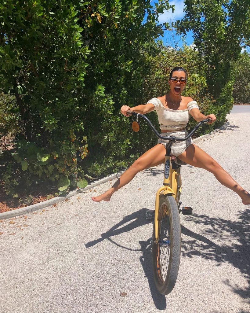 Kourtney Kardashian indossa un sexy bikini arancione dorato sulla spiaggia a Turks & Caicos – Instagram, 04/09/2018. Kourtney Kardashian è una star della televisione reality, attrice TV, modella, socialite. Età – 38.