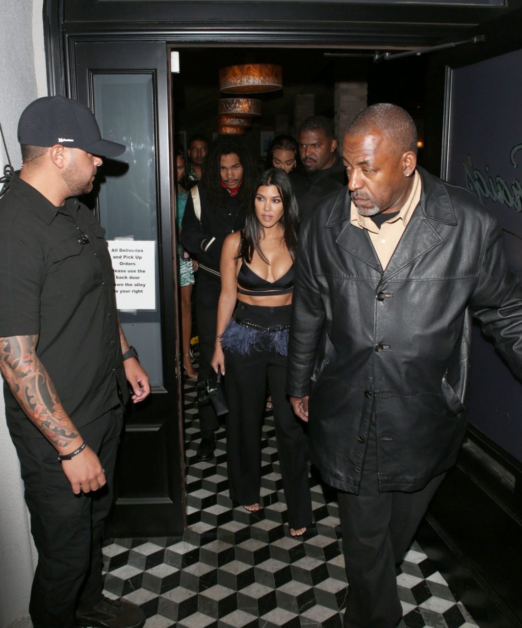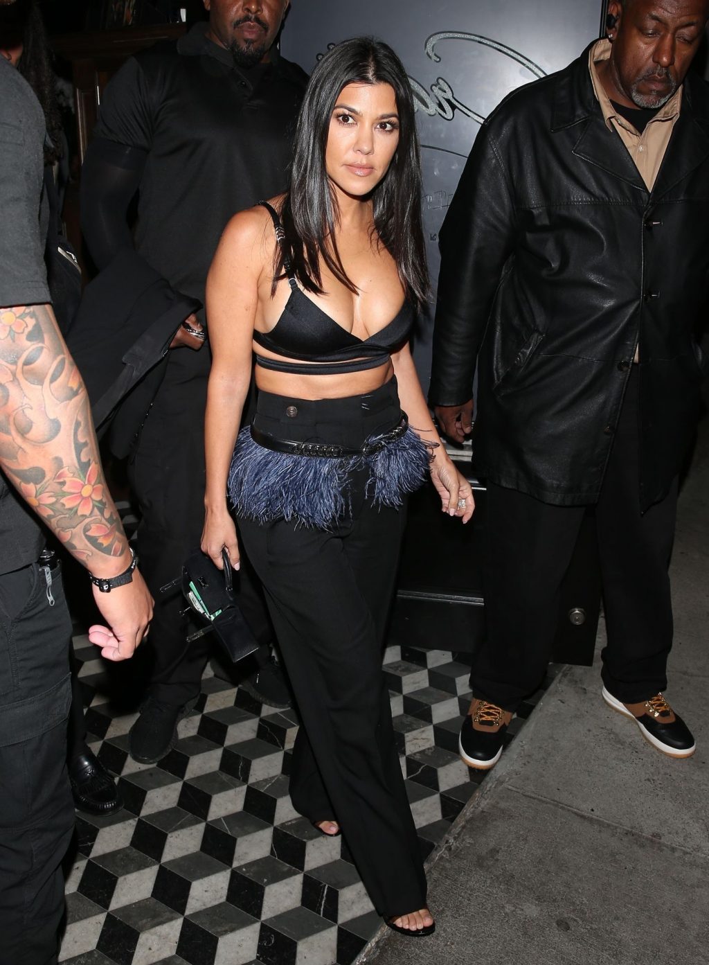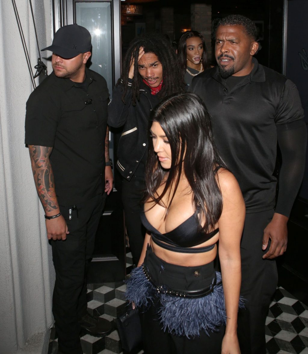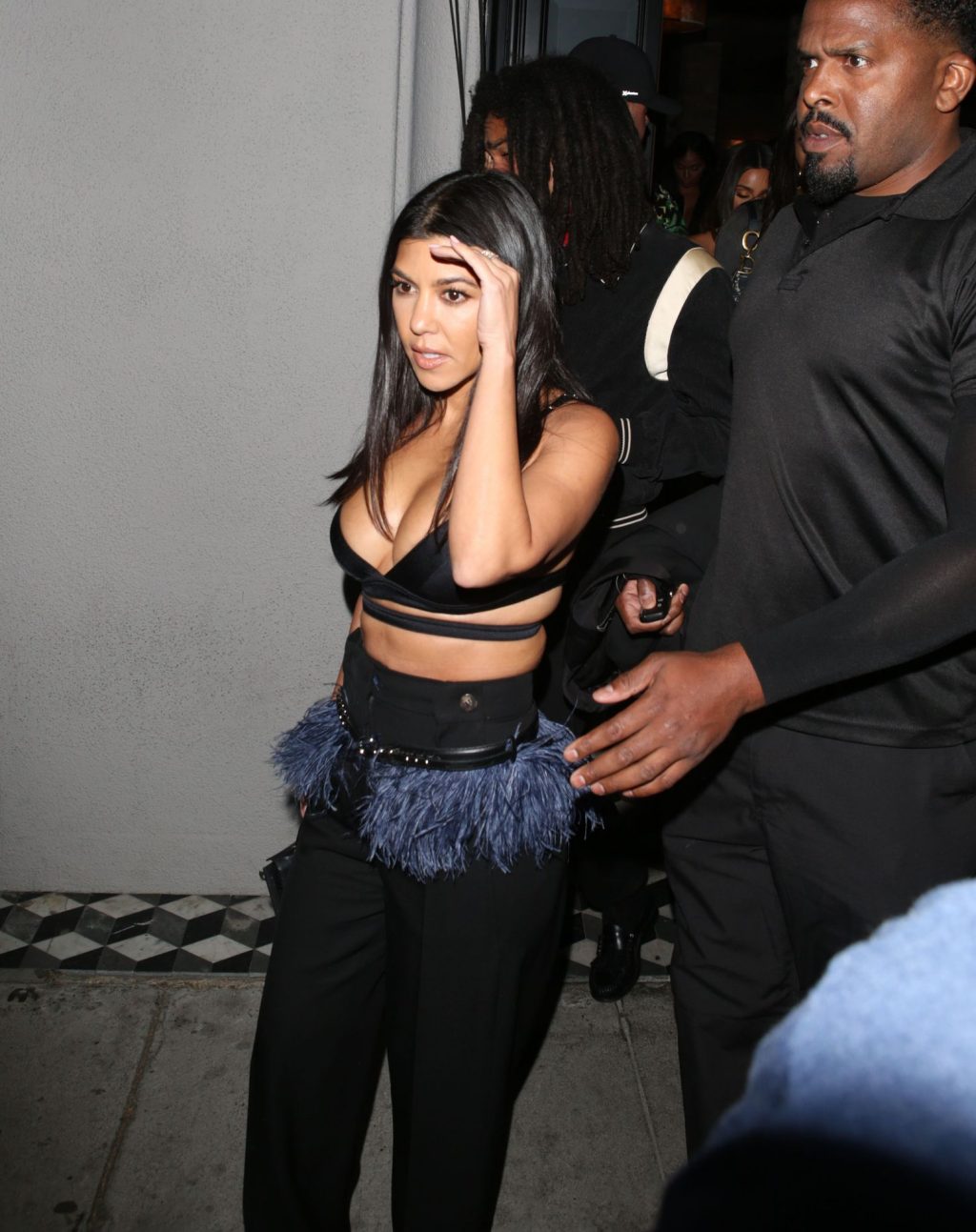 Kourtney ha mostrato con orgoglio il suo décolleté durante una serata con il suo flirt intermittente Luka, la modella Winnie Harlow, la sorella Kim Kardashian e suo marito Kanye West. Kourtney ha stupito con il suo sexy crop top e la cintura di piume durante un’uscita da Craig’s. Kourtney e Winnie sono state poi viste mentre facevano festa al Nice Guy.