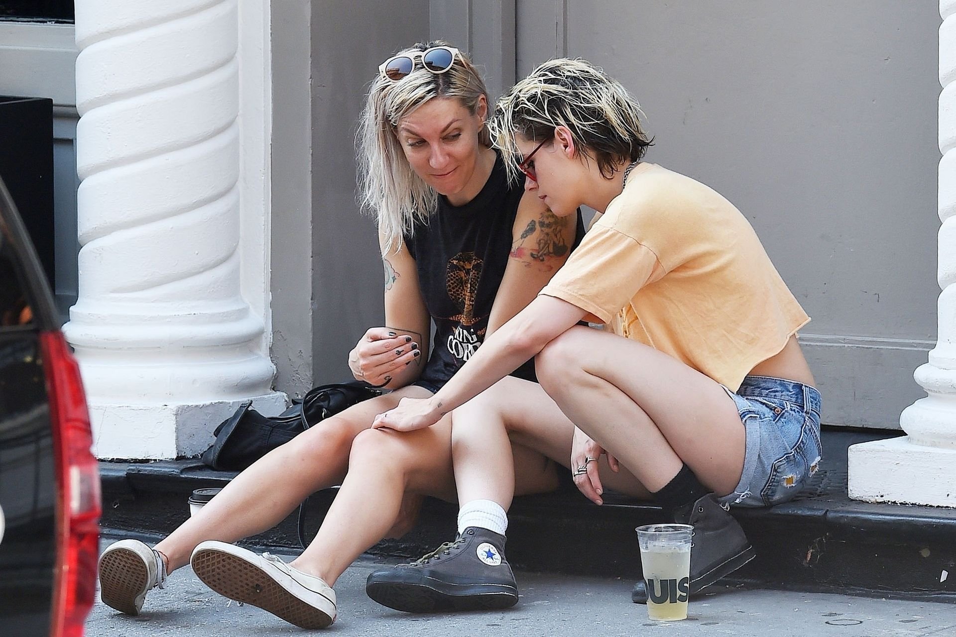Kristen Stewart bacia appassionatamente la scrittrice Dylan Meyer su una scaletta a New York durante un pomeriggio fuori, 15/08/2019.