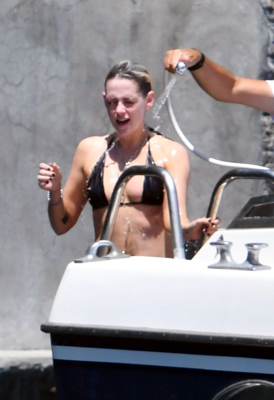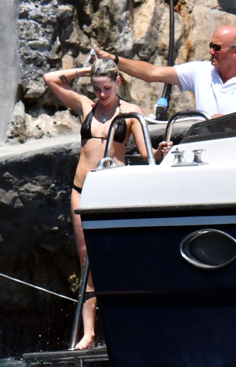 Mostrando la sua figura snella nel suo piccolo bikini nero succinto, l’attrice Kristen Stewart è stata avvistata durante le sue vacanze estive sulla Costiera Amalfitana, 14/07/2019. Kristen, famosa per il suo ruolo nelle trilogie di “Twilight”, si è divertita a tuffarsi dalla sua barca e a rilassarsi con la fidanzata Stella Maxwell e alcuni amici, andando topless per godersi il caldo sole italiano.