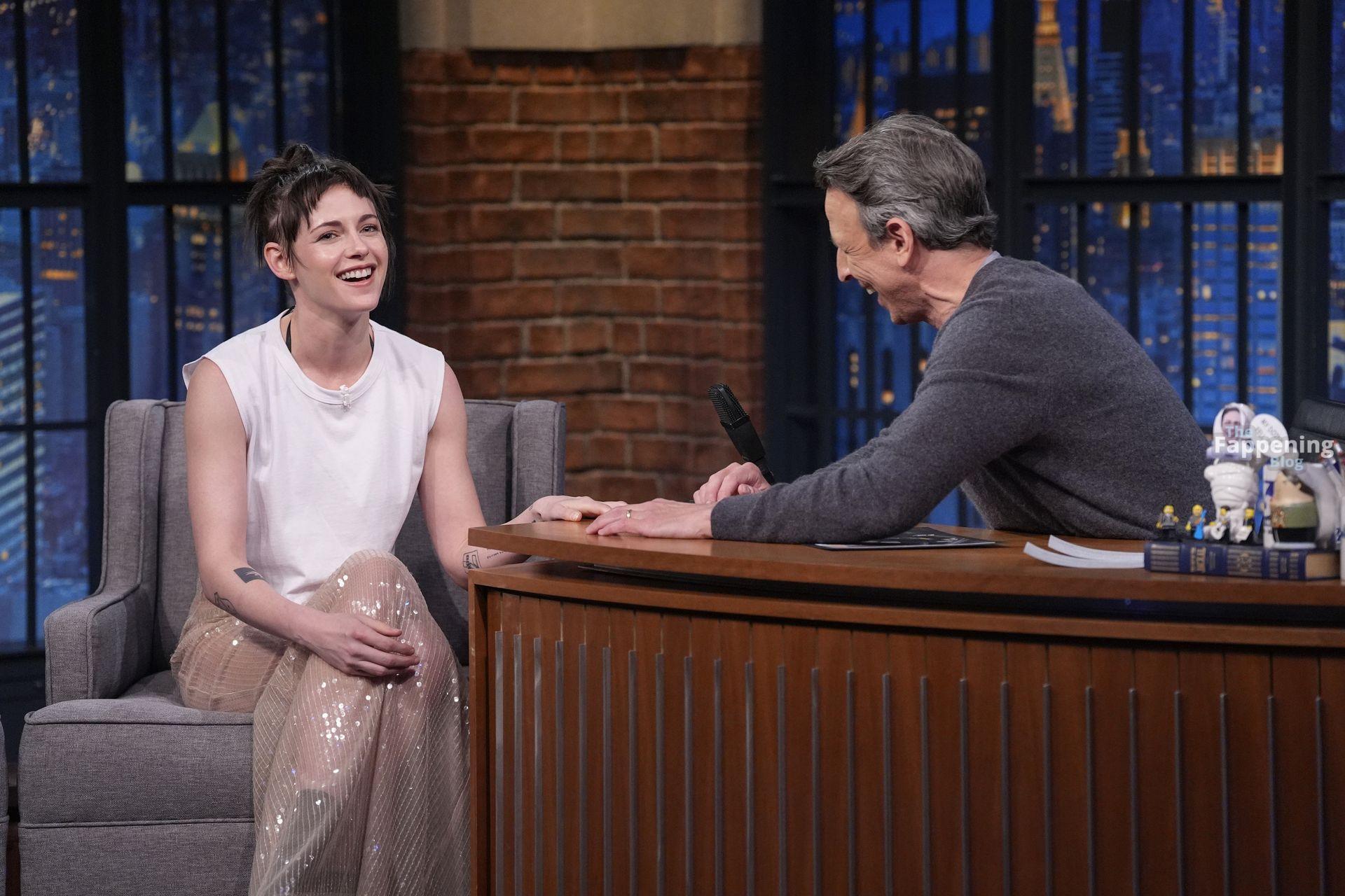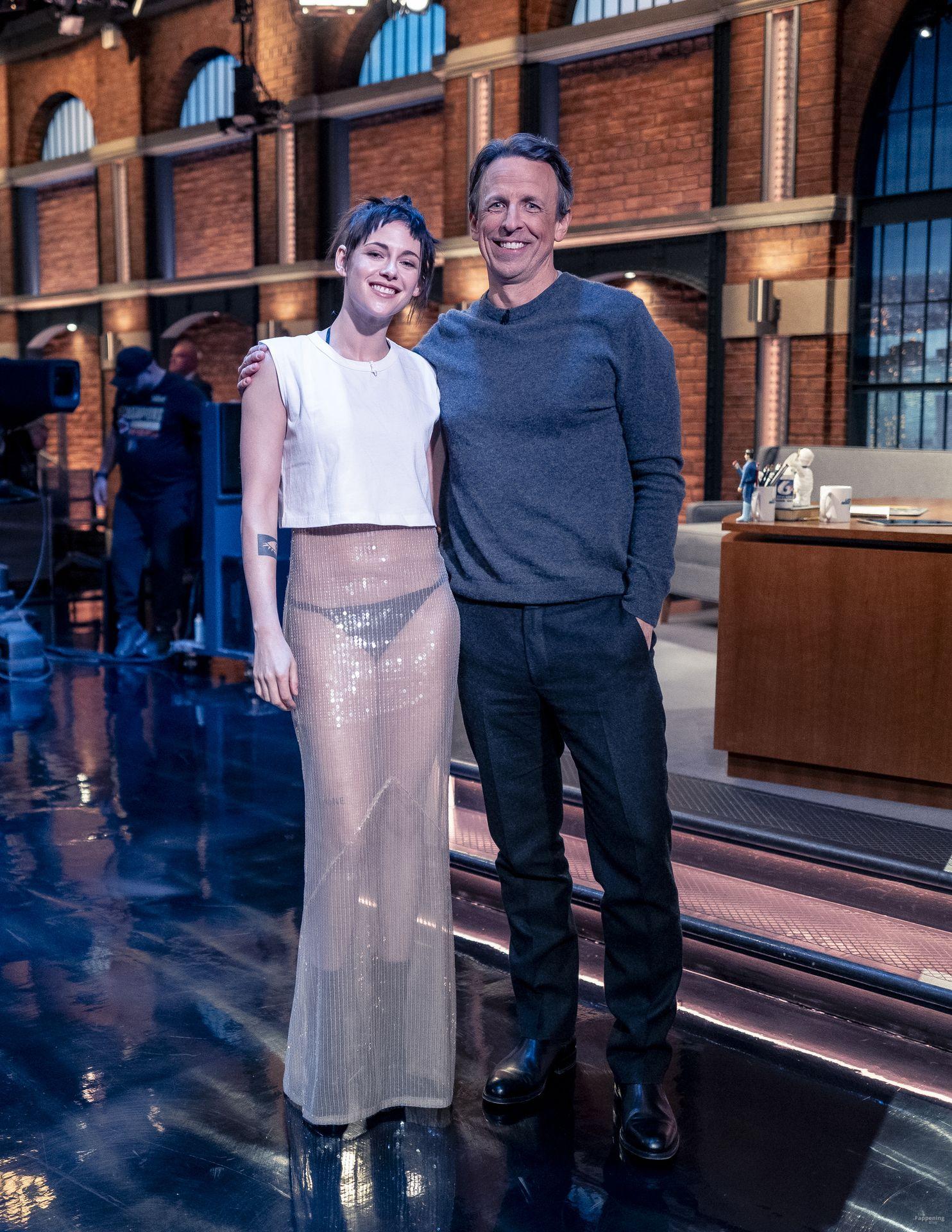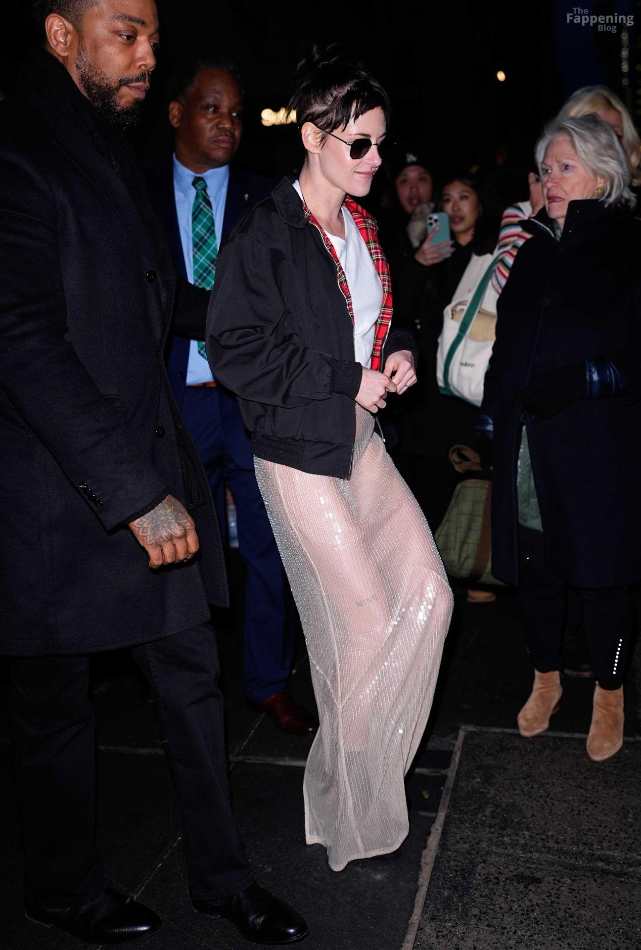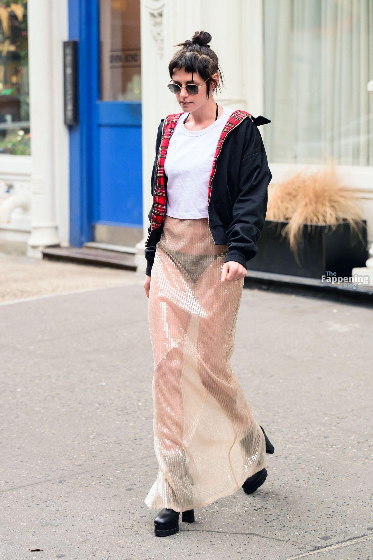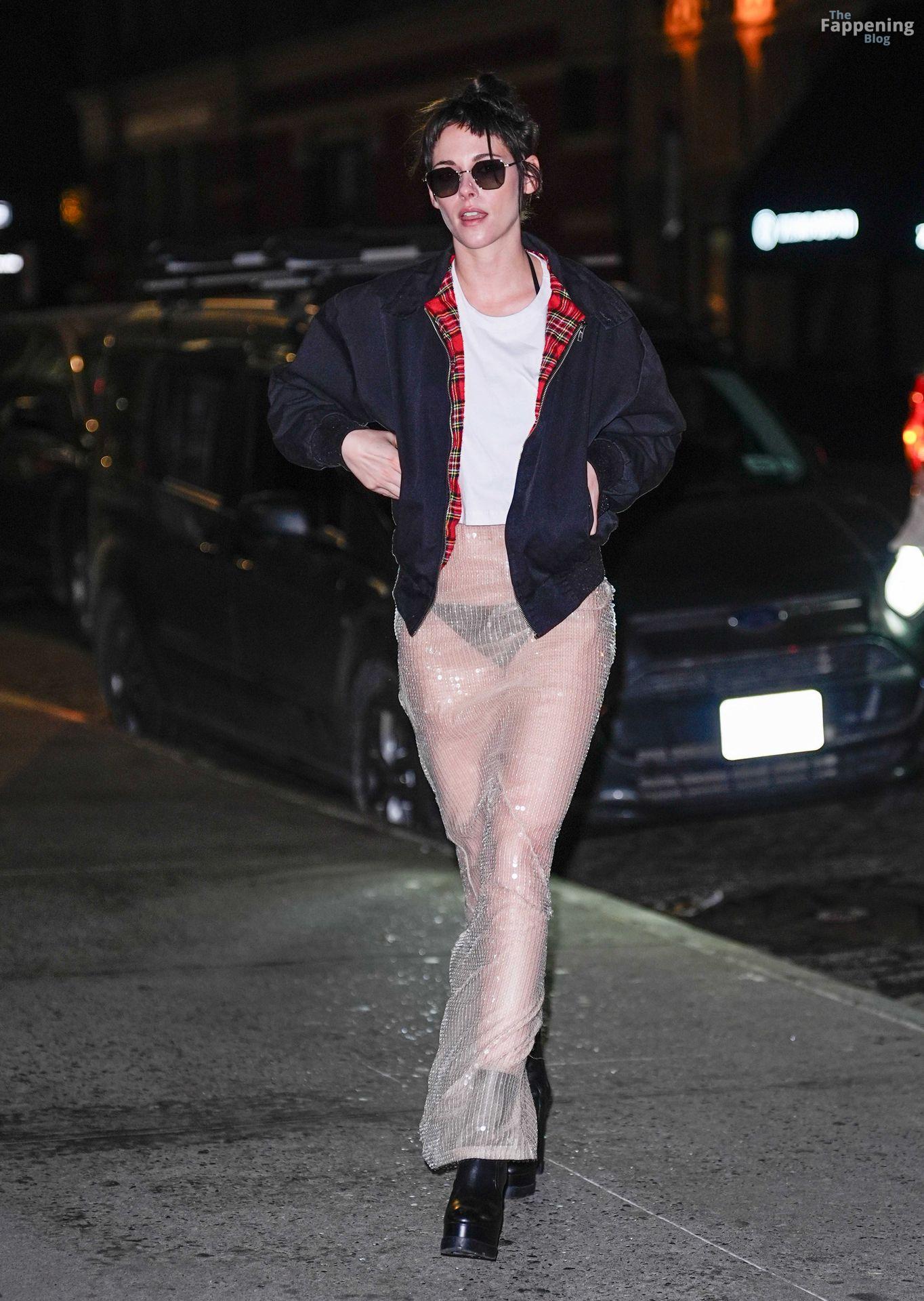 La star di The Fappening Kristen Stewart esce con un outfit rivelatore a New York City. L’attrice americana indossava una giacca nera, un crop top bianco, una gonna trasparente e tacchi piattaforma neri.