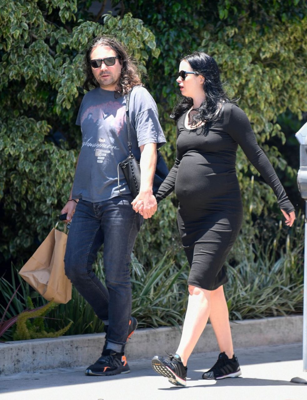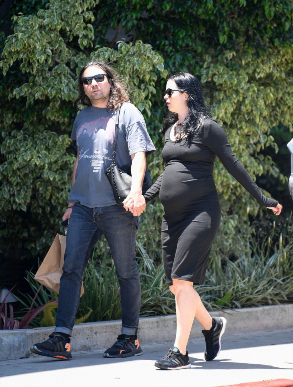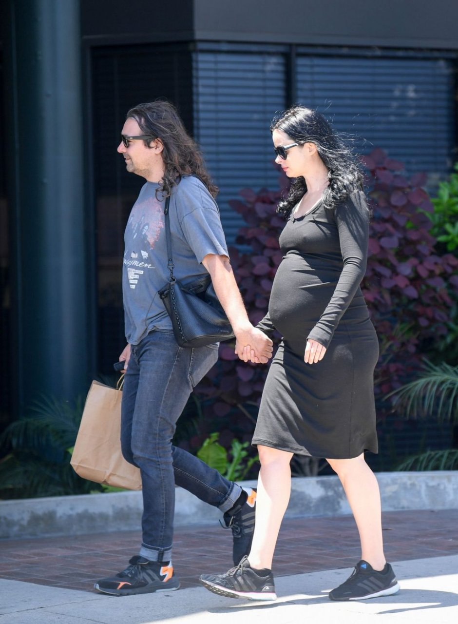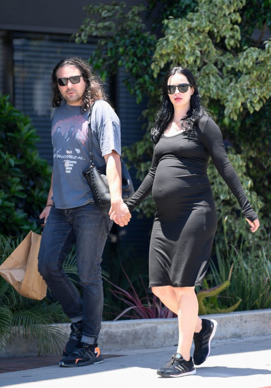 Krysten Ritter mostra il suo pancione in crescita con il fidanzato Adam Granduciel mentre la coppia romantica prende un boccone da mangiare a Beverly Hills, 17/05/2019. L’attrice di 37 anni di “Jessica Jones” indossava un abito nero aderente e scarpe da ginnastica Adidas.