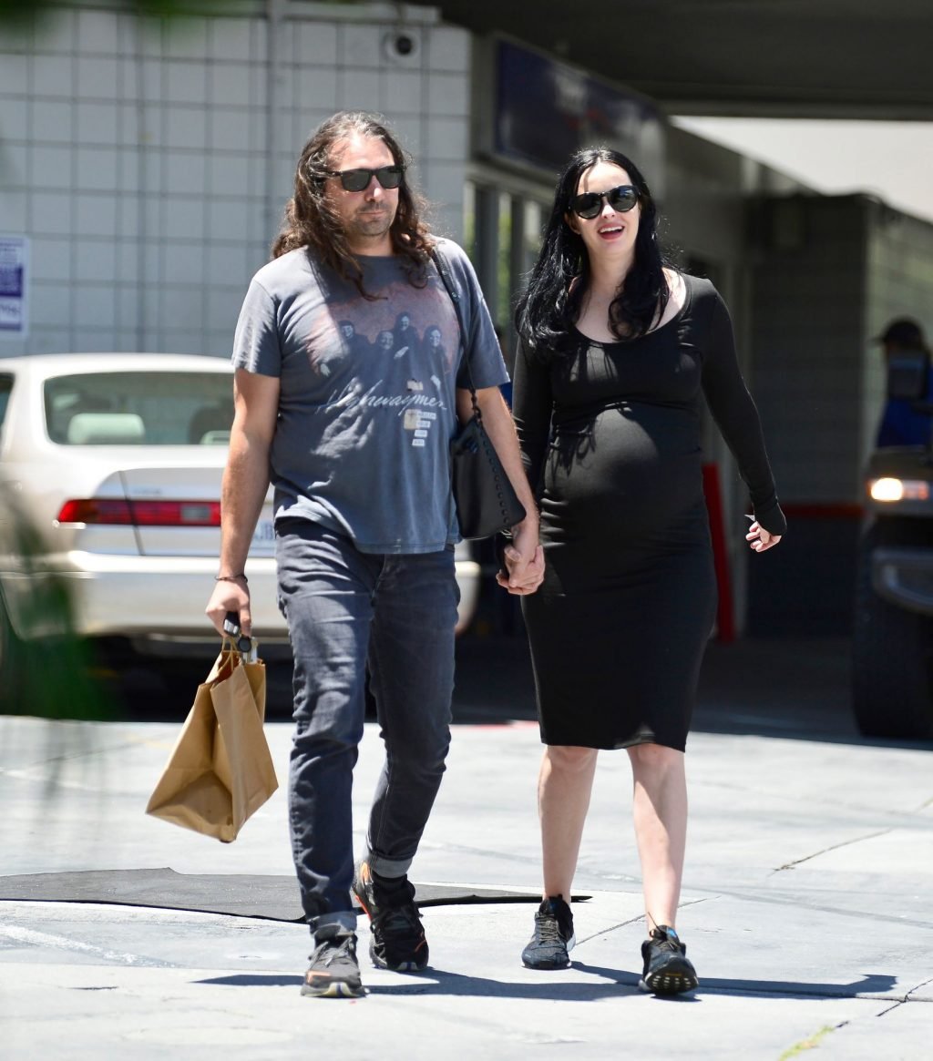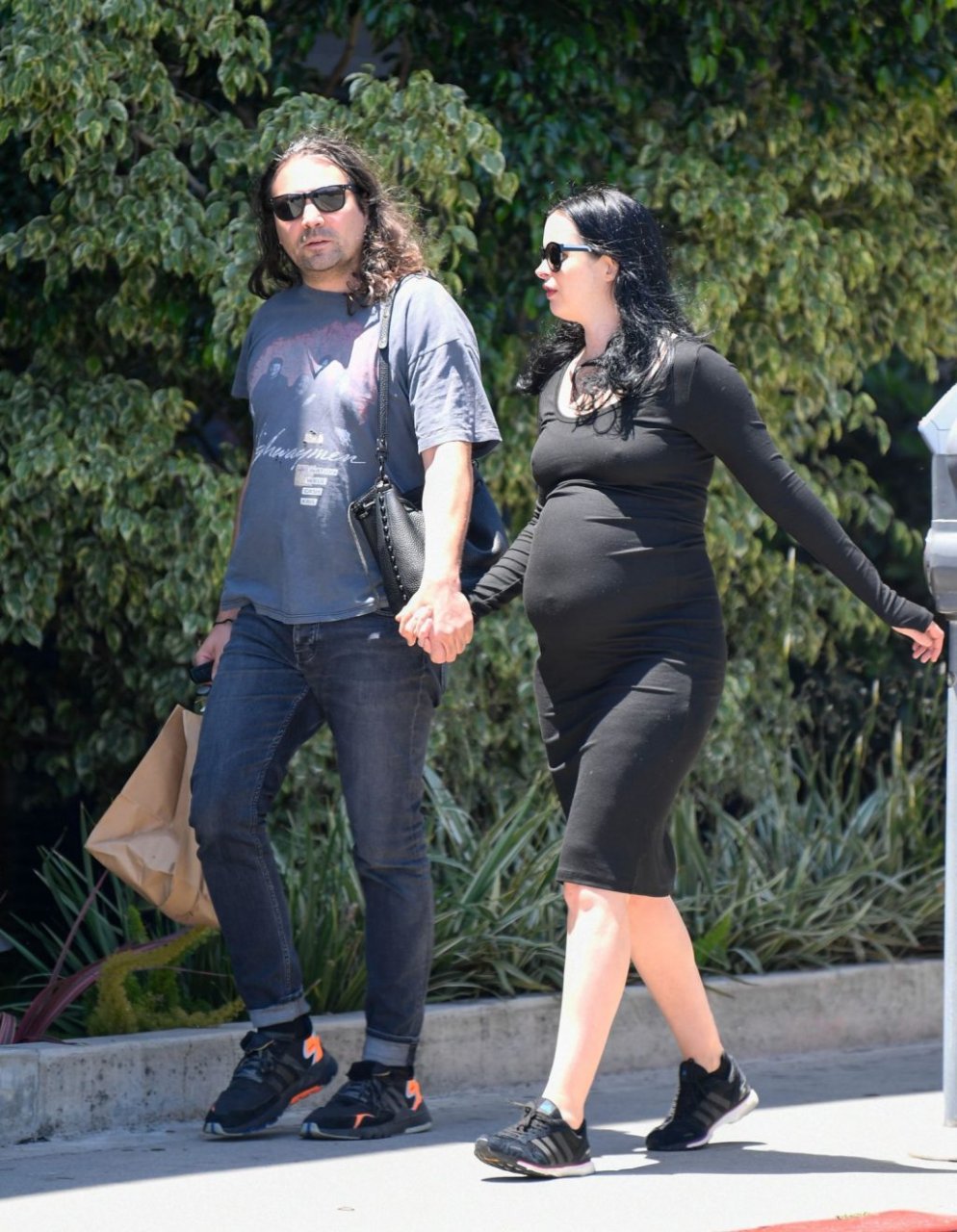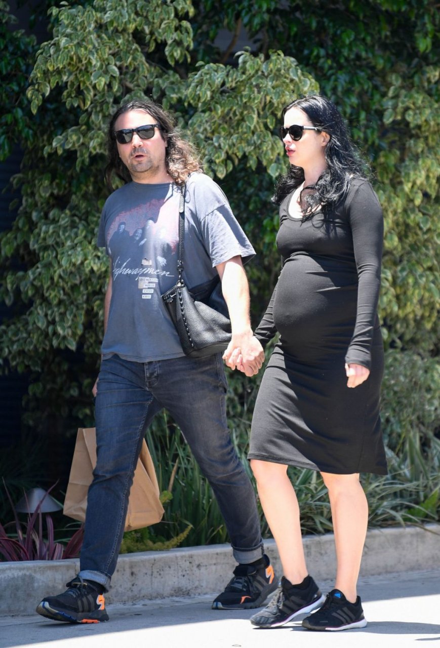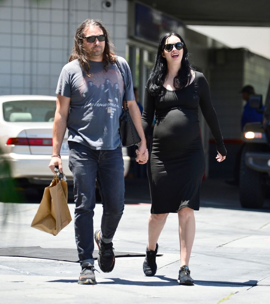 Krysten Ritter mostra il suo pancione in crescita con il fidanzato Adam Granduciel mentre la coppia romantica prende un boccone da mangiare a Beverly Hills, 17/05/2019. L’attrice di 37 anni di “Jessica Jones” indossava un abito nero aderente e scarpe da ginnastica Adidas.