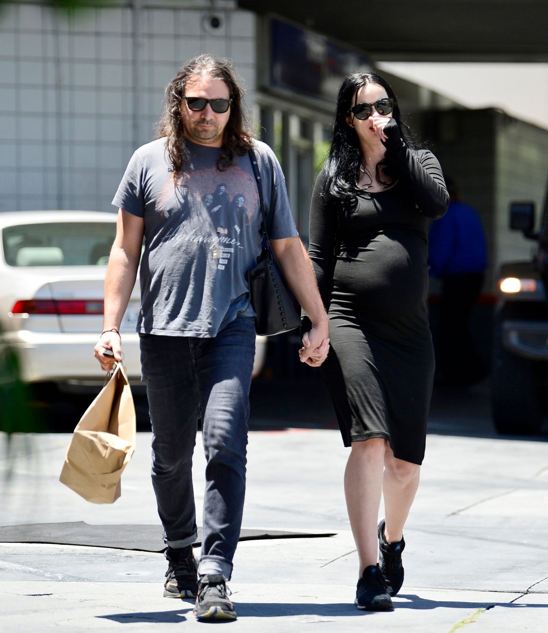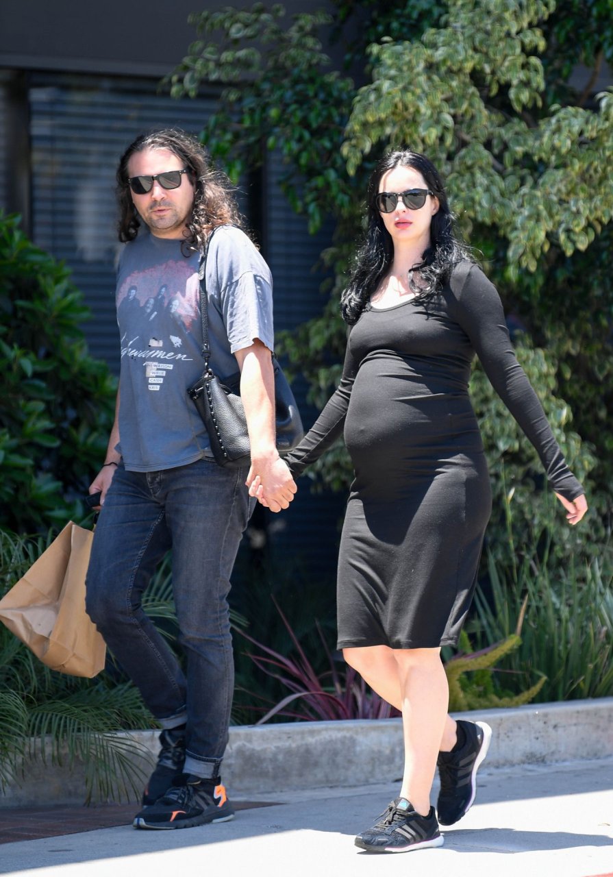 Krysten Ritter mostra il suo pancione in crescita con il fidanzato Adam Granduciel mentre la coppia romantica prende un boccone da mangiare a Beverly Hills, 17/05/2019. L’attrice di 37 anni di “Jessica Jones” indossava un abito nero aderente e scarpe da ginnastica Adidas.