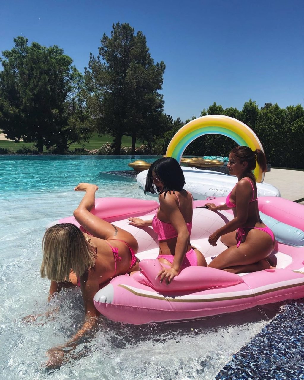 Kylie Jenner e l’amica Anastasia Karanikolaou mostrano i loro corpi in bikini in questi scatti audaci condivisi sui social media (giugno 2019). Kylie e Stassie mettono in mostra le loro curve in bikini/costumi neri mentre sono sedute su una bici bianca e posano insieme in un’intera piscina rosa.