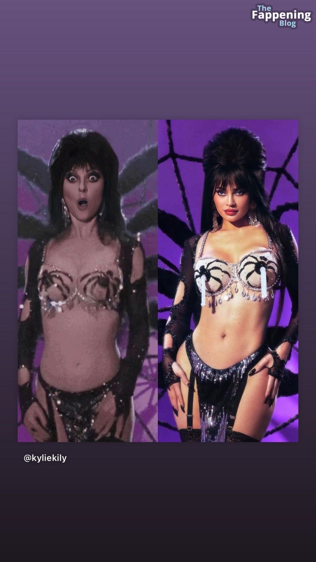 La famiglia Kardashian sa come scegliere immagini interessanti per i loro outfit. Quest’anno Kylie Jenner si è travestita da vampira femmina Elvira: Mistress of the Dark. In effetti, ci sono somiglianze tra Kylie e Cassandra Peterson che ha interpretato il ruolo di Elvira in quel film del 1988. Anche se sicuramente il seno finto di Kylie Jenner è significativamente più grande.
