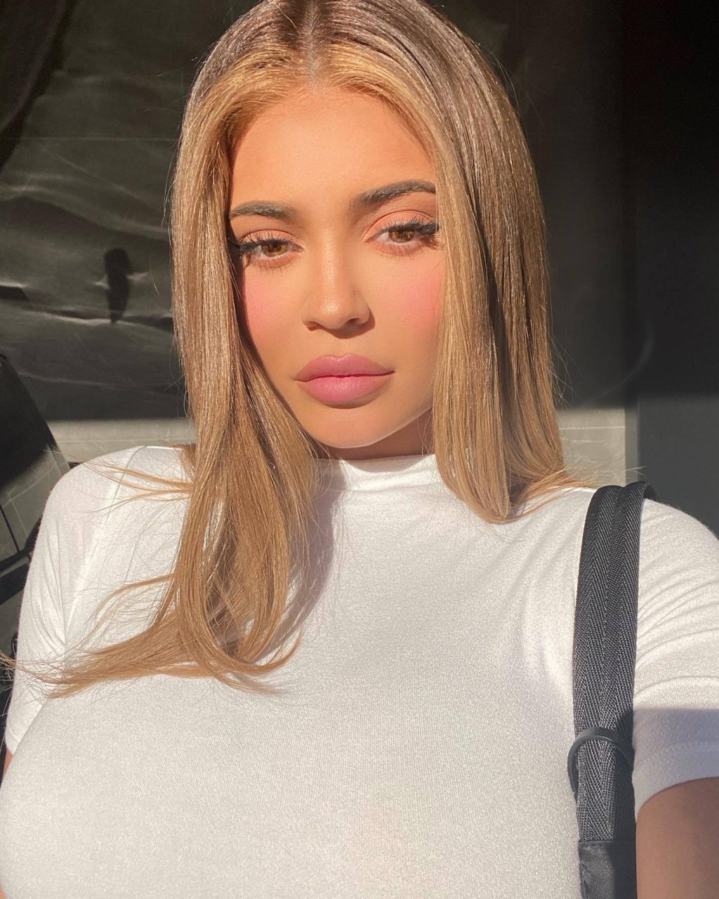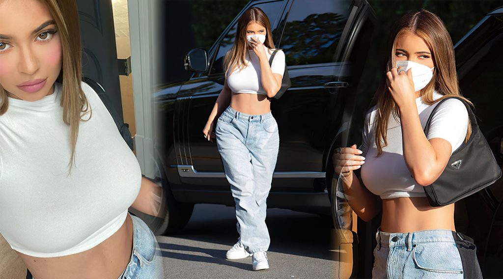 La modella Kylie Jenner appare carina indossando jeans e un top corto bianco, mostrando le sue curve sexy a Beverly Hills, 24/04/2020.