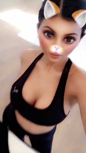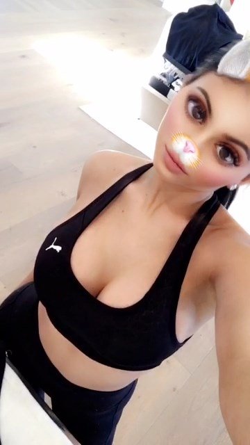 Kylie Jenner scatta selfie con top nero Puma da Snapchat, 18/12/2016. Kylie Jenner è una personalità della TV reality (Keeping Up with the Kardashians), modella, socialite e stilista di Los Angeles. Età: 19 (10 agosto 1997).