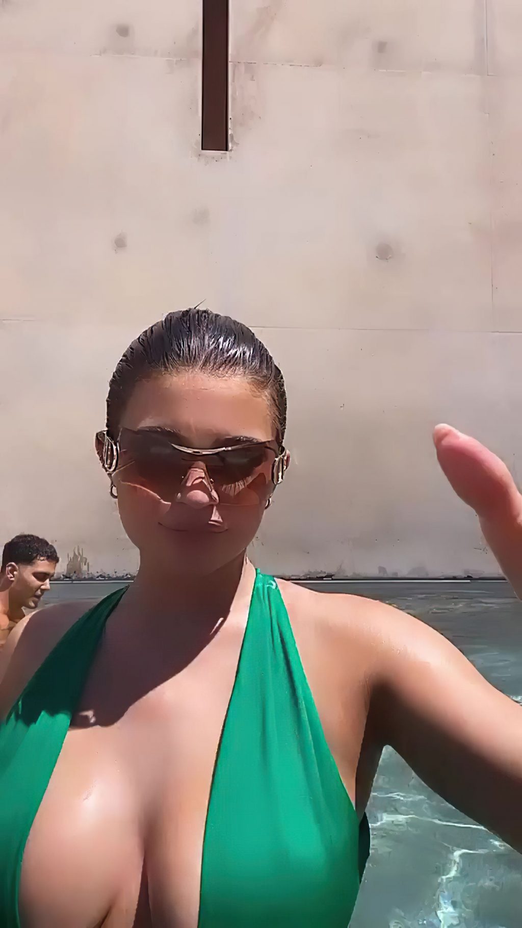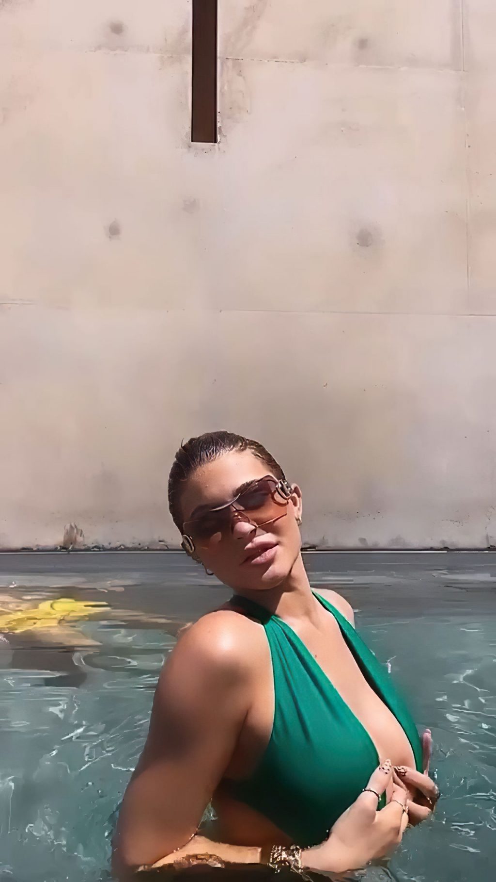 Kylie Jenner mostra il suo grande seno in piscina (21 foto+ GIF e video)