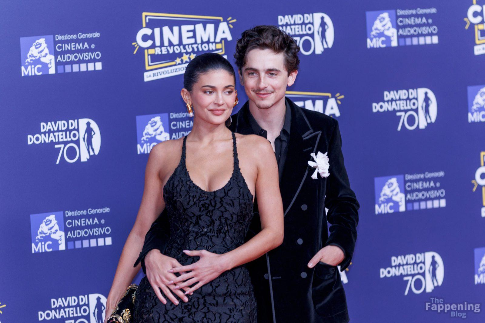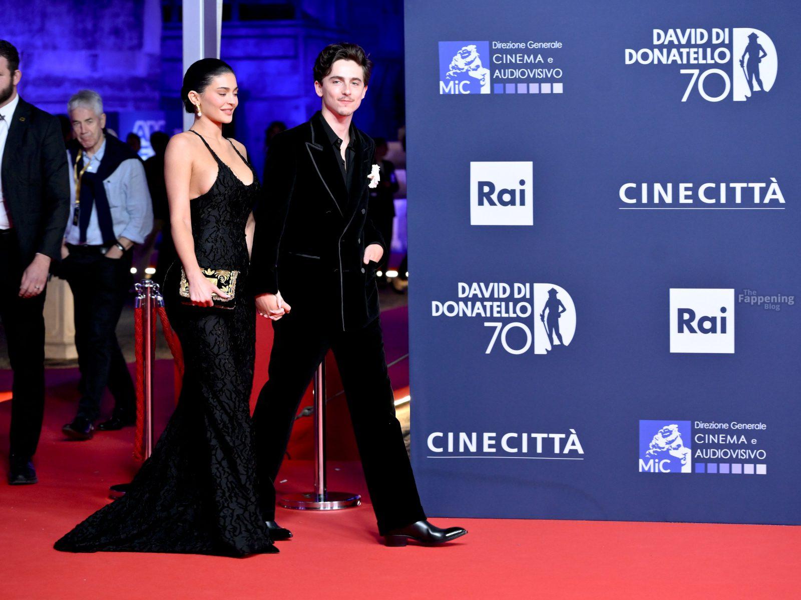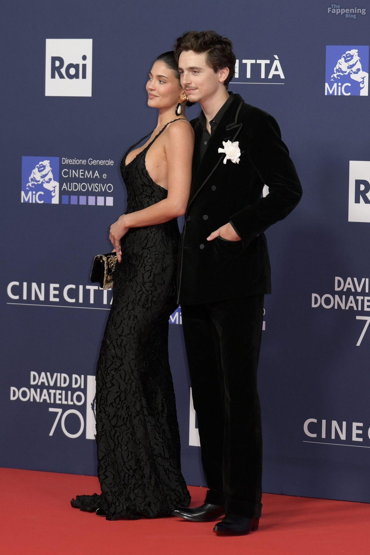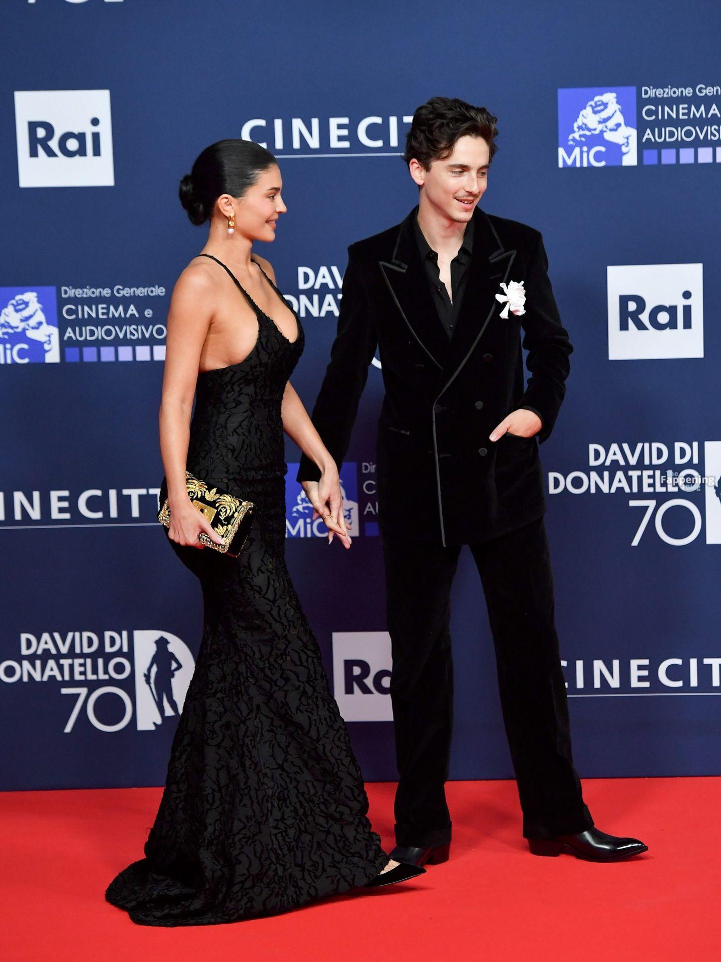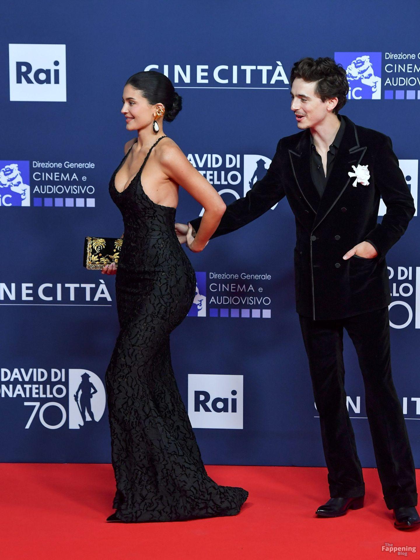 Kylie Jenner partecipa ai 70° David di Donatello, mostrando il suo generoso décolleté in un abito nero aderente.