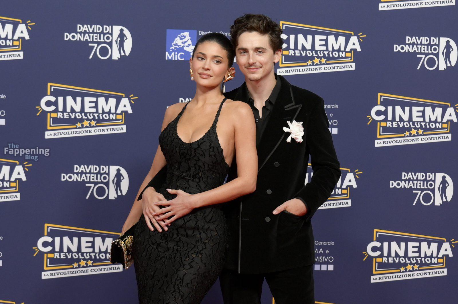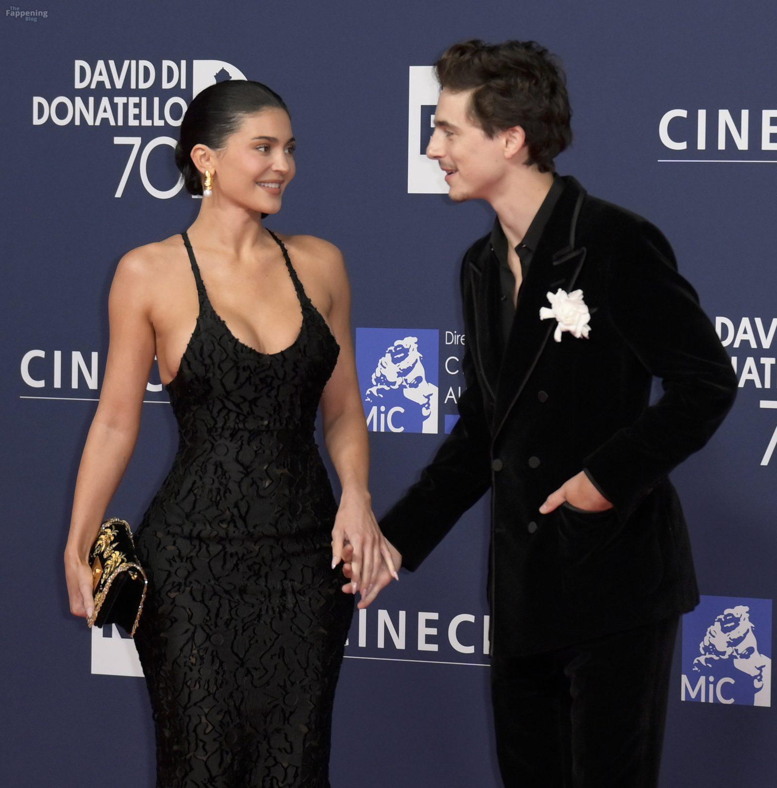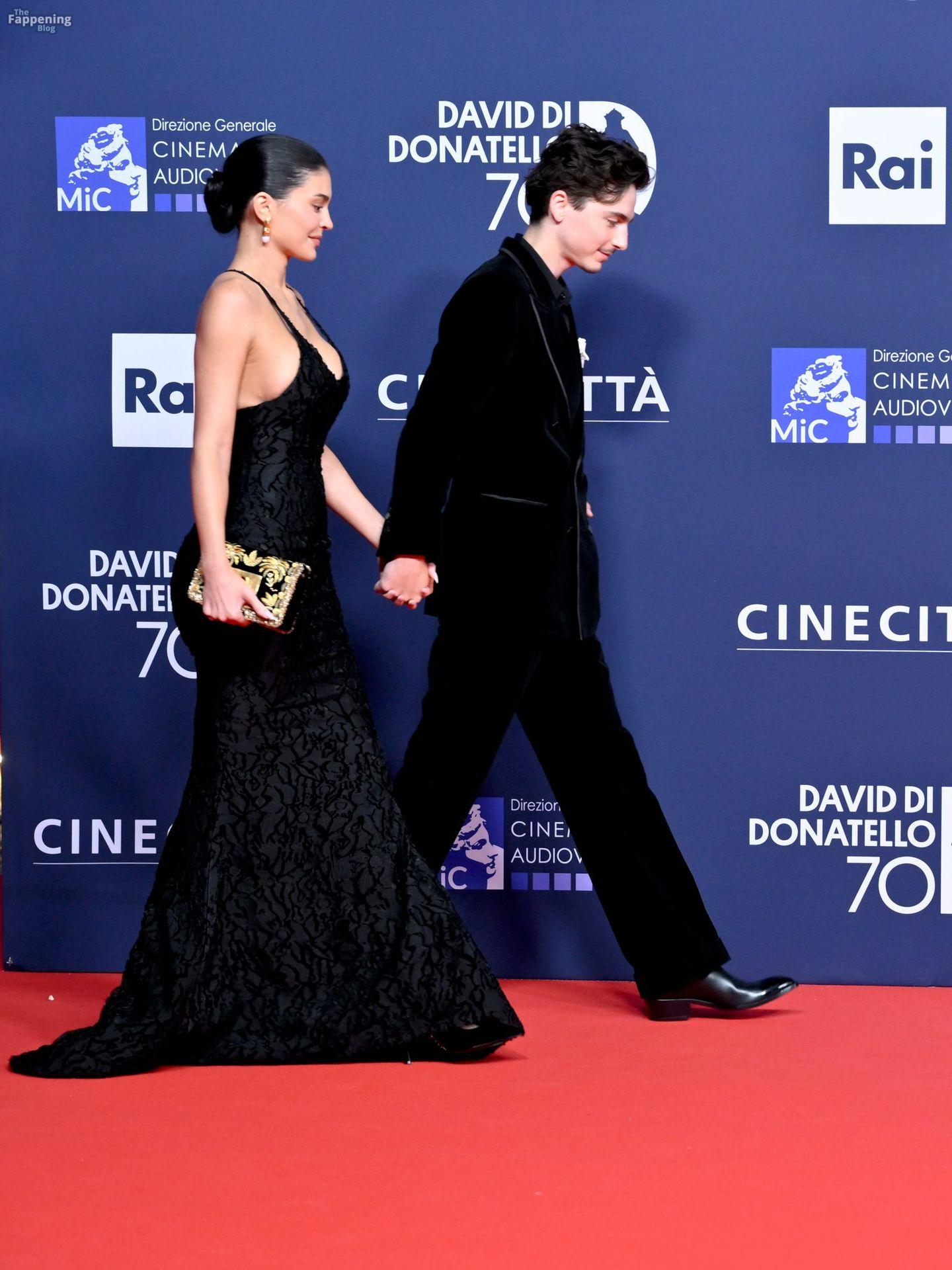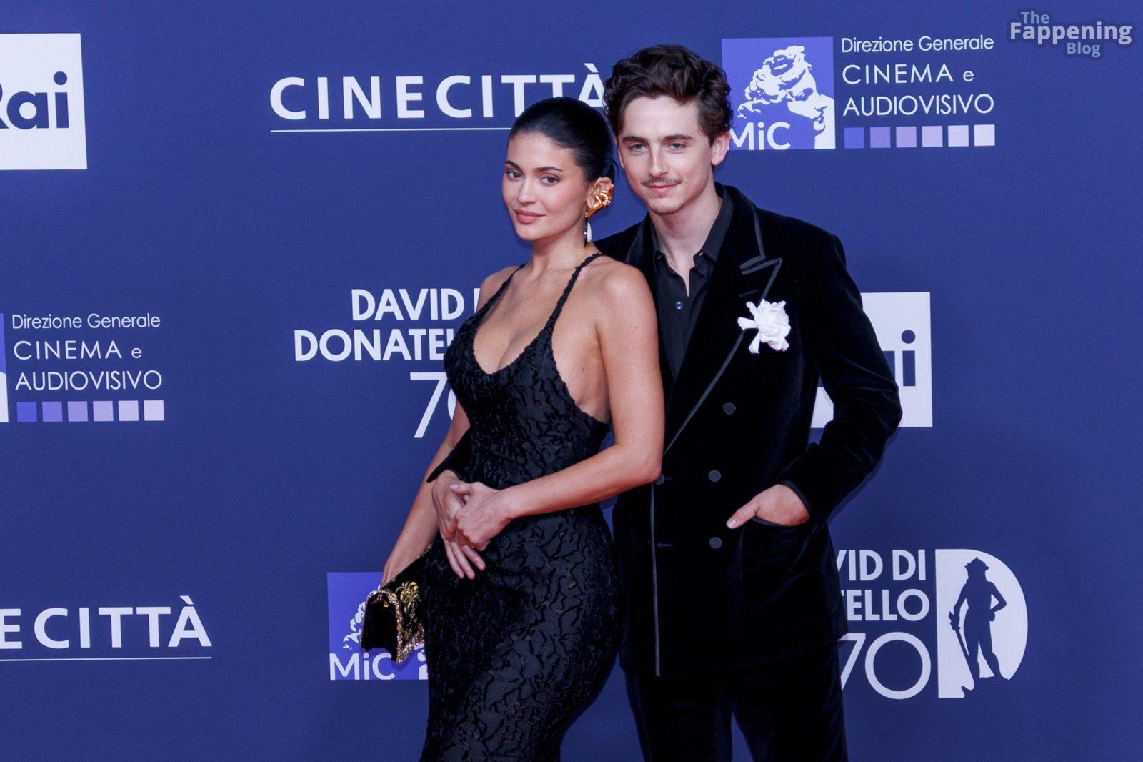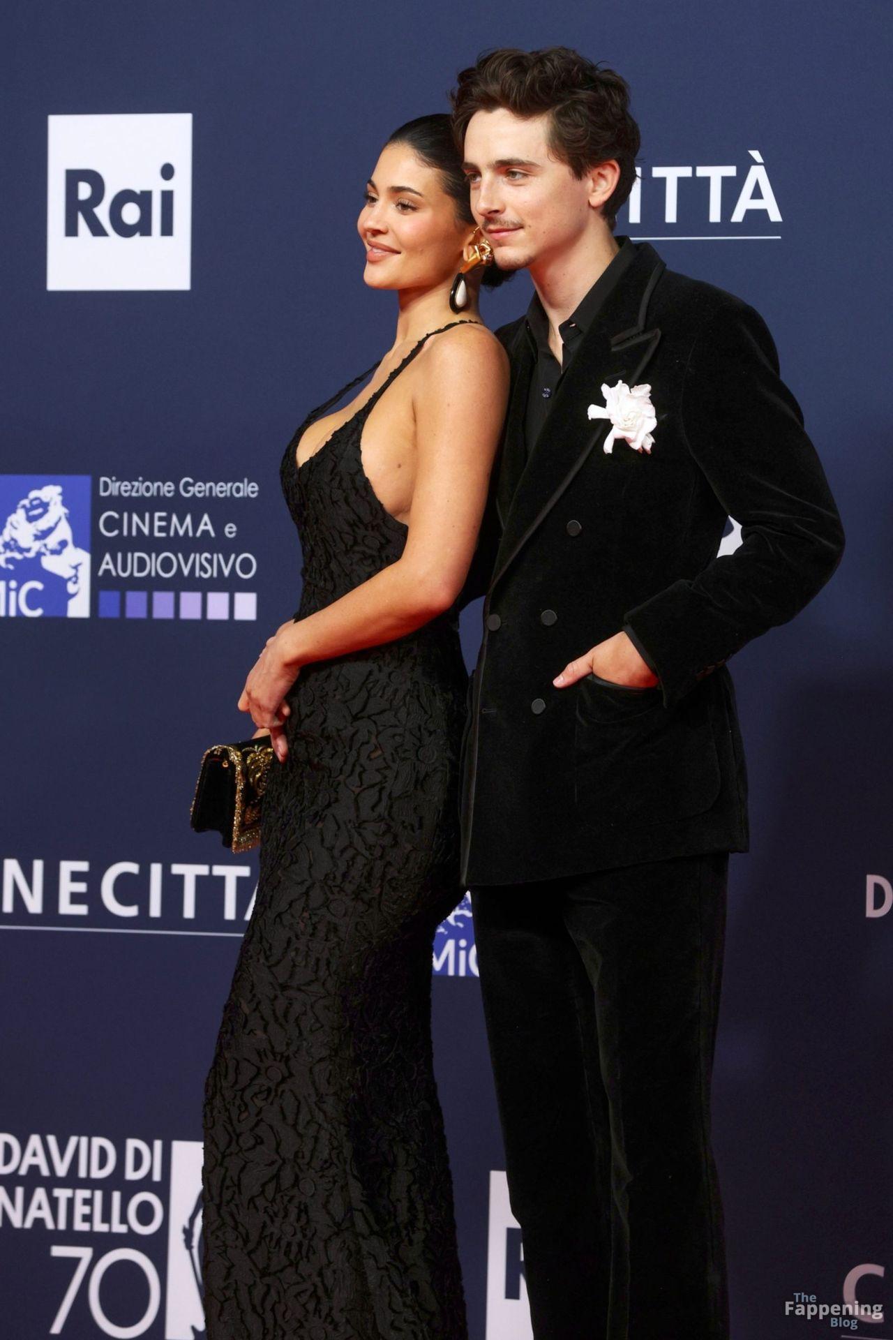Kylie Jenner partecipa ai 70° David di Donatello, mostrando il suo generoso décolleté in un abito nero aderente.