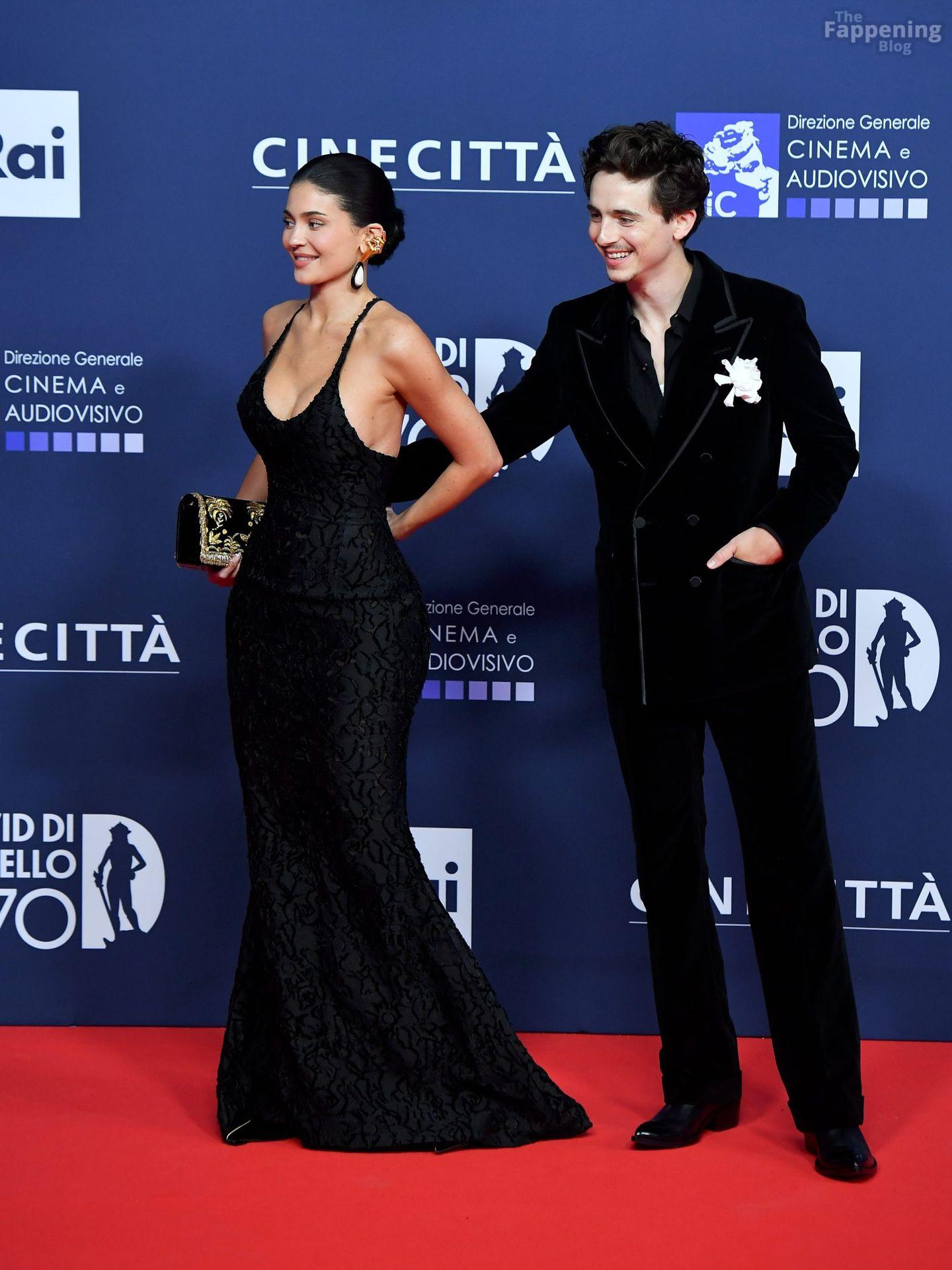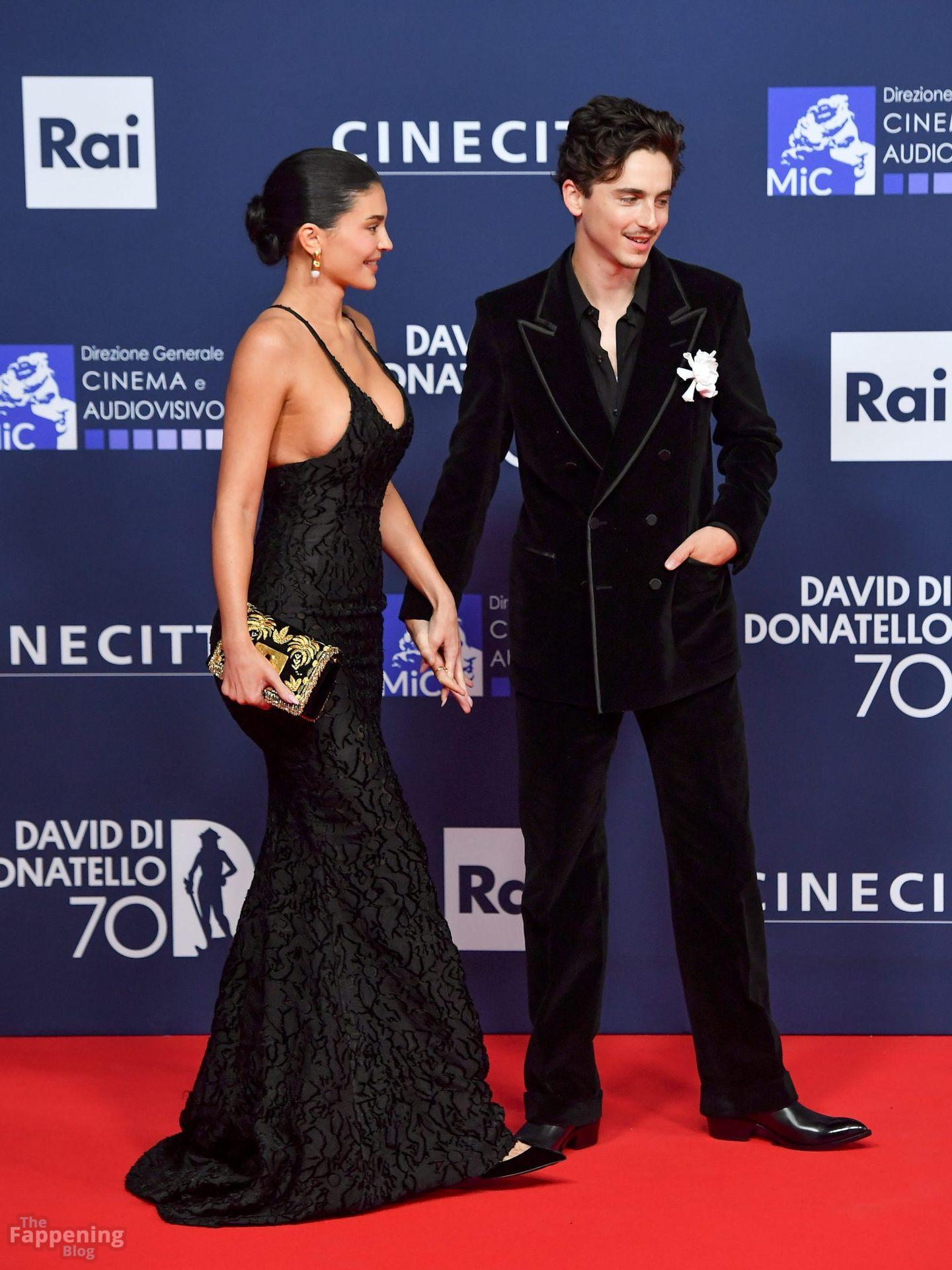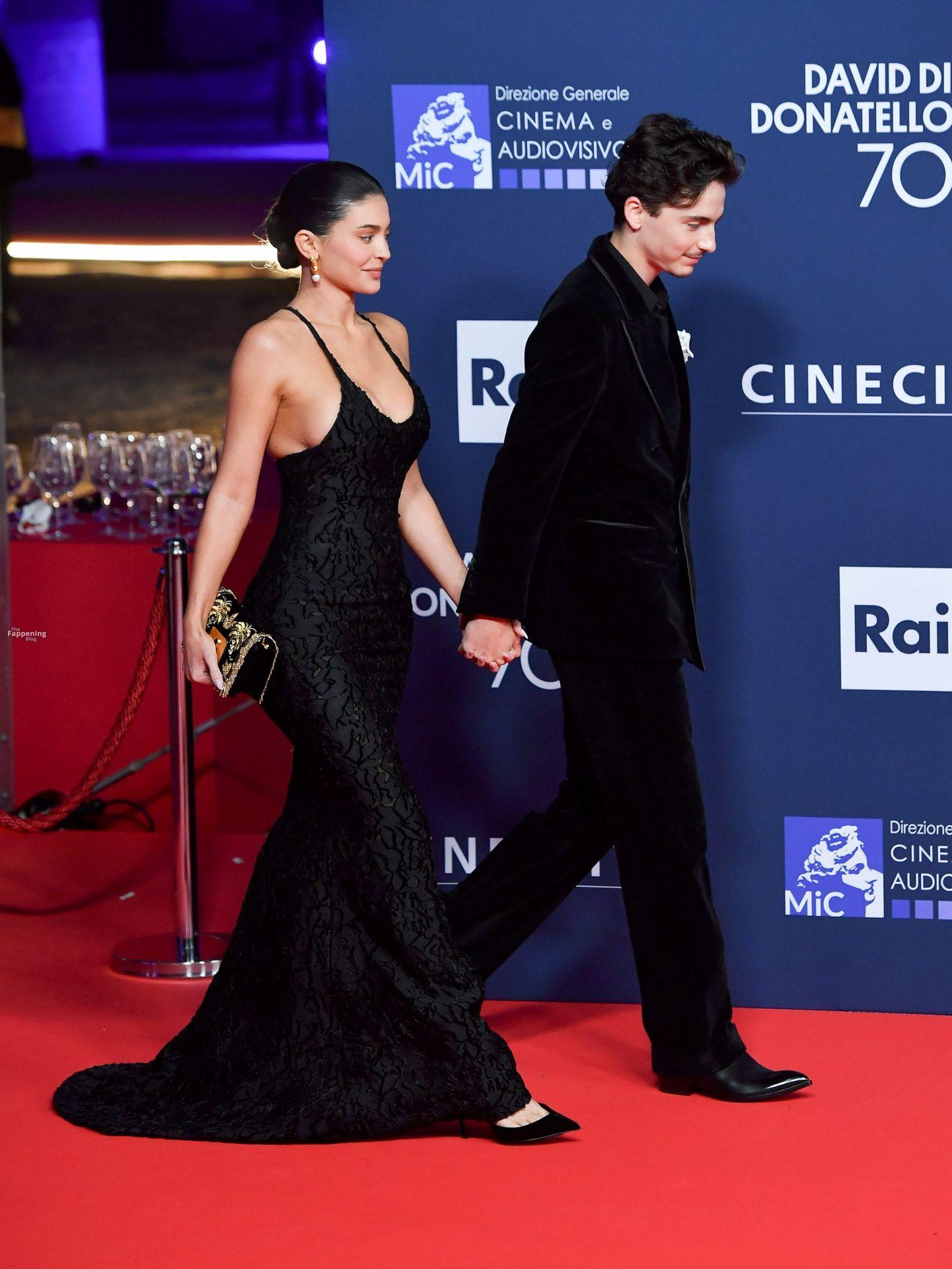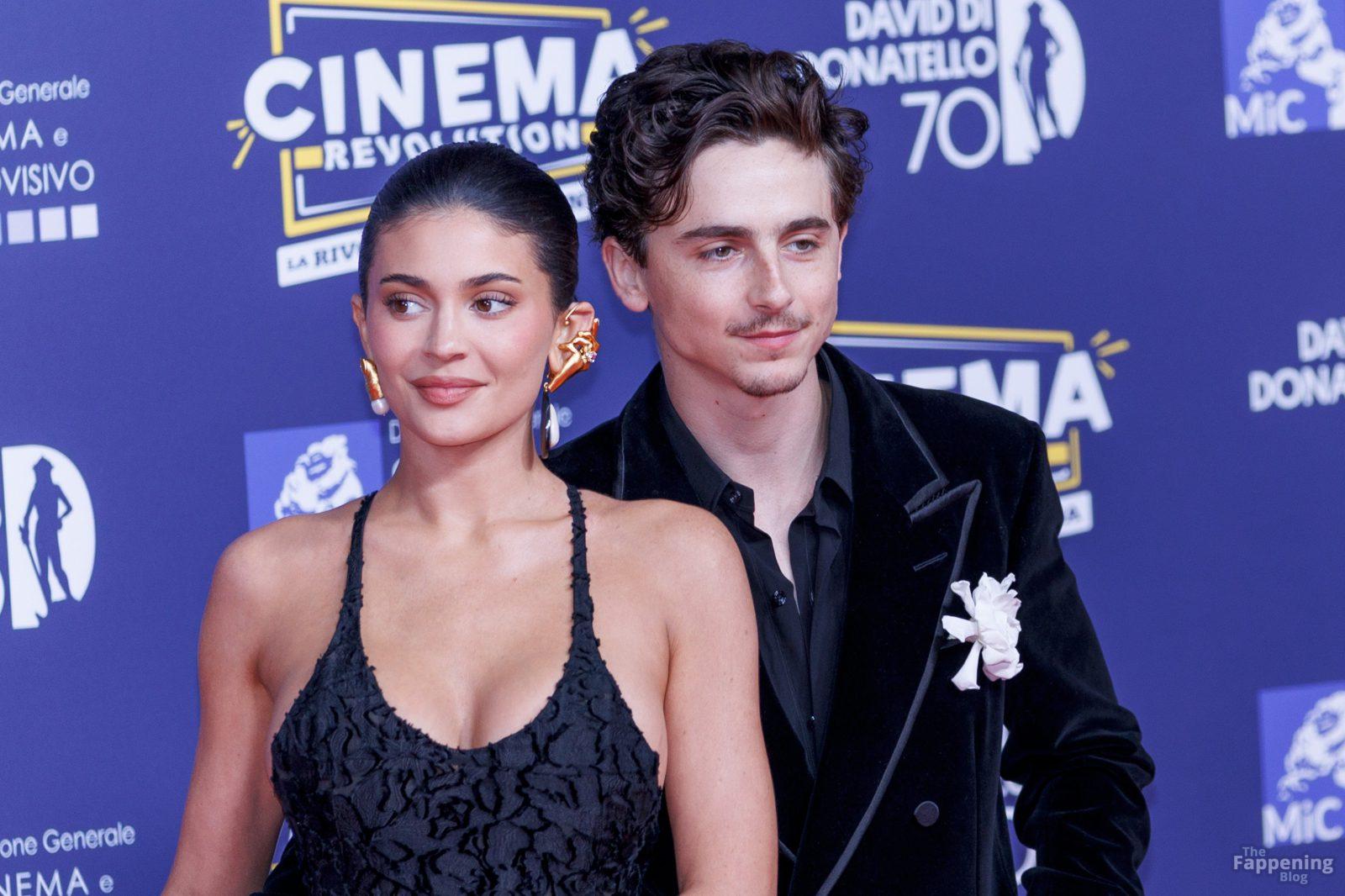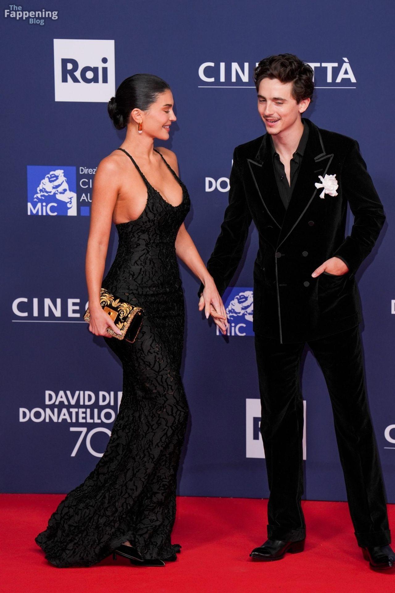 Kylie Jenner partecipa ai 70° David di Donatello, mostrando il suo generoso décolleté in un abito nero aderente.