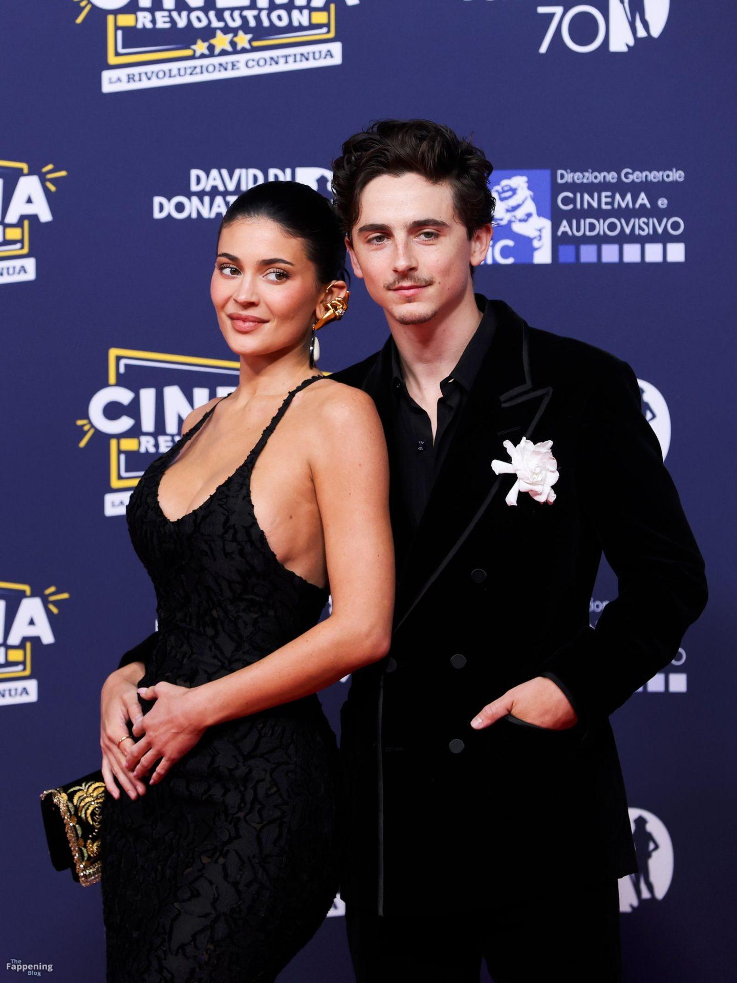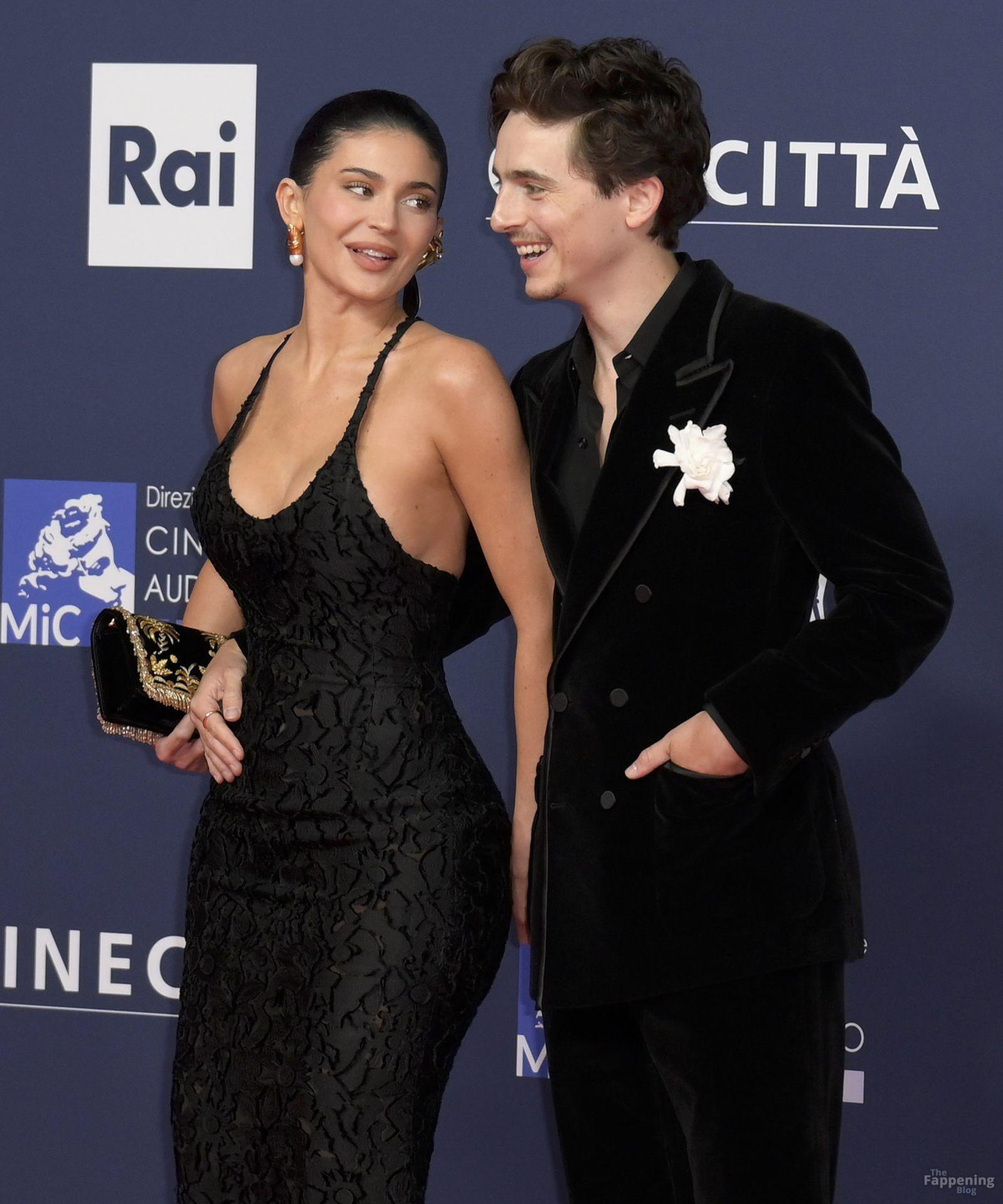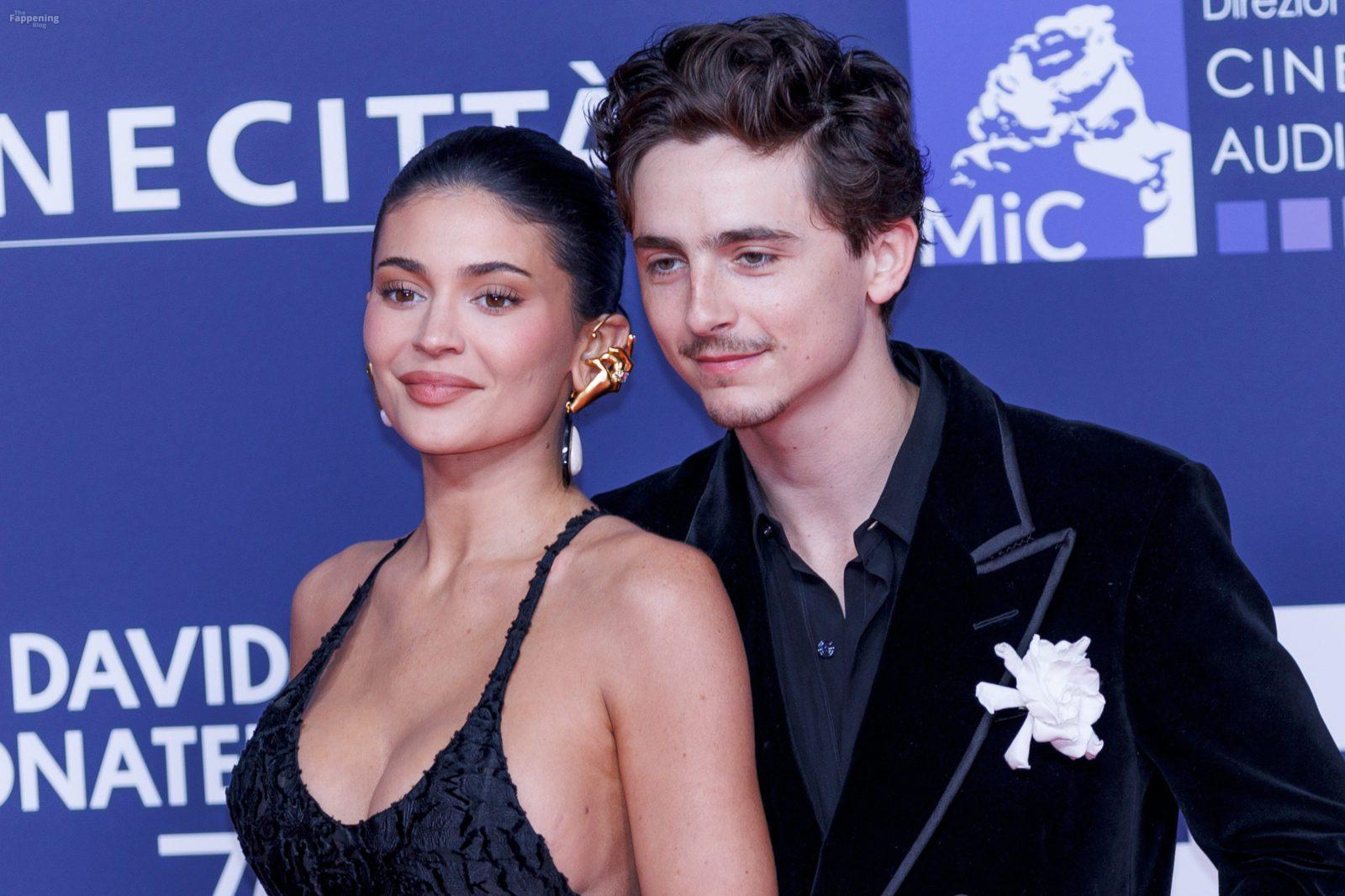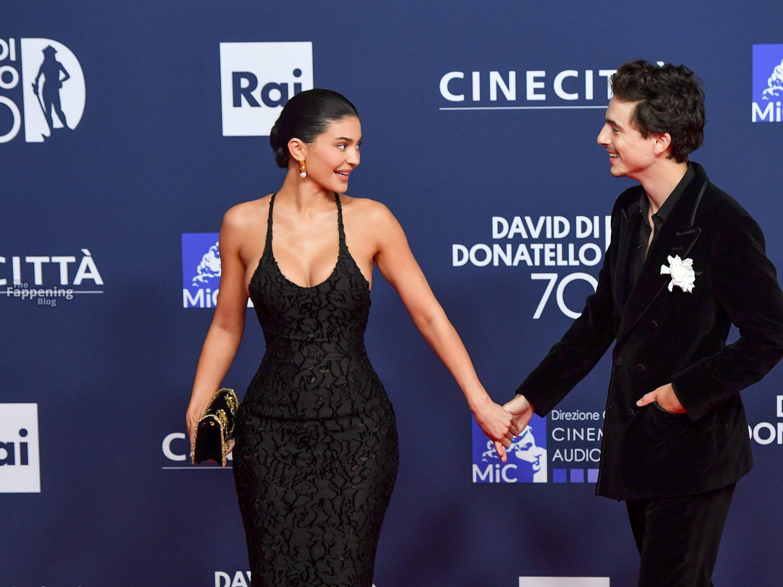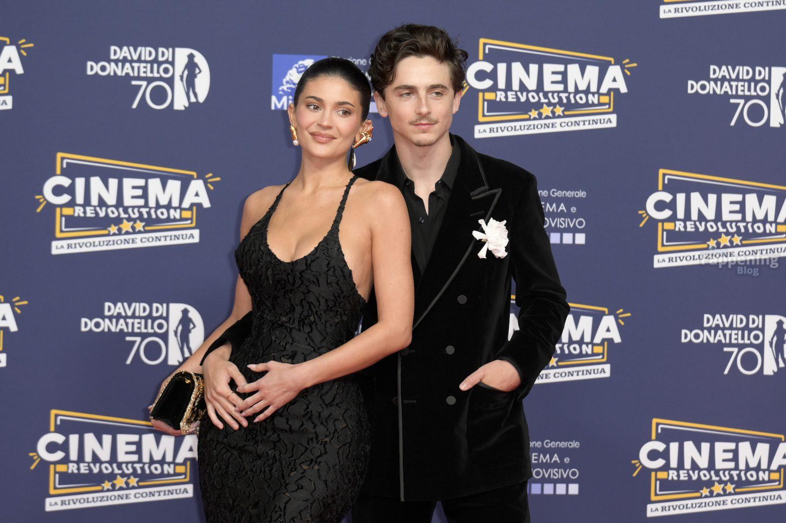 Kylie Jenner partecipa ai 70° David di Donatello, mostrando il suo generoso décolleté in un abito nero aderente.