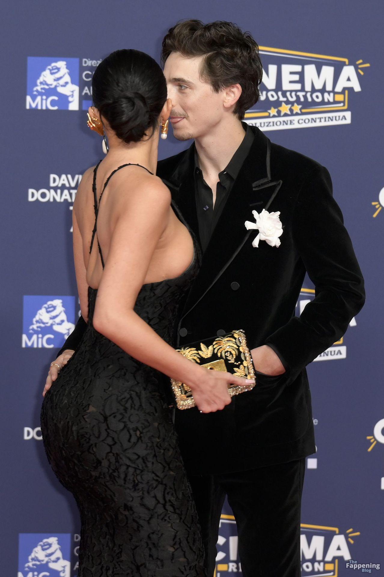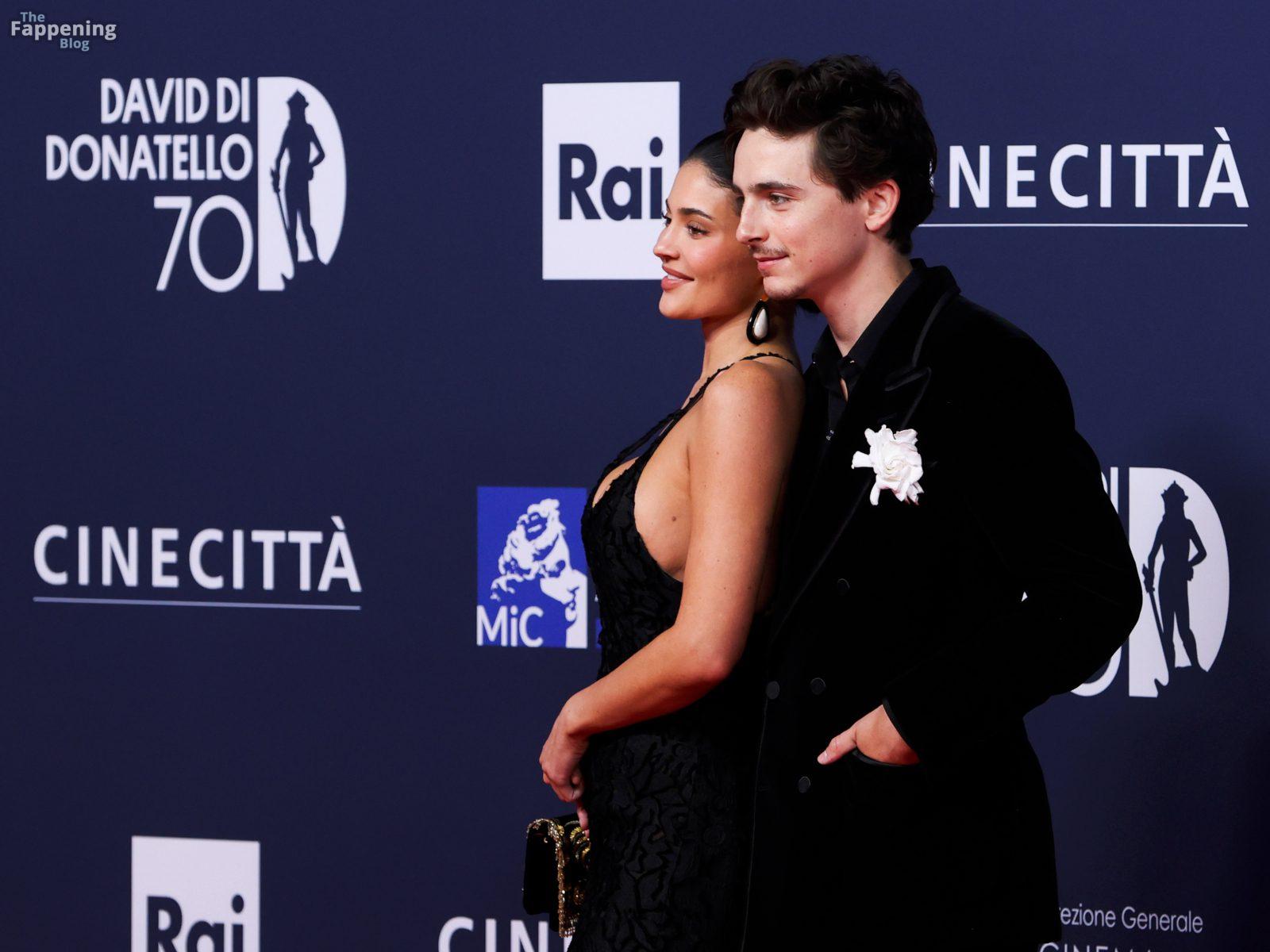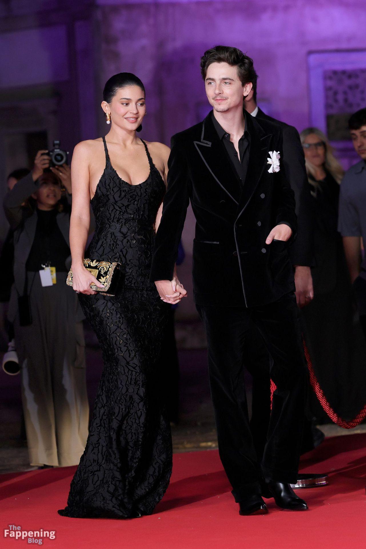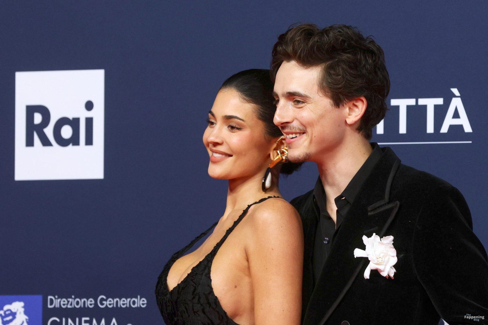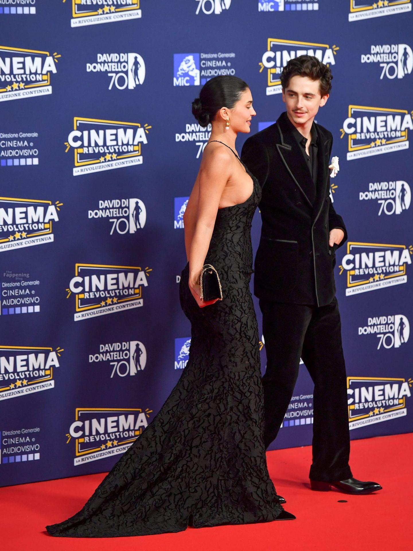 Kylie Jenner partecipa ai 70° David di Donatello, mostrando il suo generoso décolleté in un abito nero aderente.