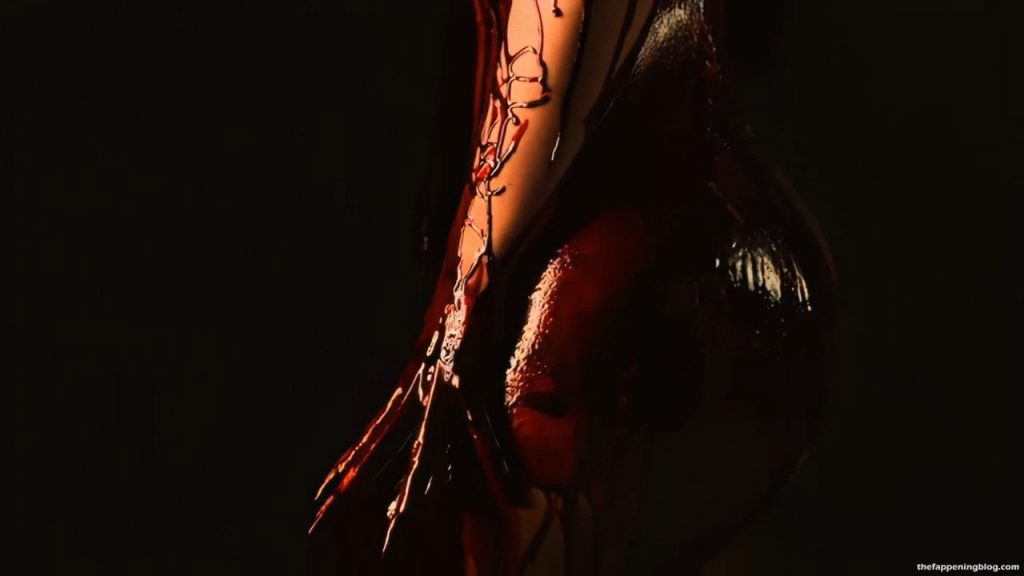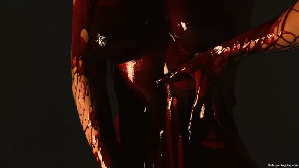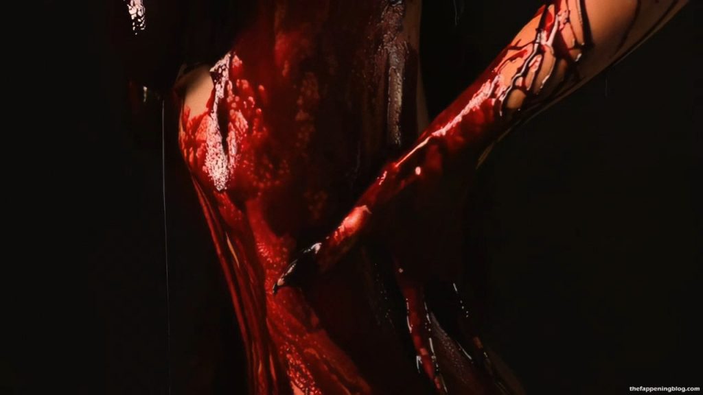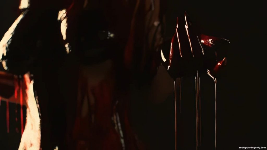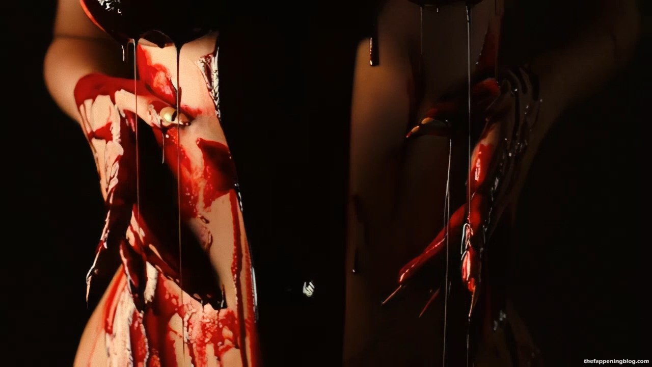 Nel video sui social media in nudezza, Kylie Jenner presenta i suoi nuovi cosmetici ispirati a “Nightmare on Elm Street” per Halloween (ottobre 2021). Ci stuzzica con il suo seno, posando a seno nudo con sangue finto che copre il suo corpo nudo.