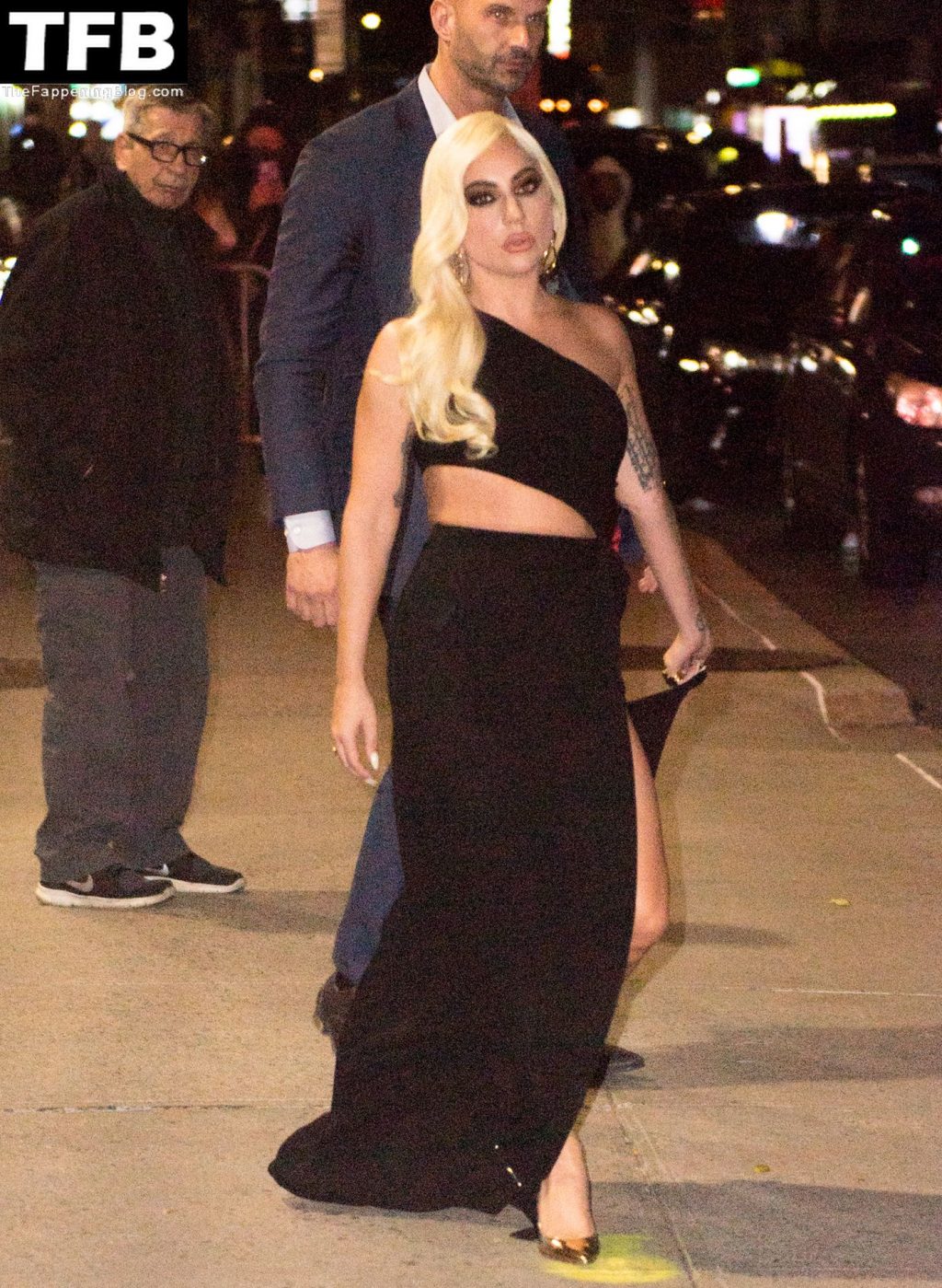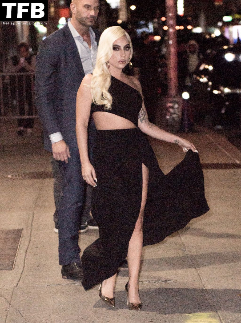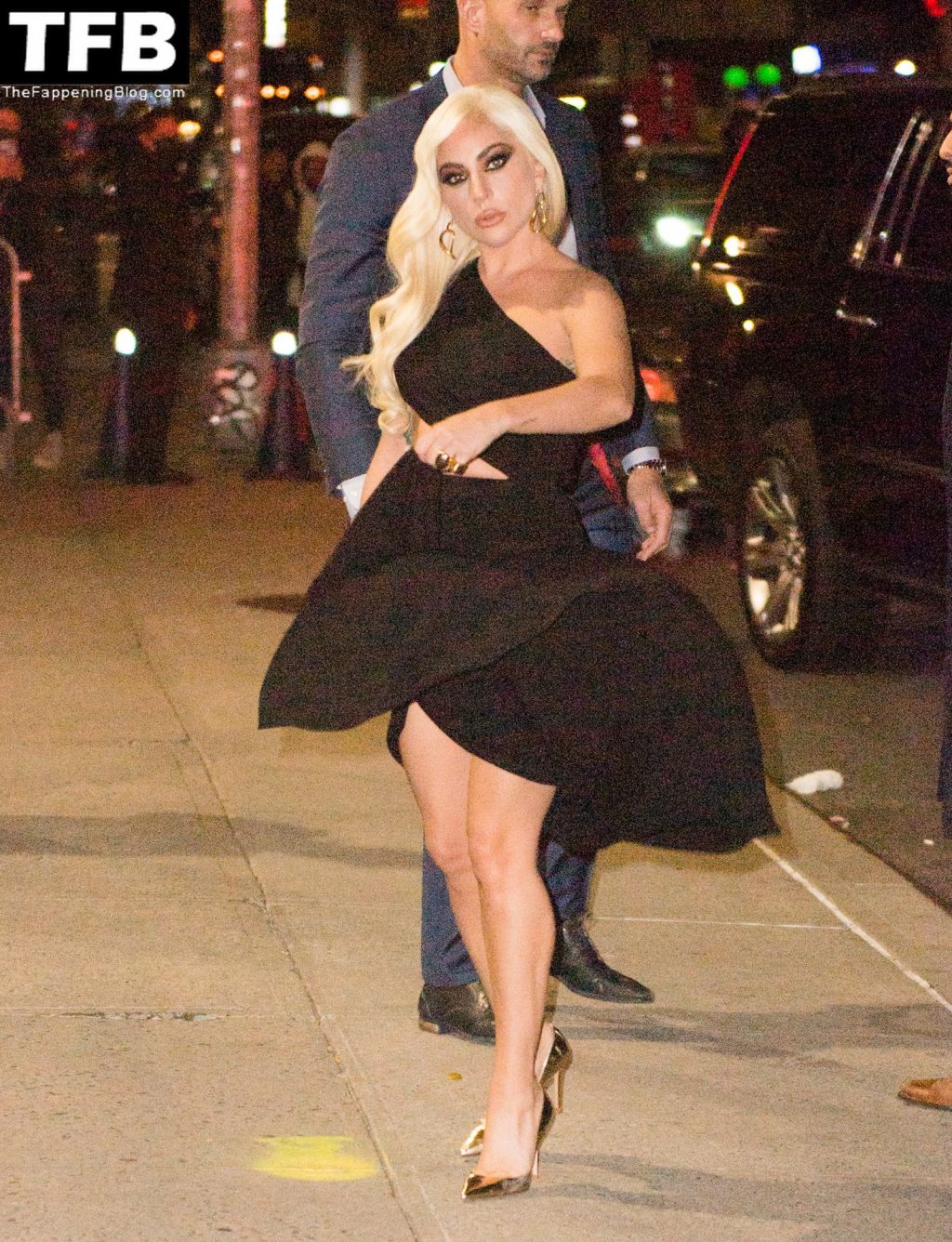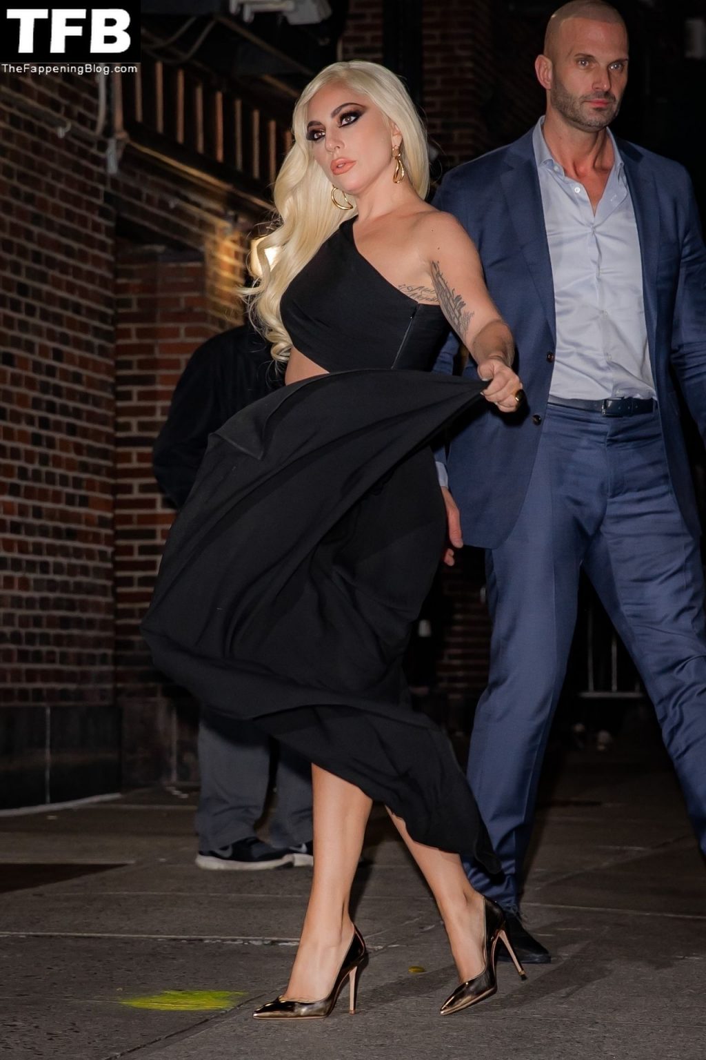 Lady Gaga è stata vista uscire dal programma di Stephen Colbert a Manhattan indossando un vestito con spacco sulla gamba, posando come Marilyn Monroe… con la sua biancheria color nudo in vista. L’attrice diventata cantante è uscita per promuovere il suo nuovo film ‘House of Gucci’.