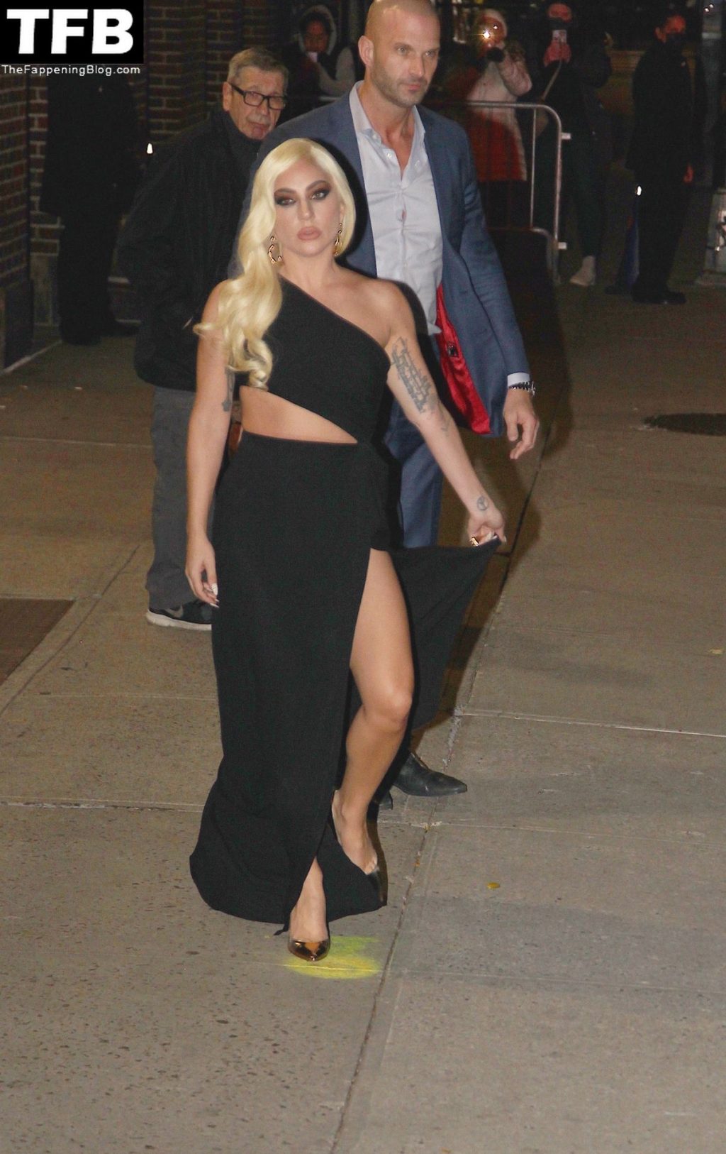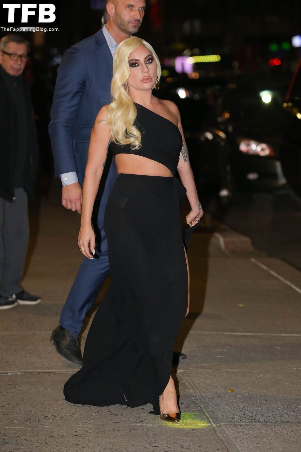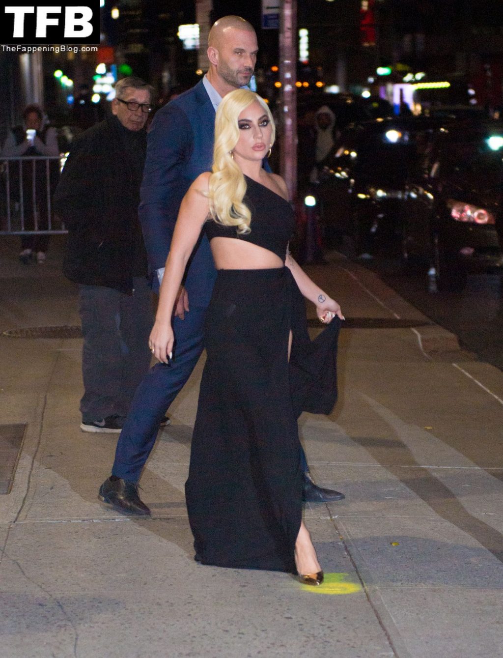 Lady Gaga è stata vista uscire dal programma di Stephen Colbert a Manhattan indossando un vestito con spacco sulla gamba, posando come Marilyn Monroe… con la sua biancheria color nudo in vista. L’attrice diventata cantante è uscita per promuovere il suo nuovo film ‘House of Gucci’.