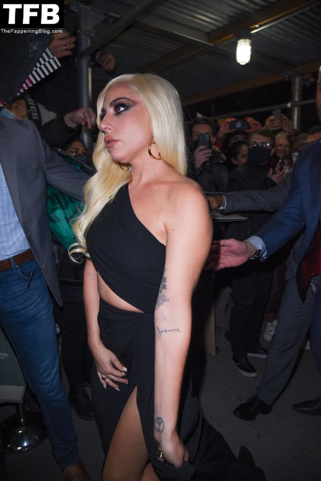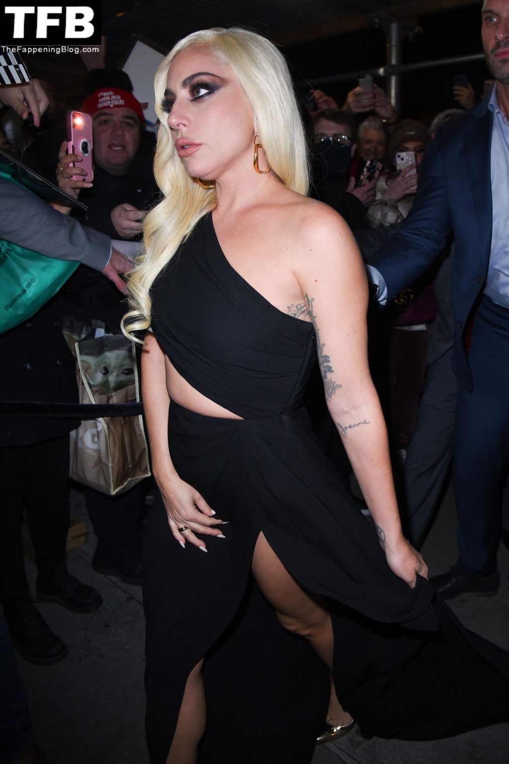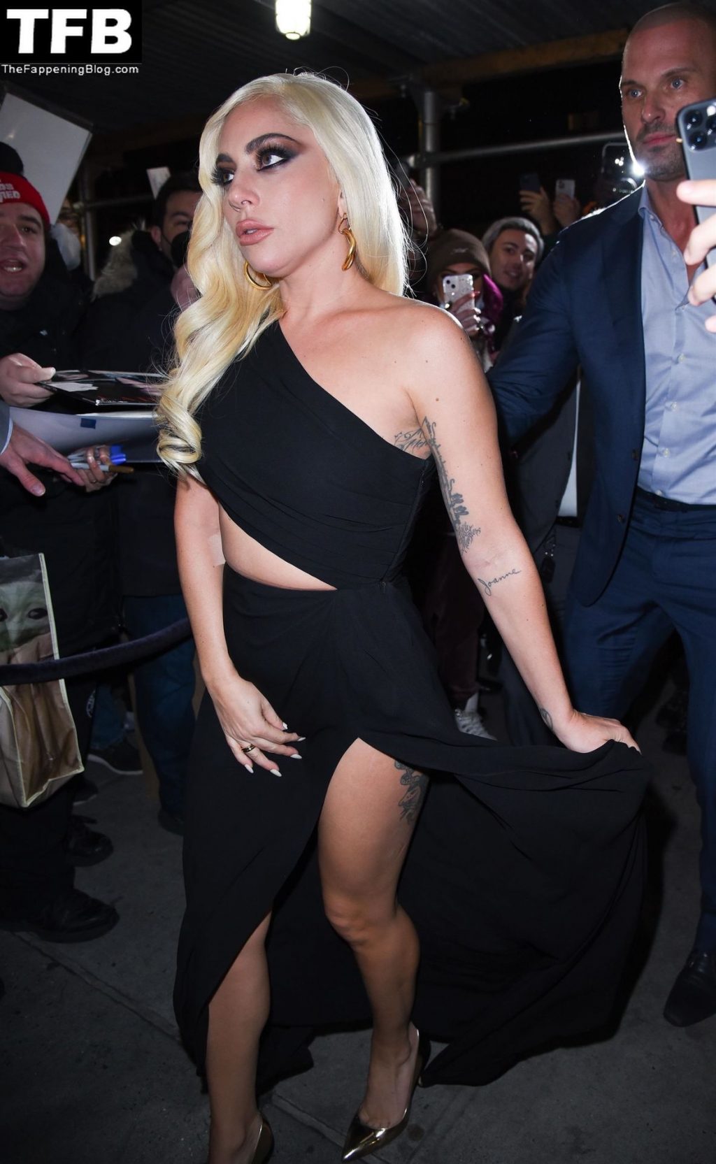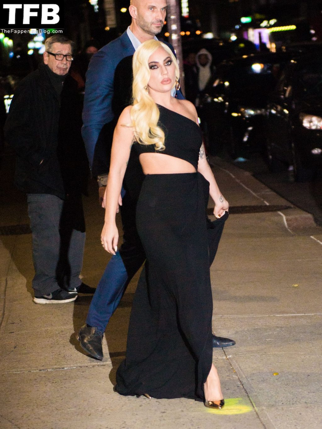 Lady Gaga è stata vista uscire dal programma di Stephen Colbert a Manhattan indossando un vestito con spacco sulla gamba, posando come Marilyn Monroe… con la sua biancheria color nudo in vista. L’attrice diventata cantante è uscita per promuovere il suo nuovo film ‘House of Gucci’.