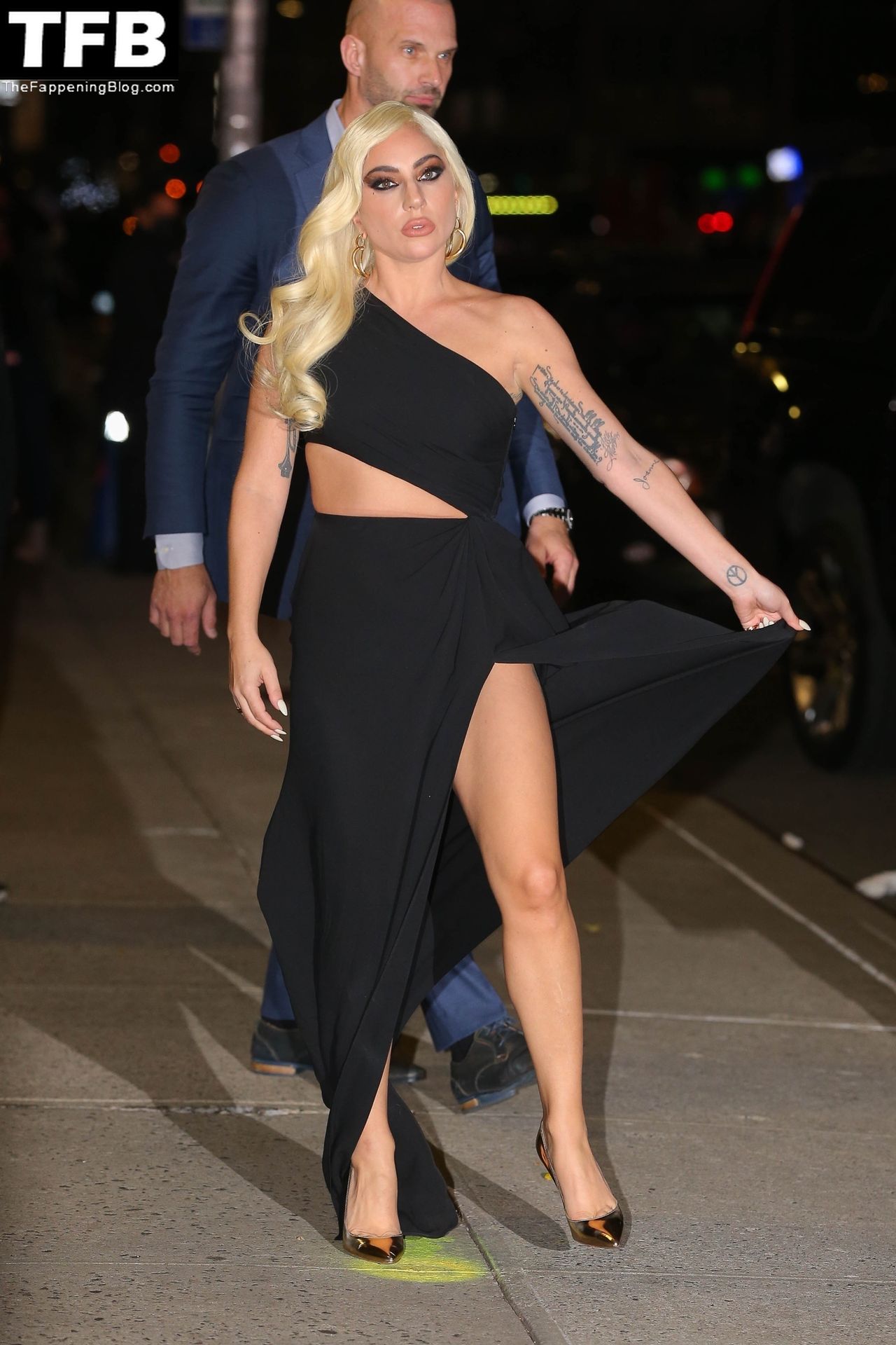Lady Gaga è stata vista uscire dal programma di Stephen Colbert a Manhattan indossando un vestito con spacco sulla gamba, posando come Marilyn Monroe… con la sua biancheria color nudo in vista. L’attrice diventata cantante è uscita per promuovere il suo nuovo film ‘House of Gucci’.
