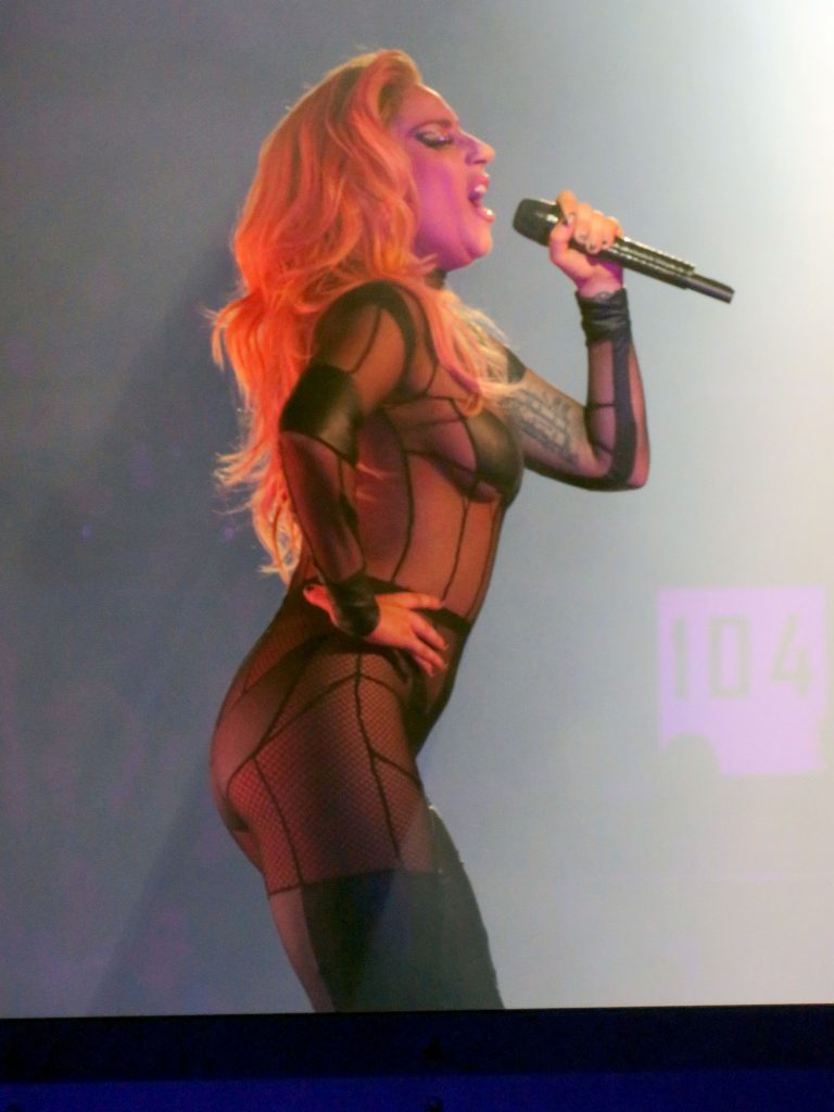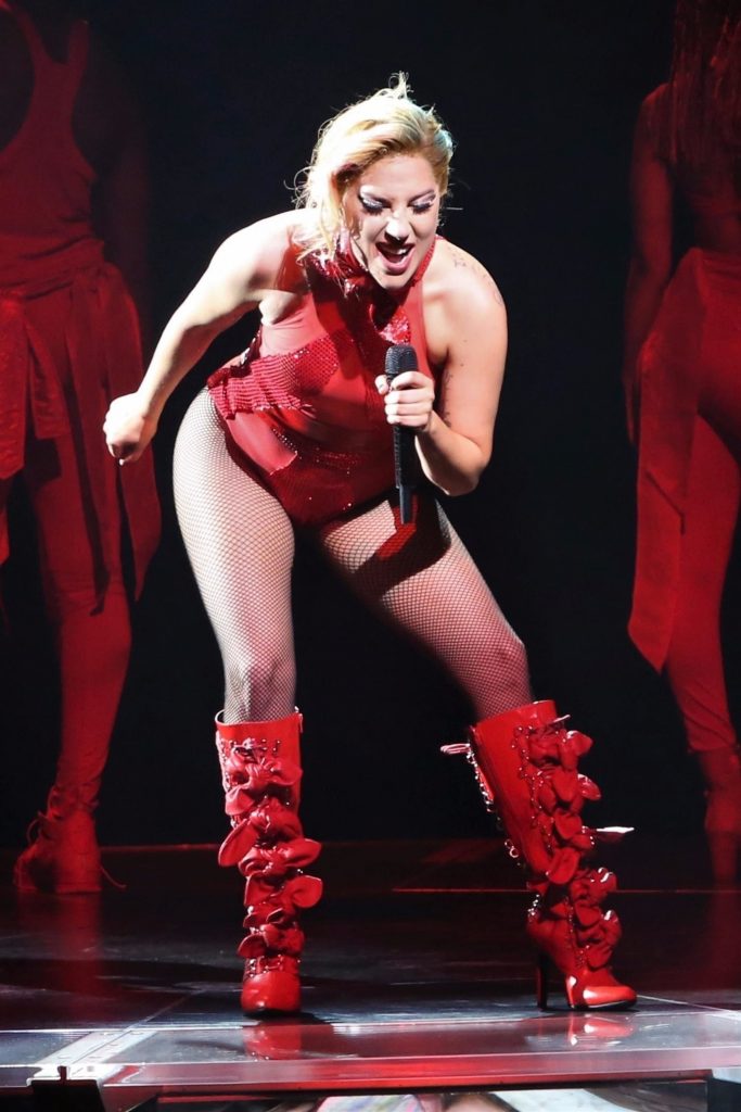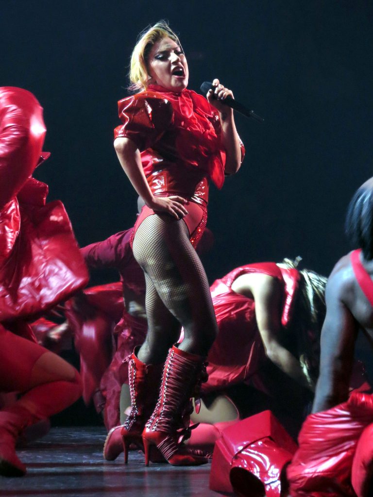Guardandola, non posso fare a meno di chiedermi come se la caverebbe Gaga indossando una gonna al ginocchio e un dolcevita sul palco.