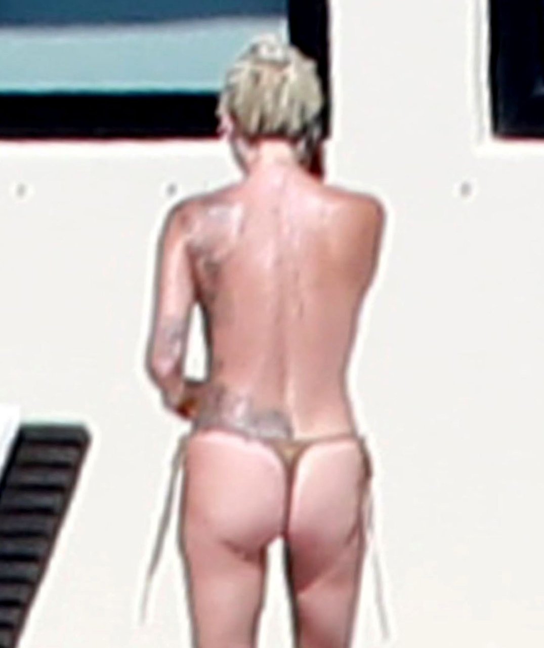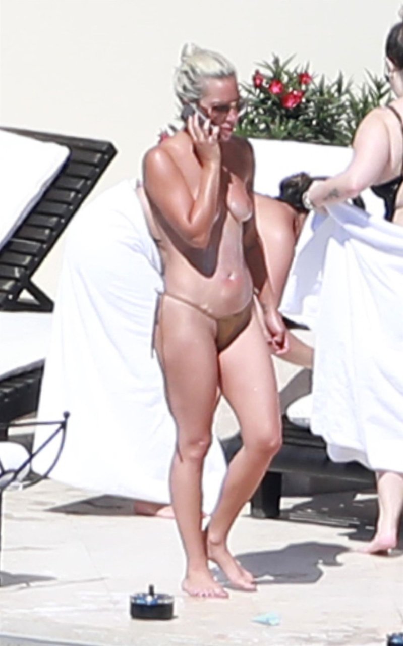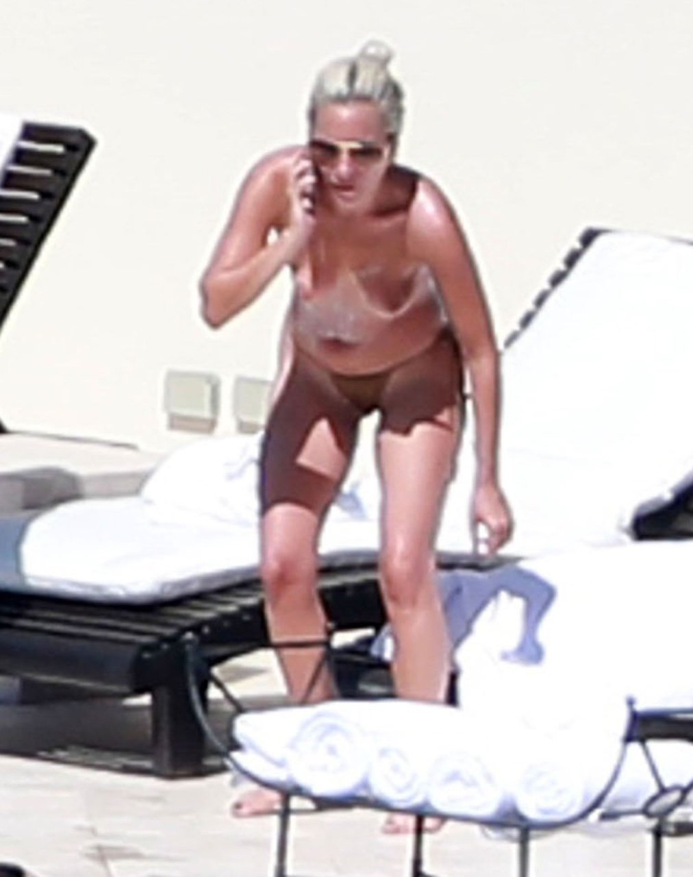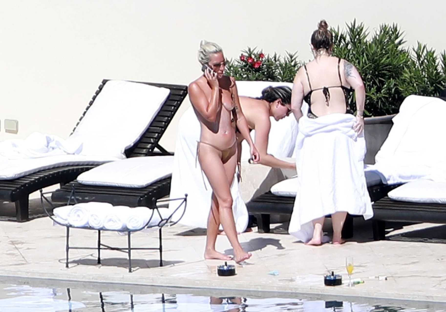La cantante e attrice americana Lady Gaga prende il sole topless in Messico con amici, 14/02/2019.