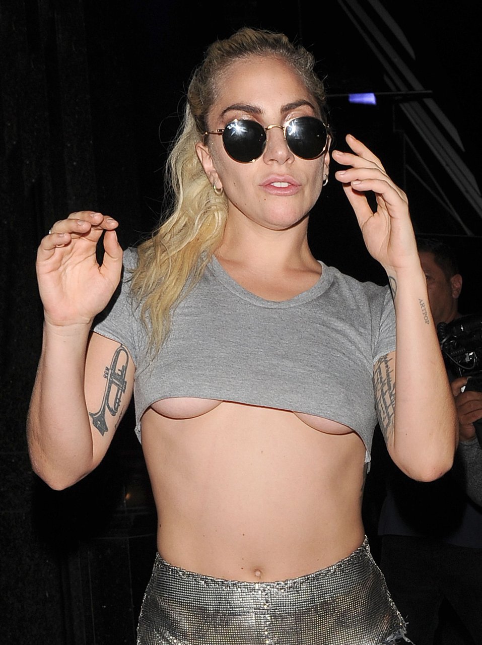 Lady Gaga sfoggia un fantastico underboob con pasties al Moth Club a Hackney, Londra, 09/10/2016. Lady Gaga (Stefani Joanne Angelina Germanotta) è una cantante, cantautrice e attrice americana. Età: 30 (28 marzo 1986).