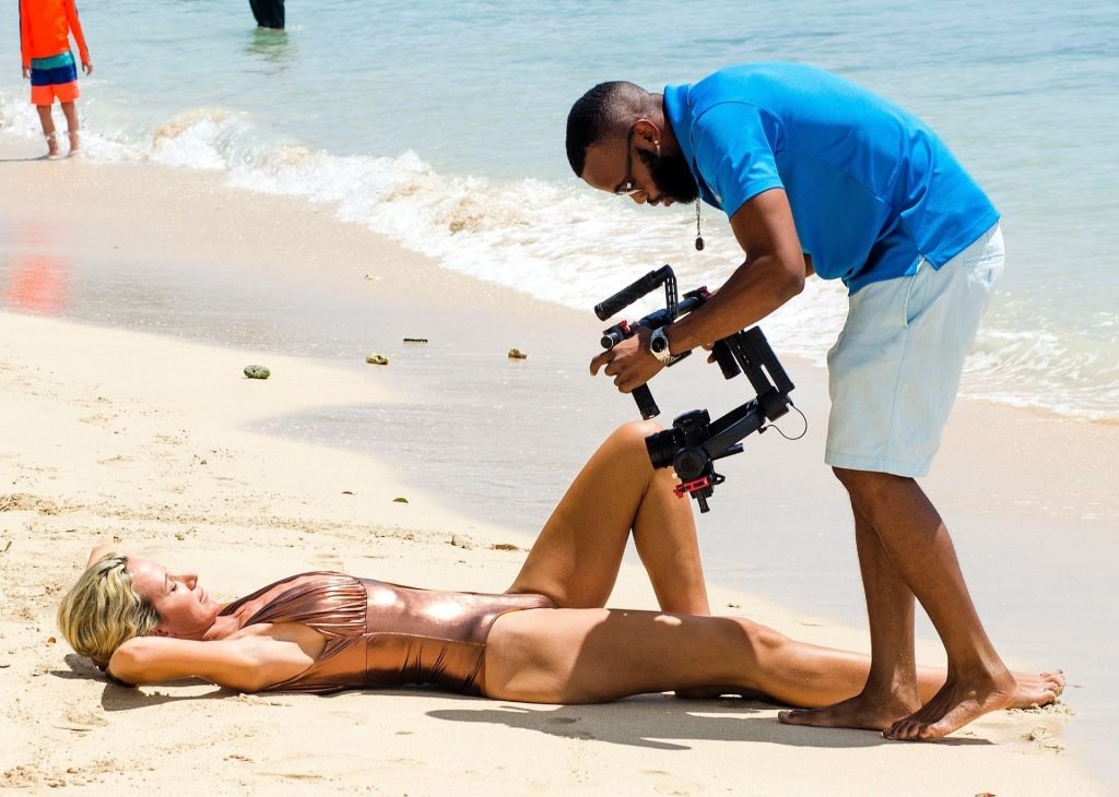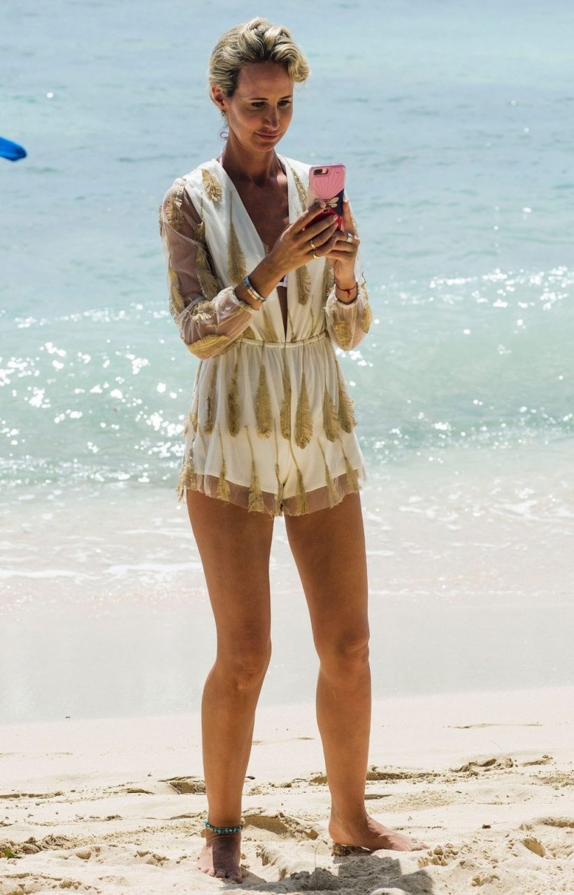 Lady Victoria Hervey è stata fotografata indossando un costume da bagno della sua etichetta durante un servizio fotografico a Barbados, 23/04/2019.