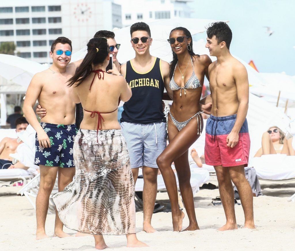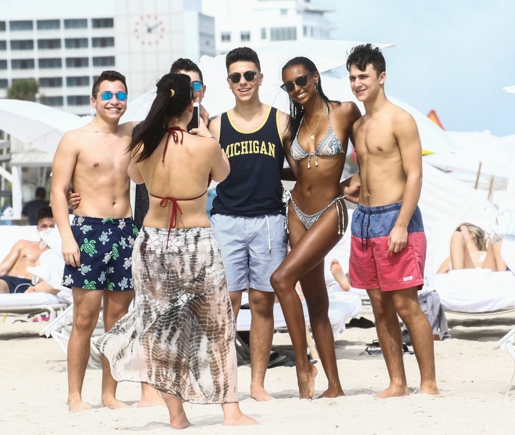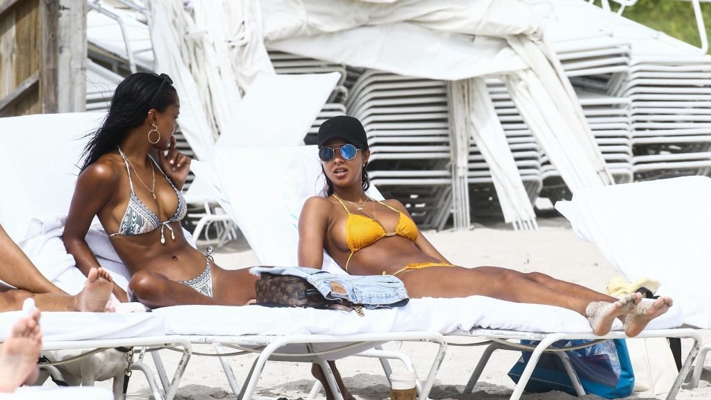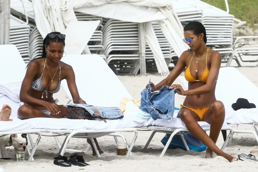 Le modelle Lais Ribeiro e Jasmine Tookes si rilassano e prendono il sole in minuscoli bikini sulla spiaggia di Miami, 20/02/2018.