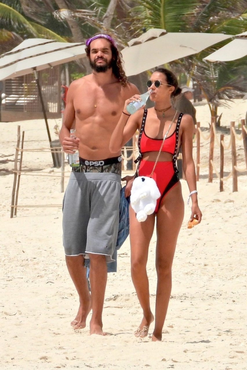 La modella Lais Ribeiro e il giocatore NBA Joakim Noah sono stati visti passeggiare sulle sabbie di Tulum, Messico, dopo aver trascorso la notte a festeggiare a Casa Malca, l’ex casa del signore della droga Pablo Escobar, 01/06/2019.