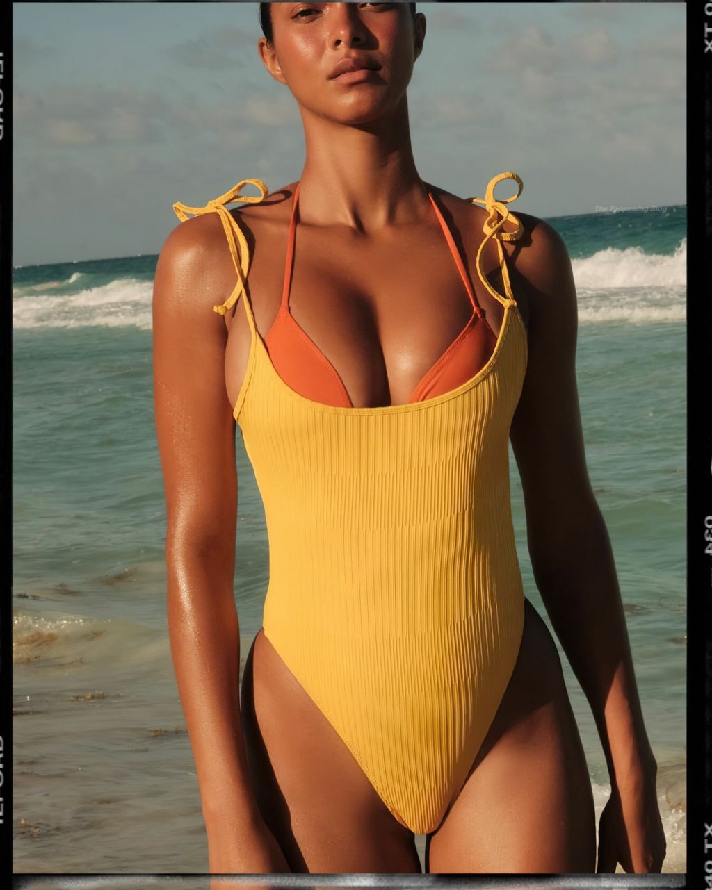 La top model brasiliana Lais Ribeiro mostra il suo corpo naturale, promuovendo costumi da bagno della nuova collezione Tropic C Verano Caliente (2021).