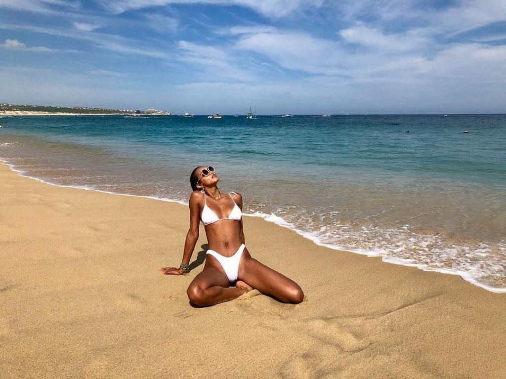Lais Ribeiro si gode la spiaggia indossando un bikini bianco a Cabo San Lucas, 14/08/2018. La bruna di 27 anni sta ancora trascorrendo una vacanza nella città messicana.
