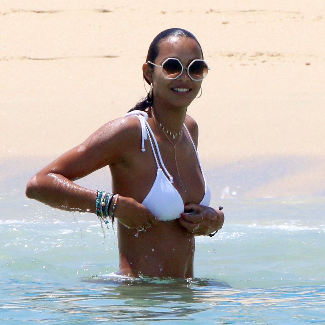 Lais Ribeiro si gode la spiaggia indossando un bikini bianco a Cabo San Lucas, 14/08/2018. La bruna di 27 anni sta ancora trascorrendo una vacanza nella città messicana.