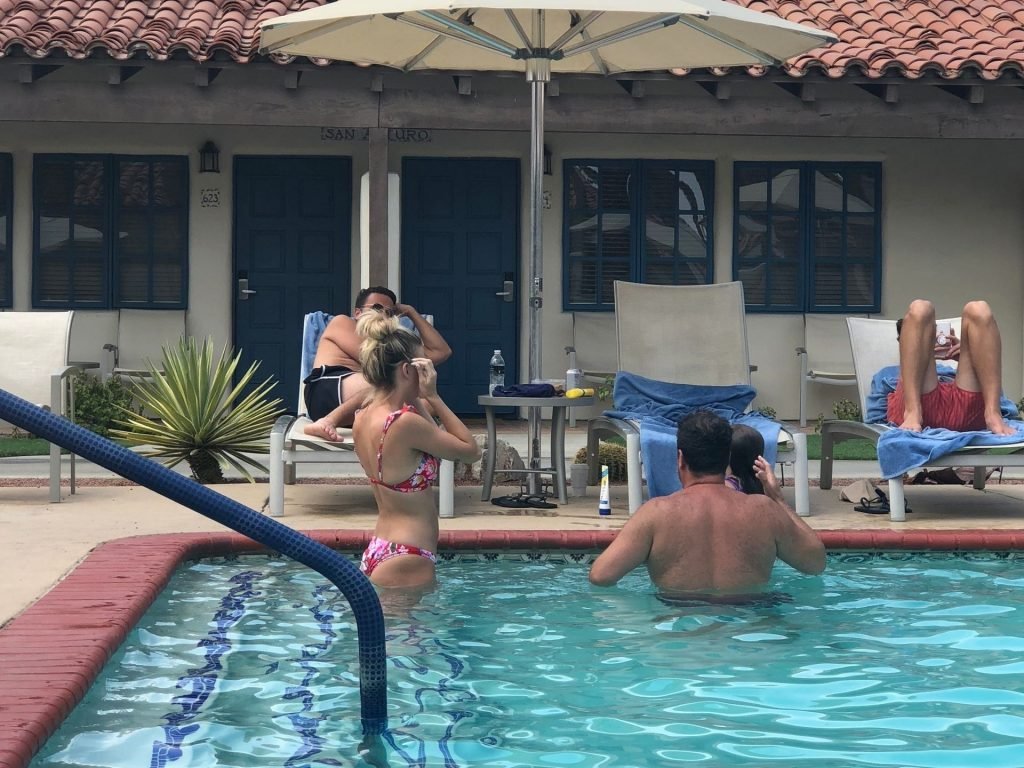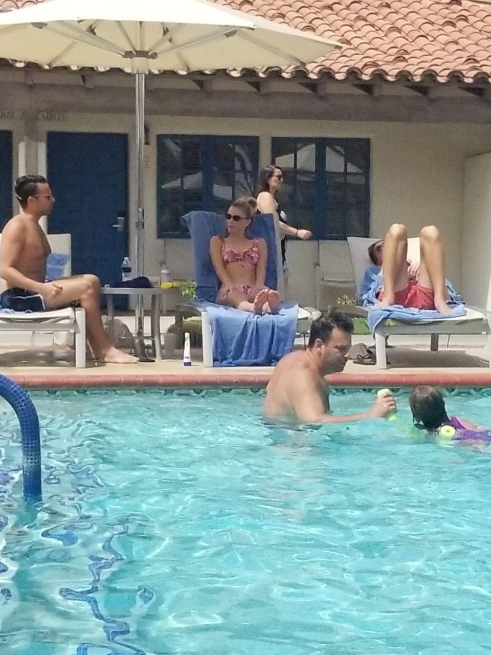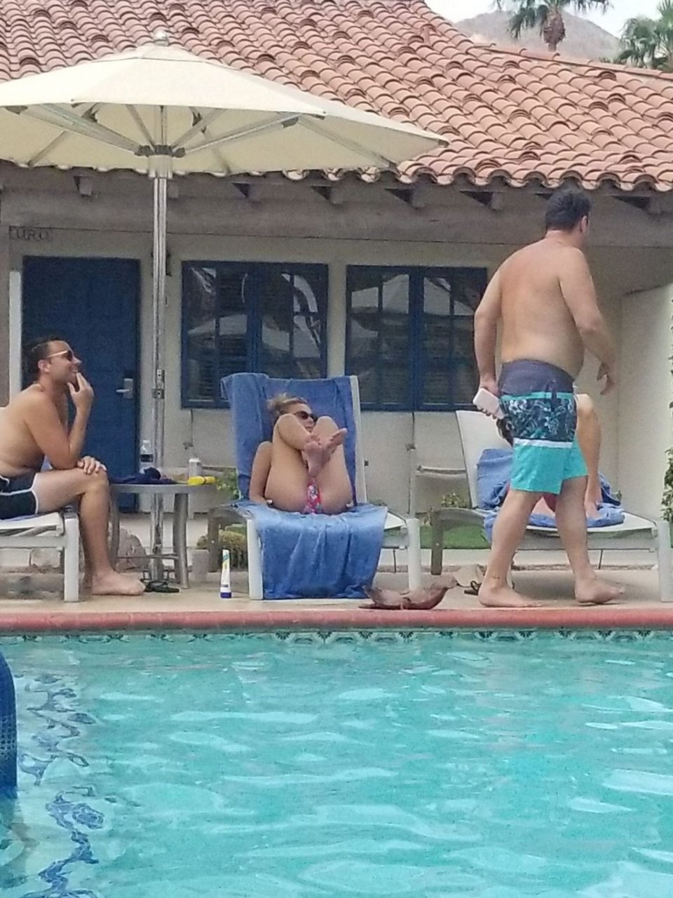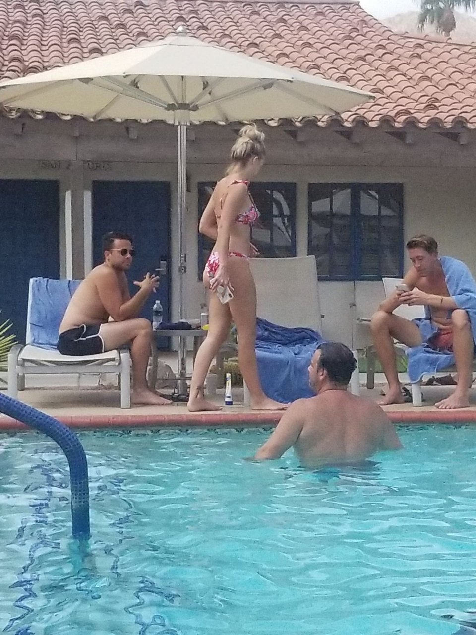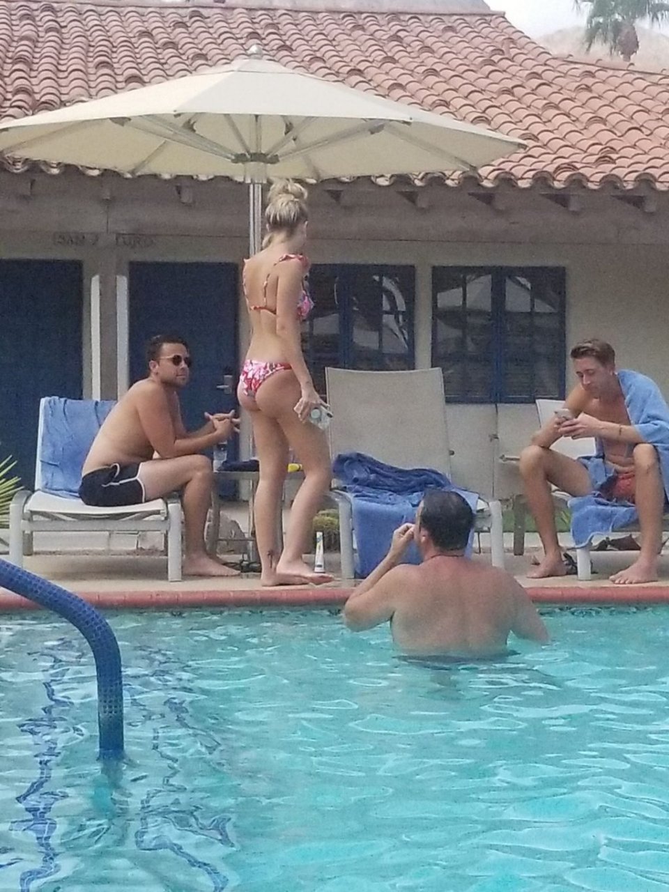 Lala Kent di “Vanderpump Rules” è a bordo piscina durante una vacanza nel deserto con il suo fidanzato, Randall Emmett, e la famiglia, 24/08/2019.