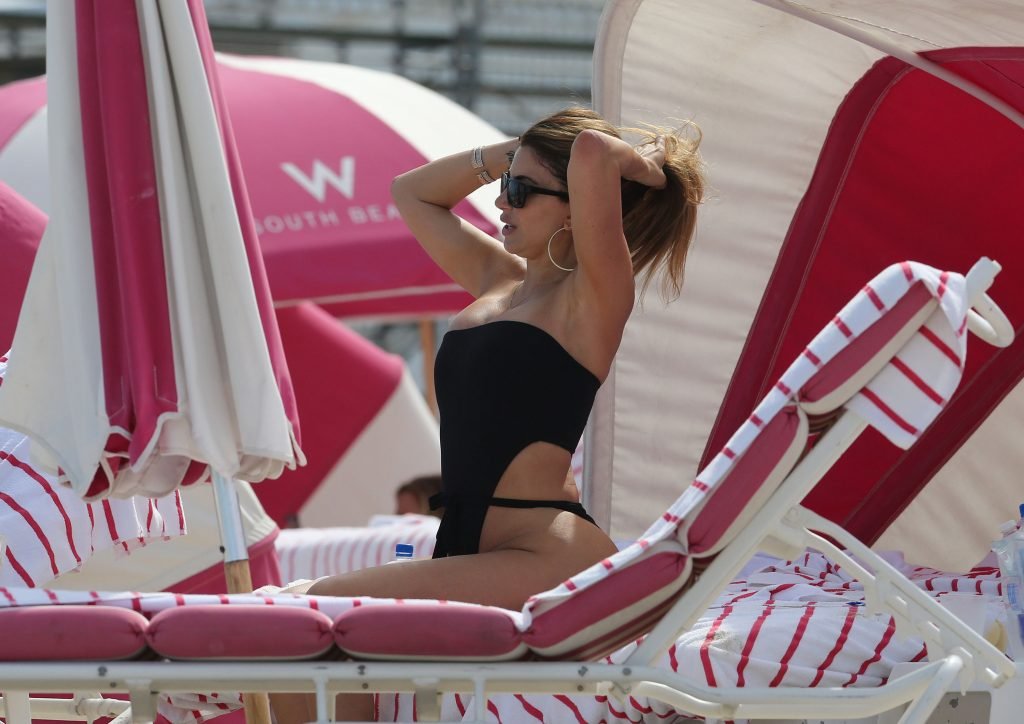 Larsa Pippen, 43 anni, mostra il suo grande sedere con un costume da bagno molto sgambato sulla spiaggia con amici a Miami, 31/03/2018. Larsa Pippen è una star americana della TV reality, moglie di Scottie ‘Pip’ Pippen.
