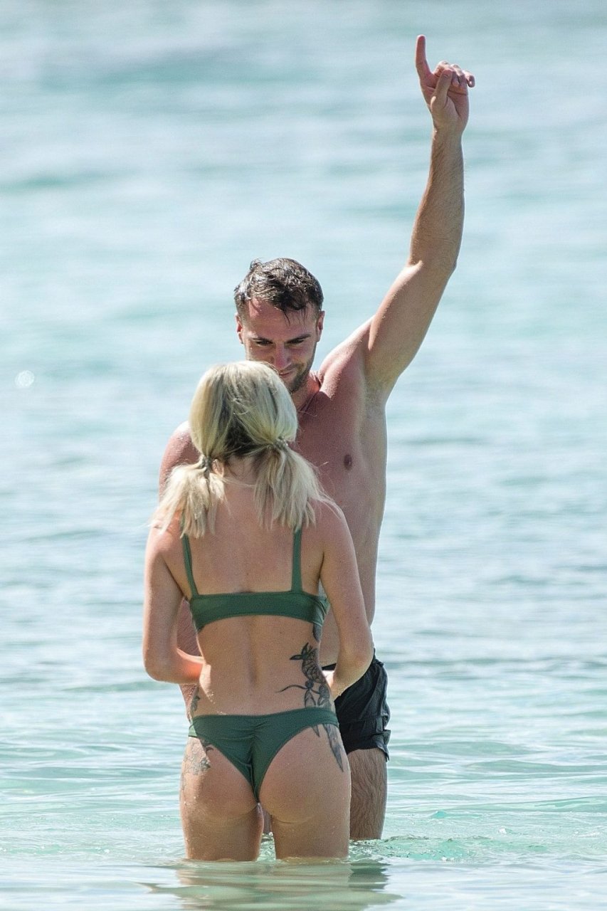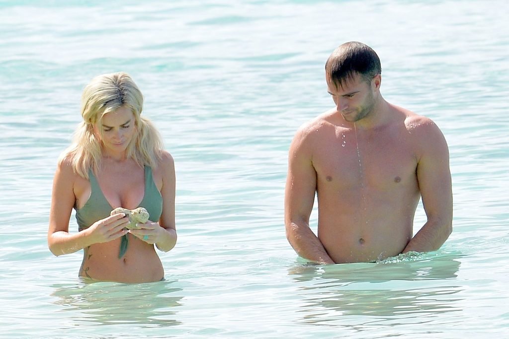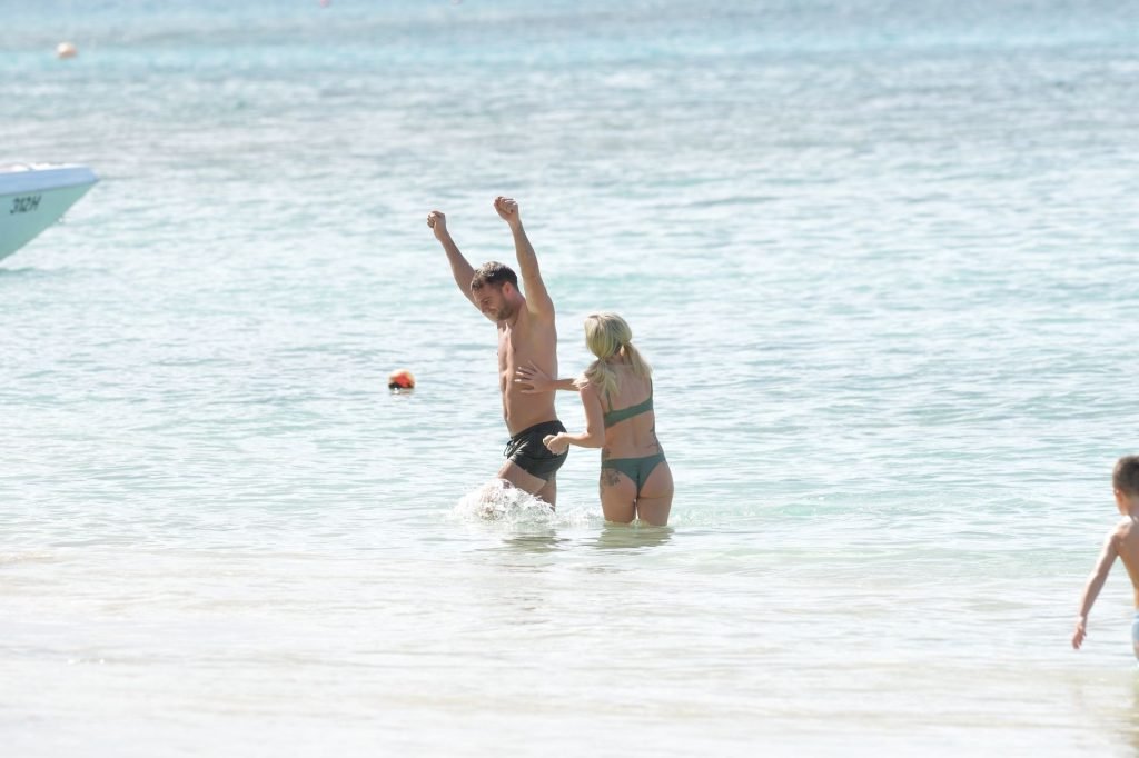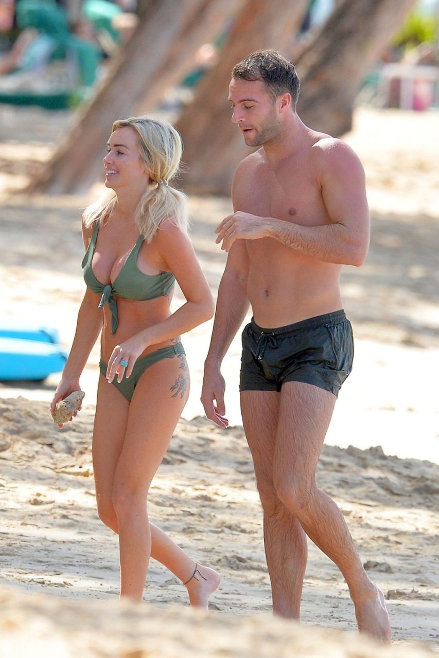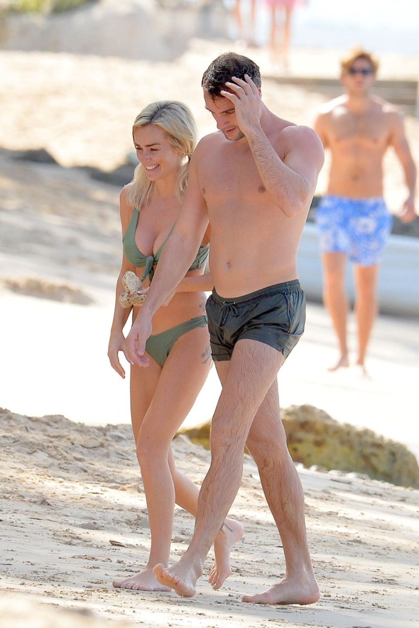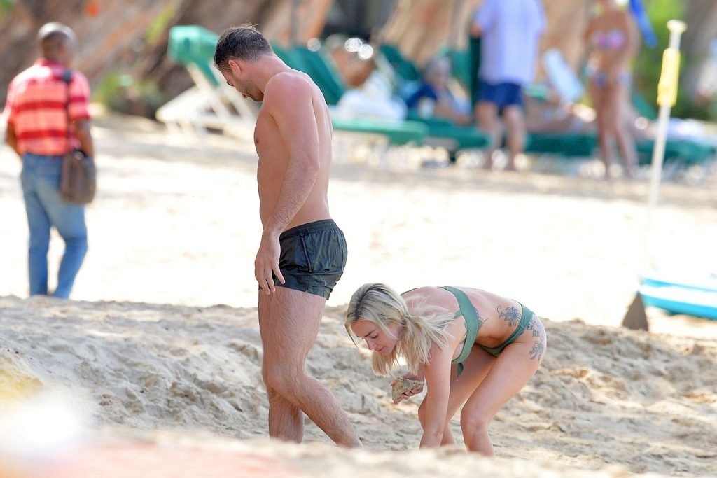 Coppia Laura Anderson e Max Morley sono stati fotografati a Barbados, 12/10/2018. La bionda di 29 anni ha mostrato il suo sexy corpo tatuato in bikini sulla spiaggia.
