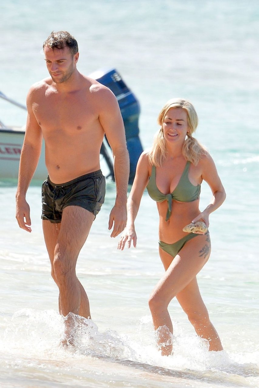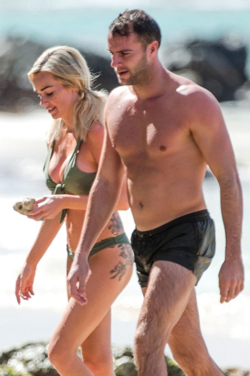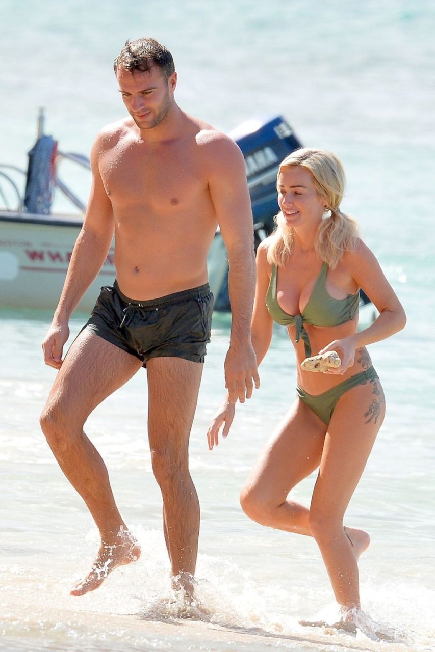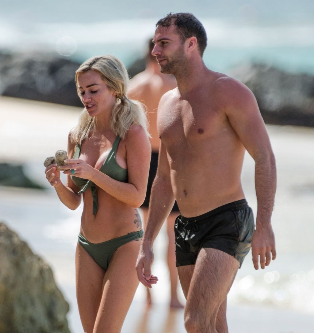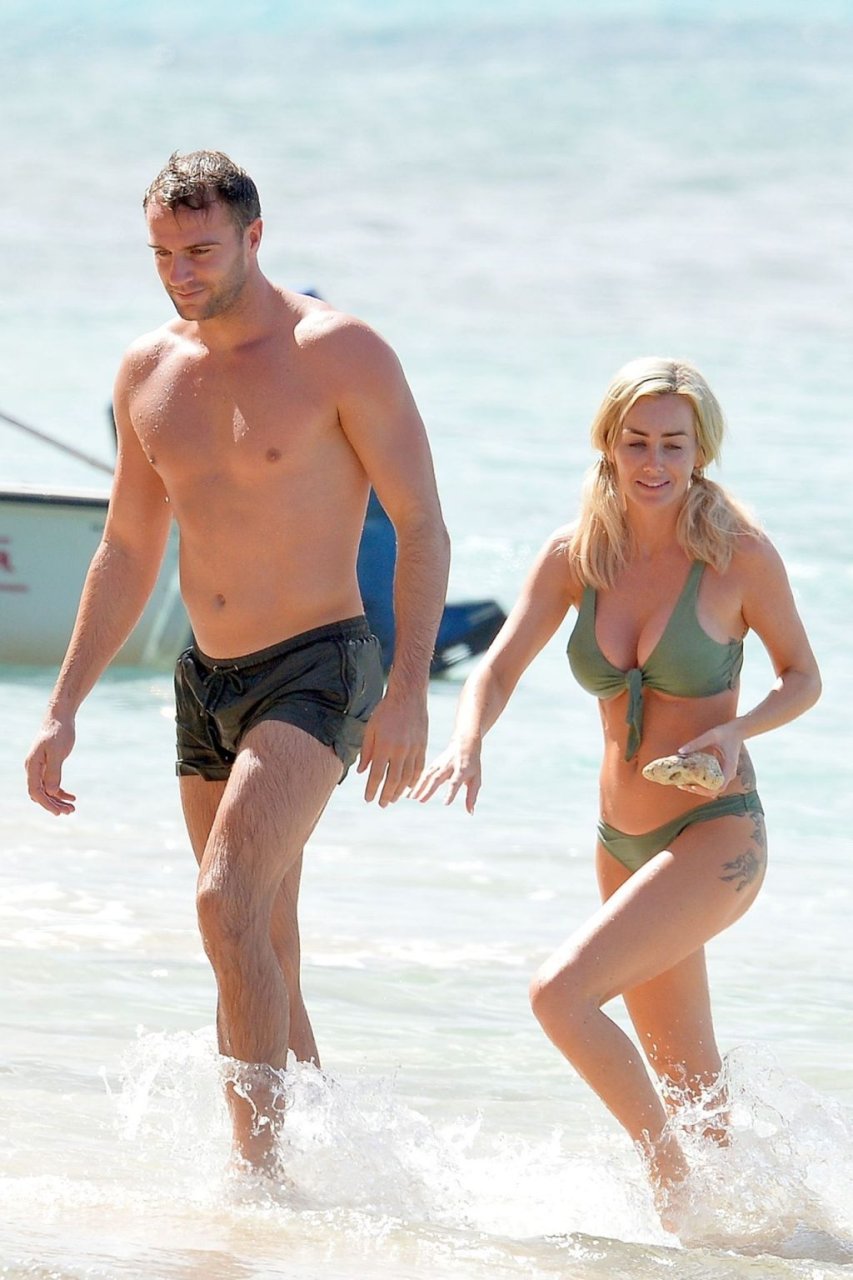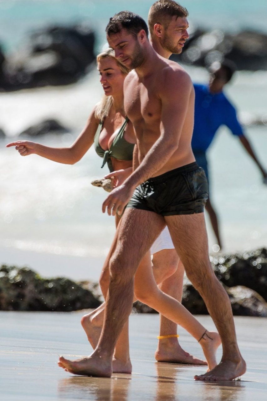 Coppia Laura Anderson e Max Morley sono stati fotografati a Barbados, 12/10/2018. La bionda di 29 anni ha mostrato il suo sexy corpo tatuato in bikini sulla spiaggia.
