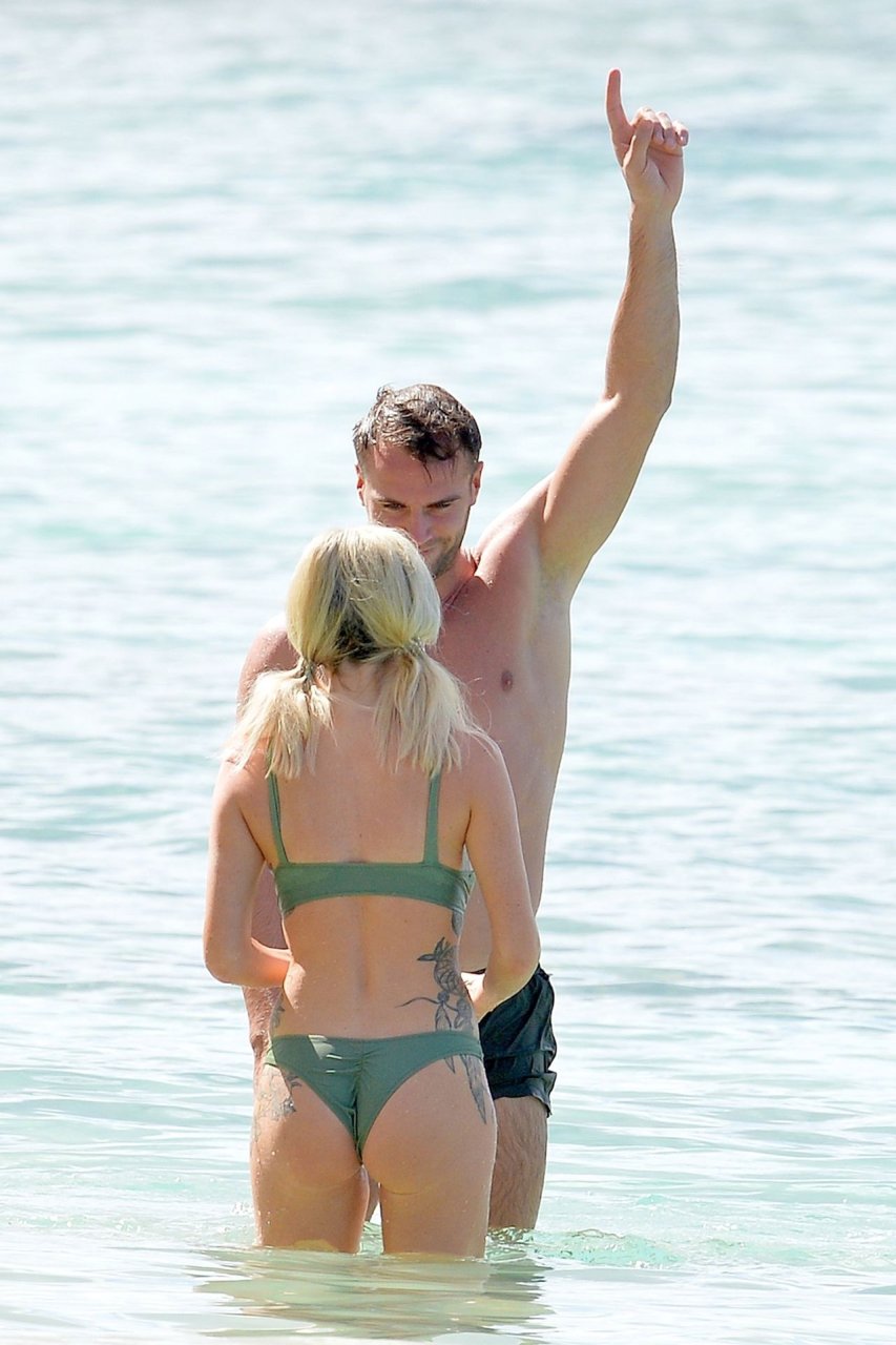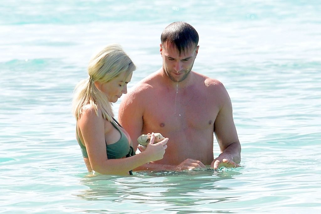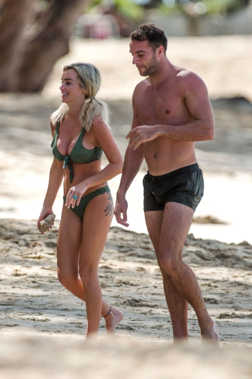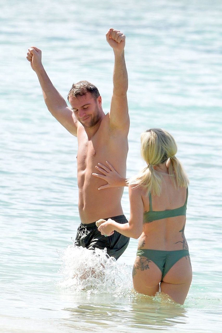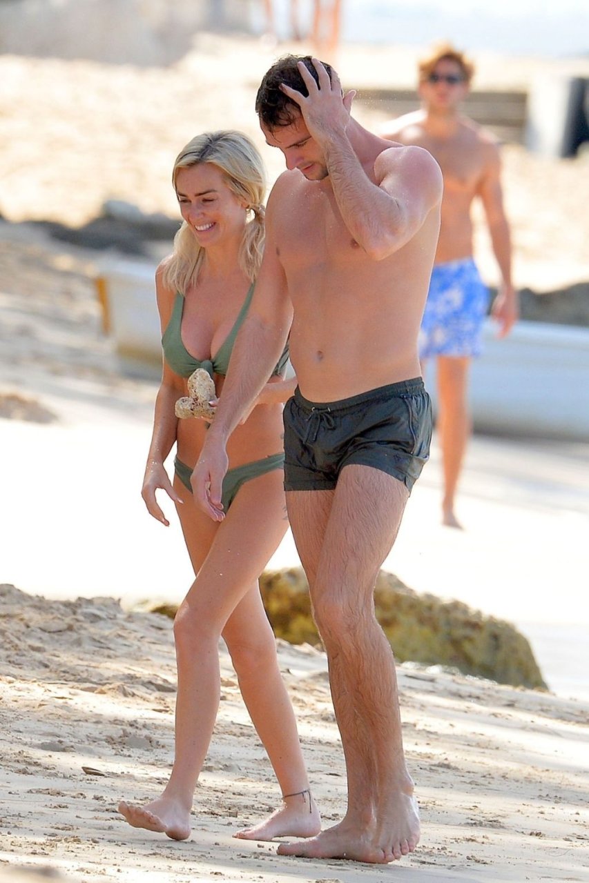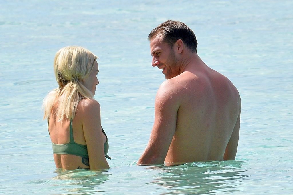 Coppia Laura Anderson e Max Morley sono stati fotografati a Barbados, 12/10/2018. La bionda di 29 anni ha mostrato il suo sexy corpo tatuato in bikini sulla spiaggia.