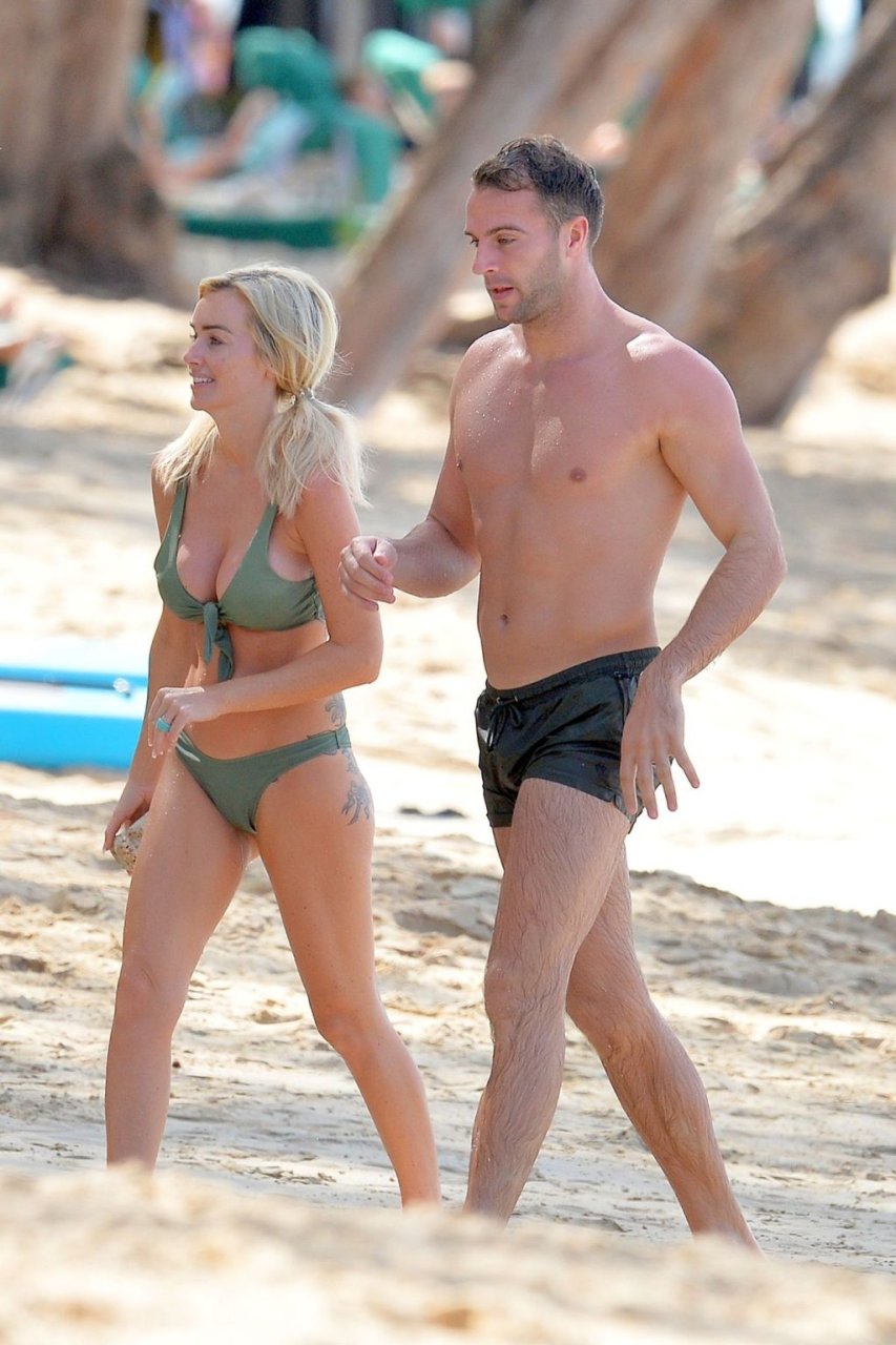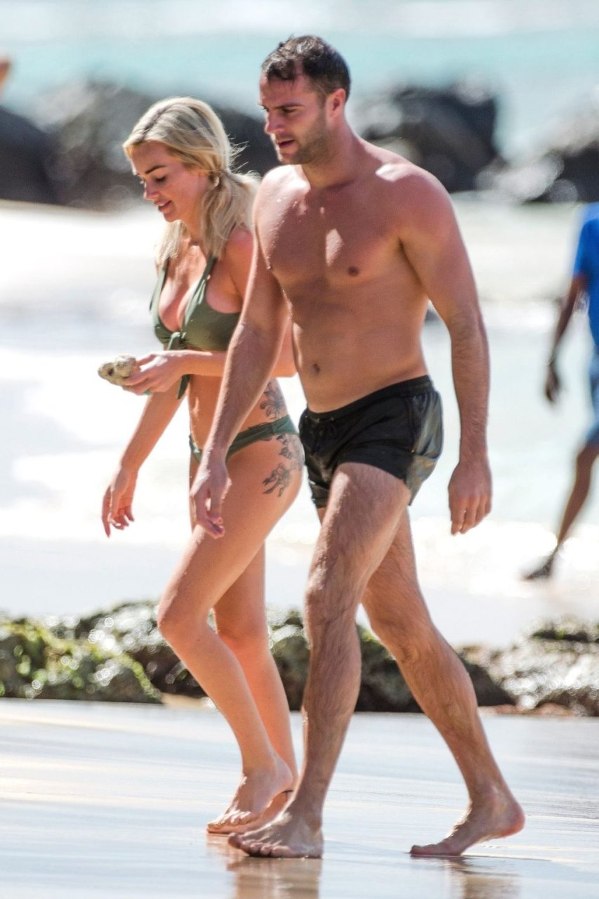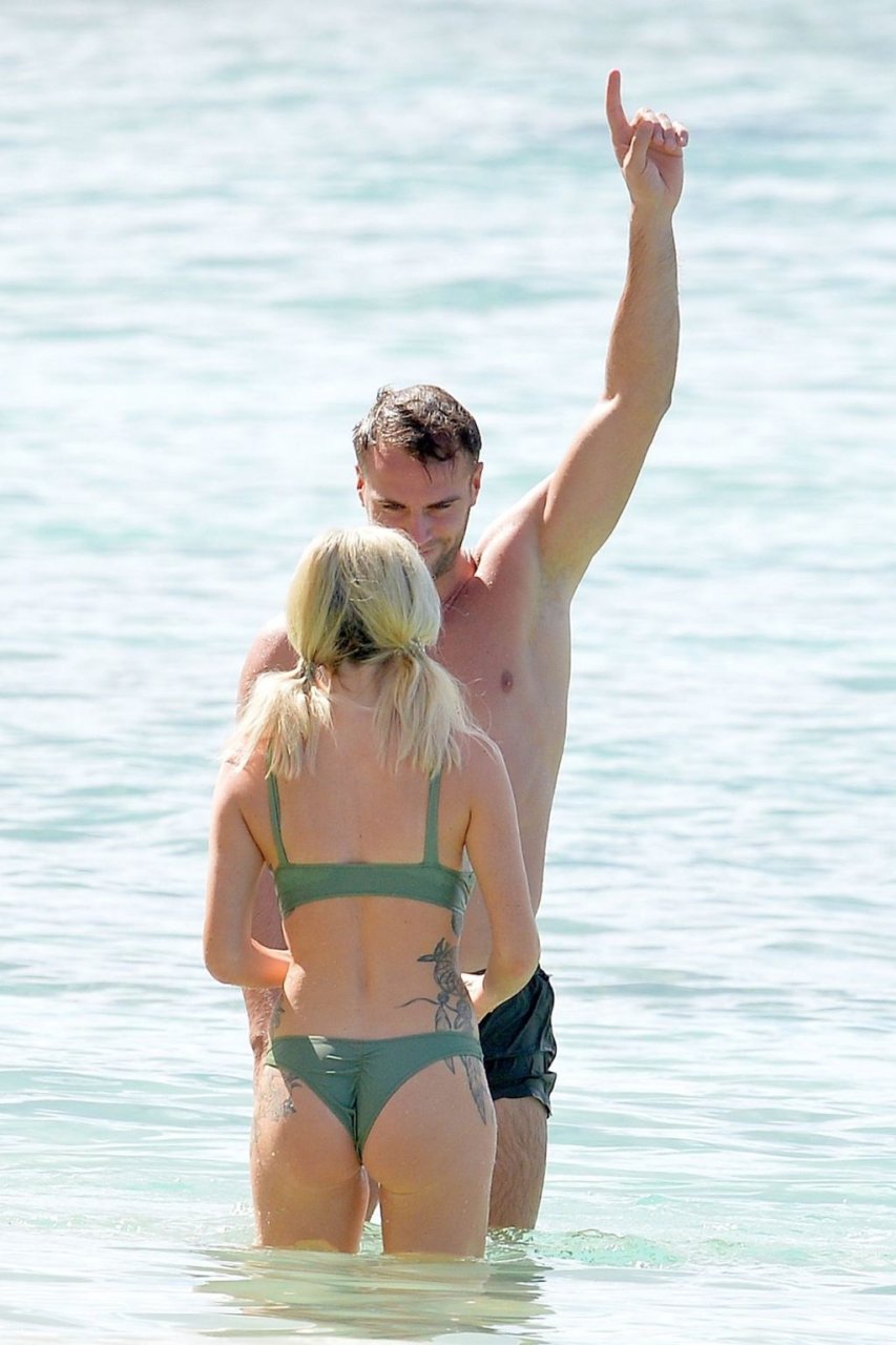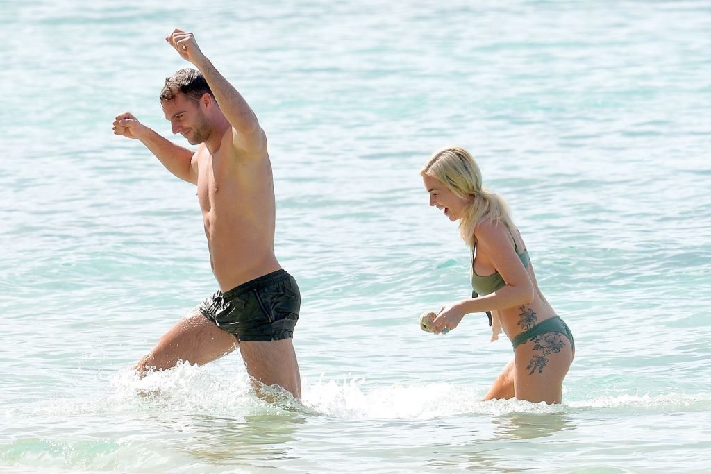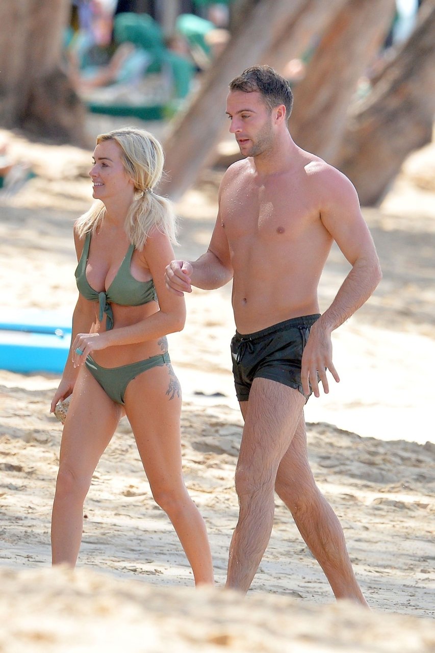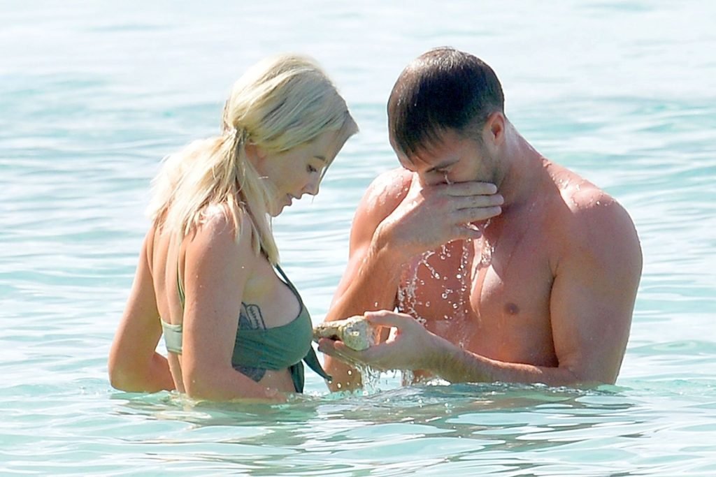 Coppia Laura Anderson e Max Morley sono stati fotografati a Barbados, 12/10/2018. La bionda di 29 anni ha mostrato il suo sexy corpo tatuato in bikini sulla spiaggia.