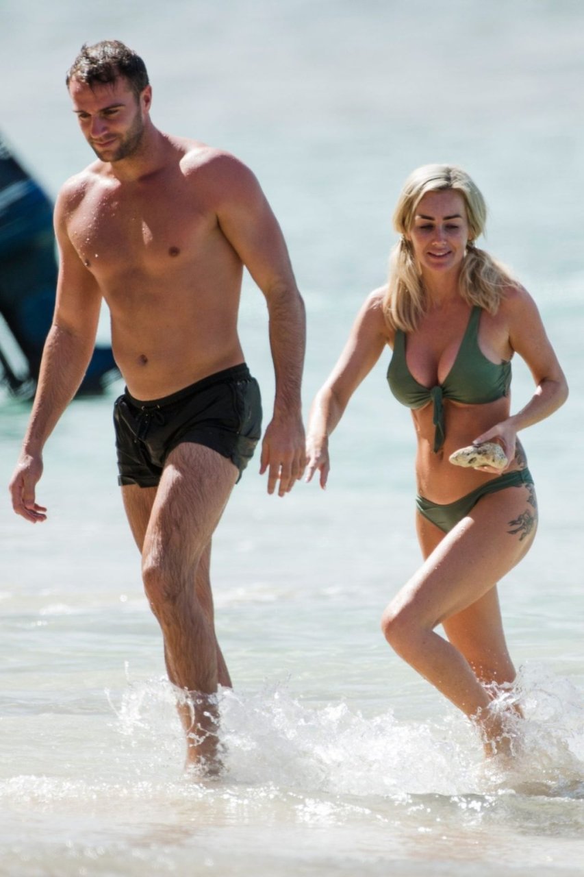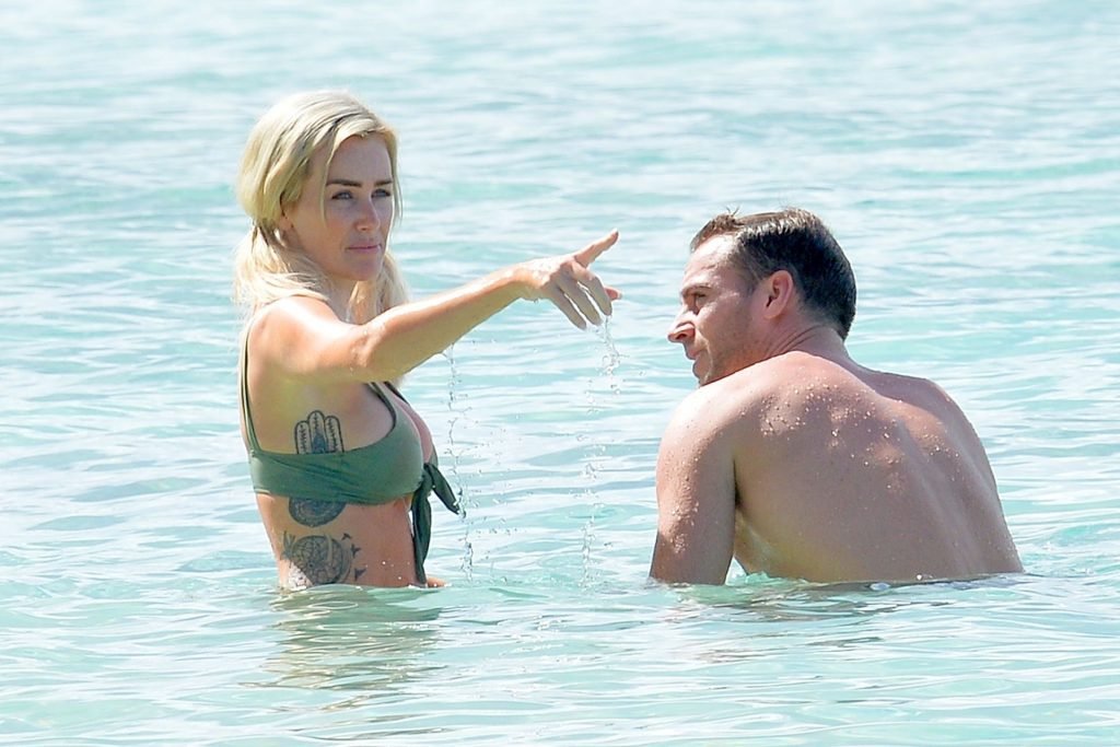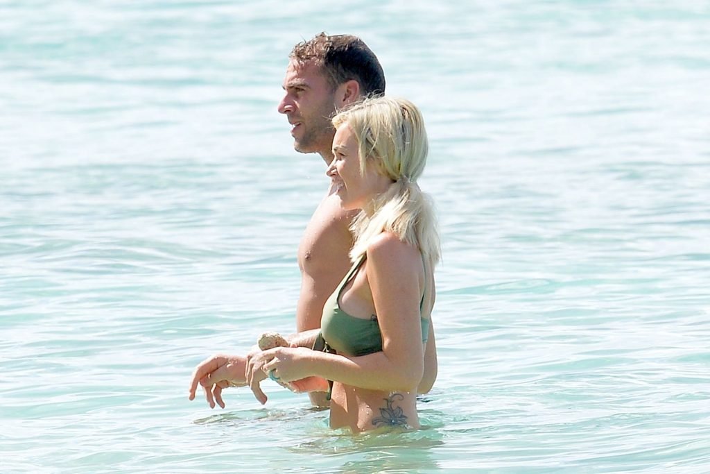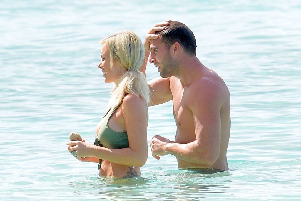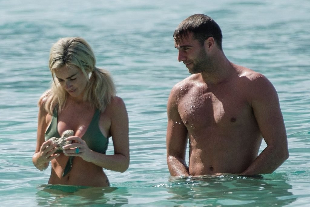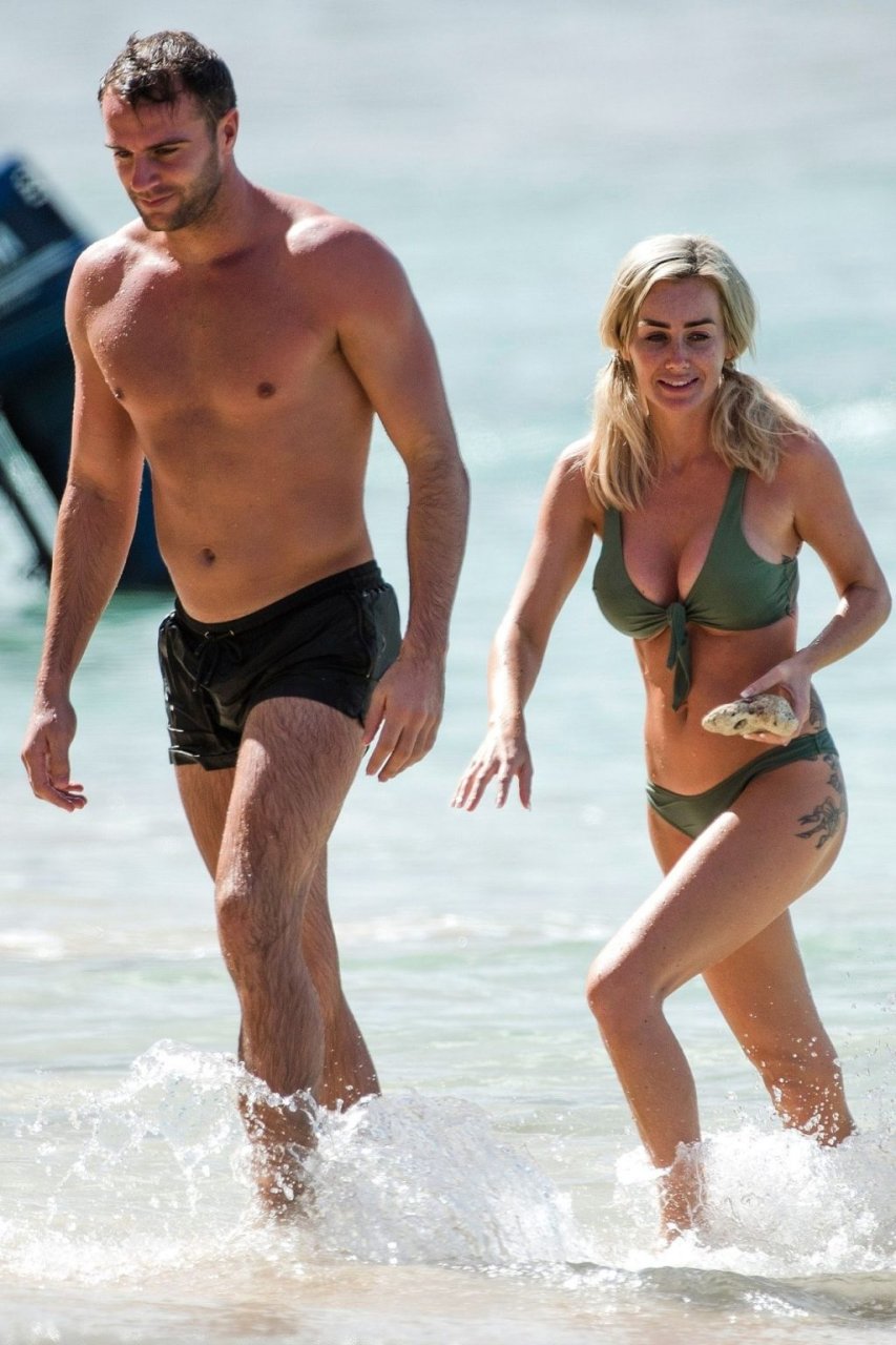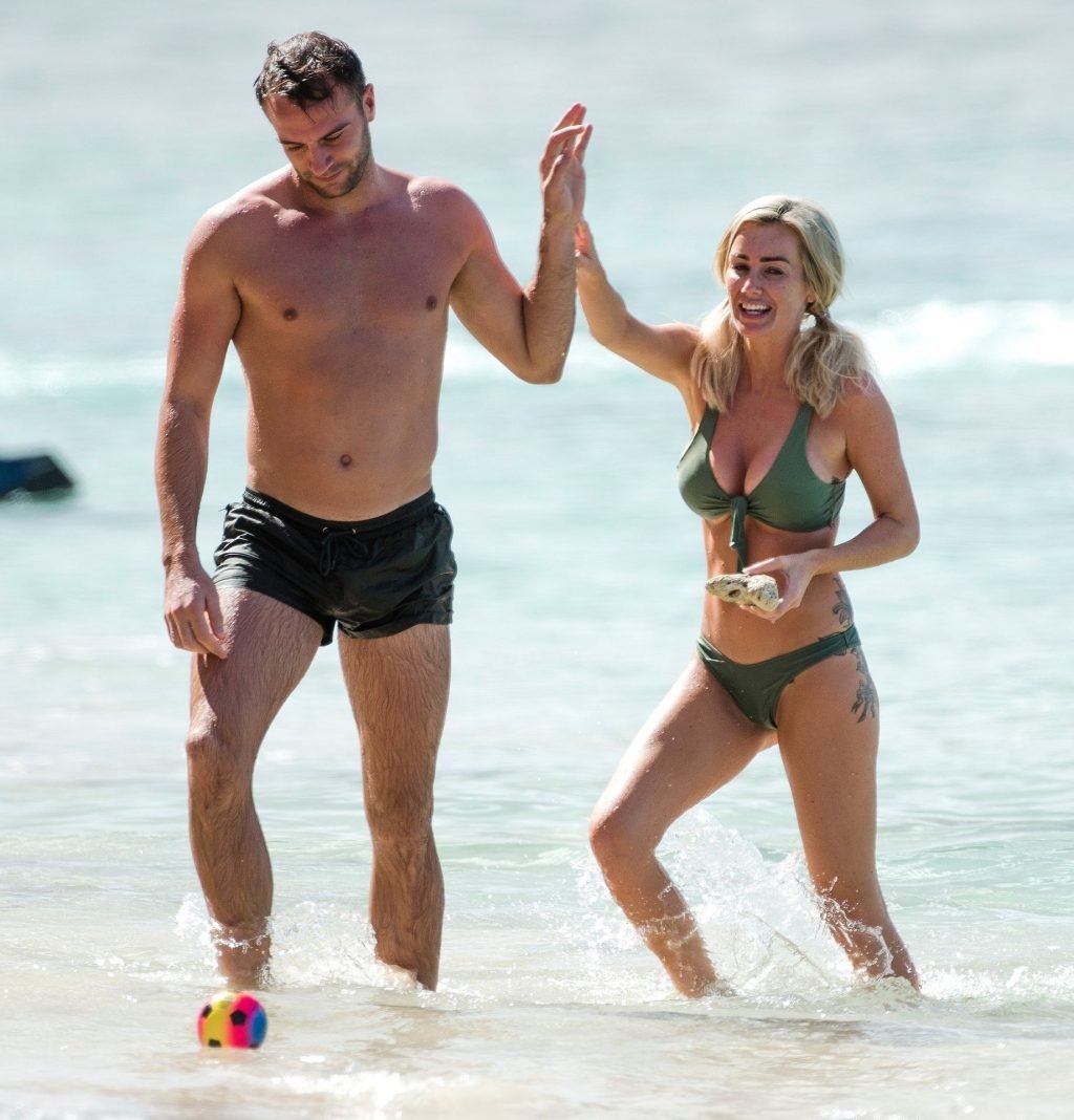 Coppia Laura Anderson e Max Morley sono stati fotografati a Barbados, 12/10/2018. La bionda di 29 anni ha mostrato il suo sexy corpo tatuato in bikini sulla spiaggia.