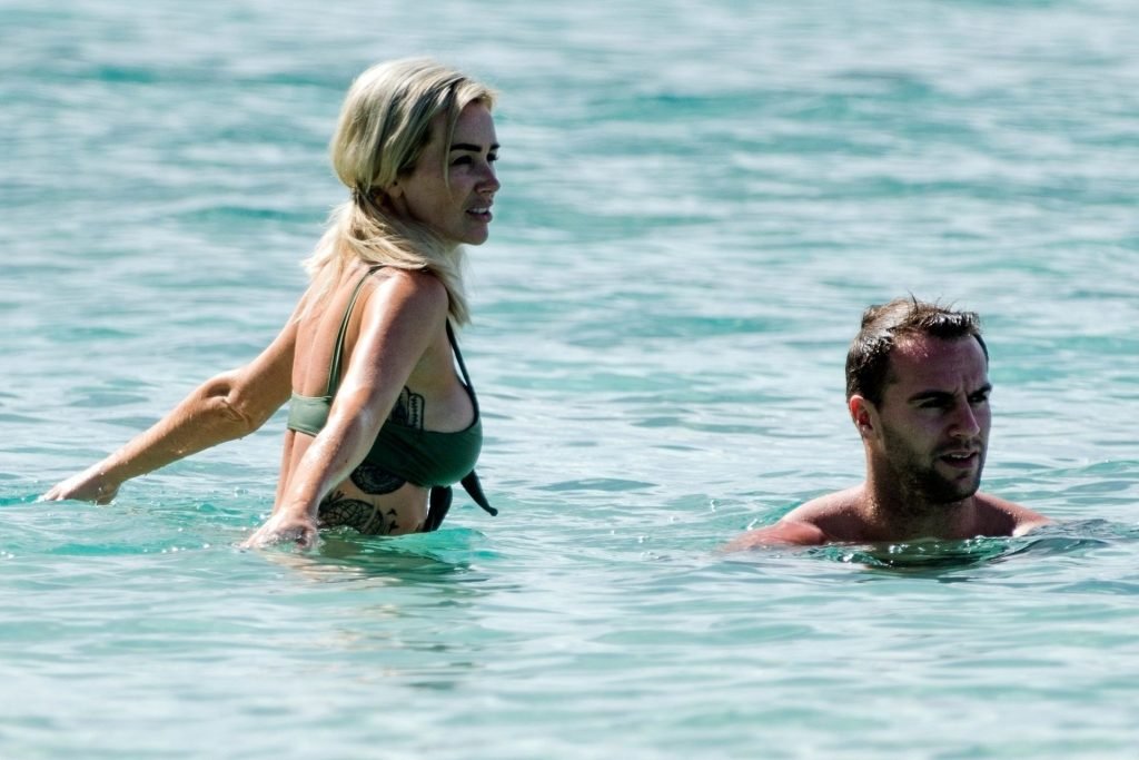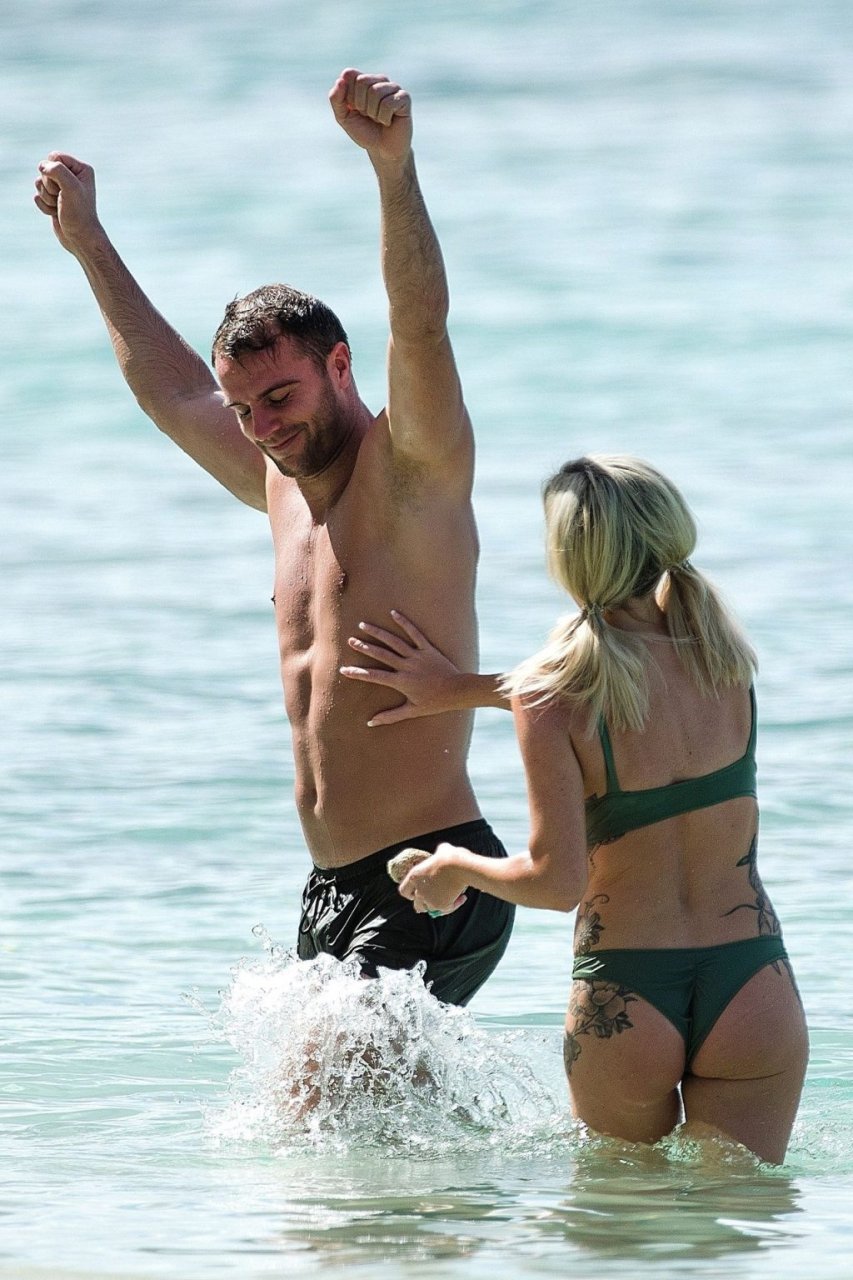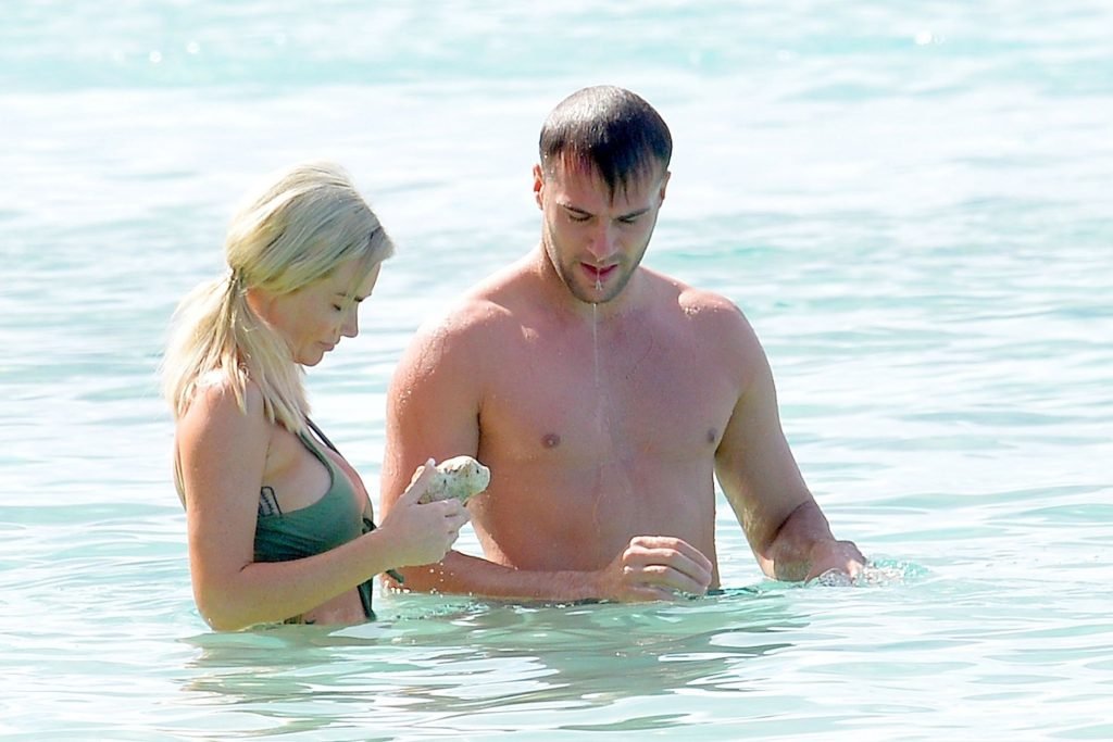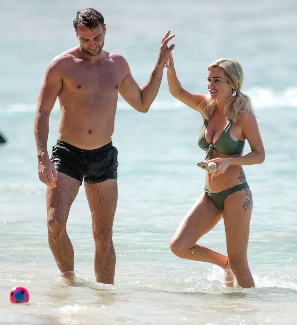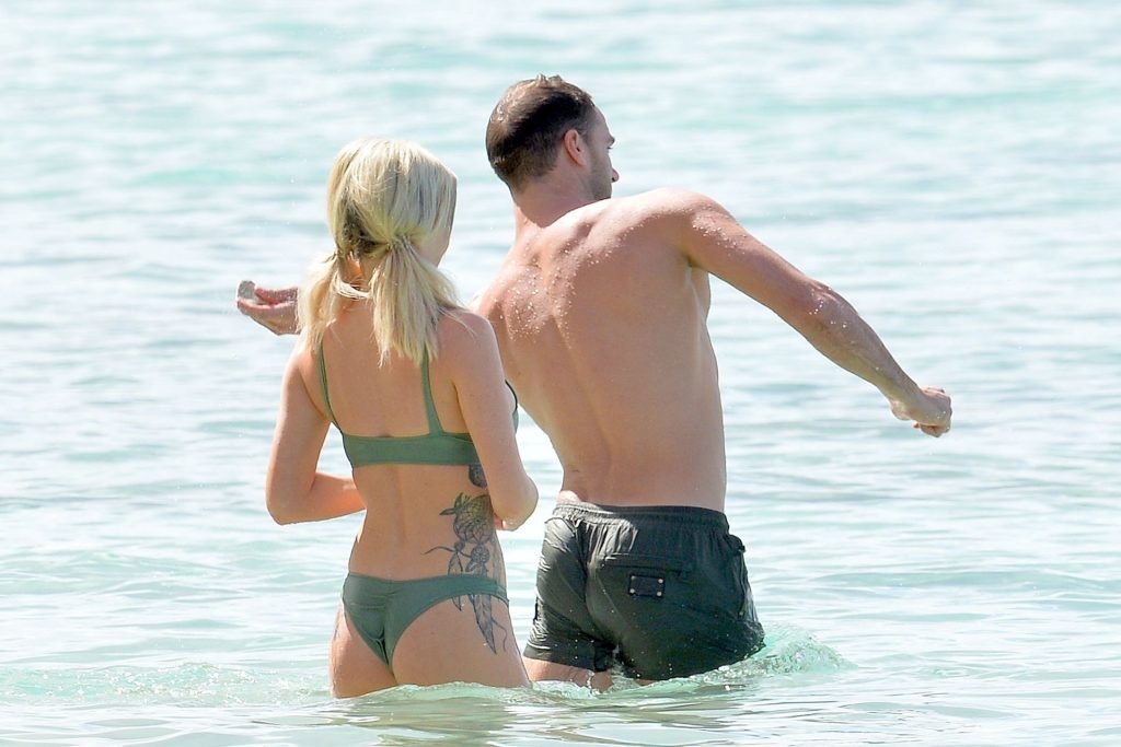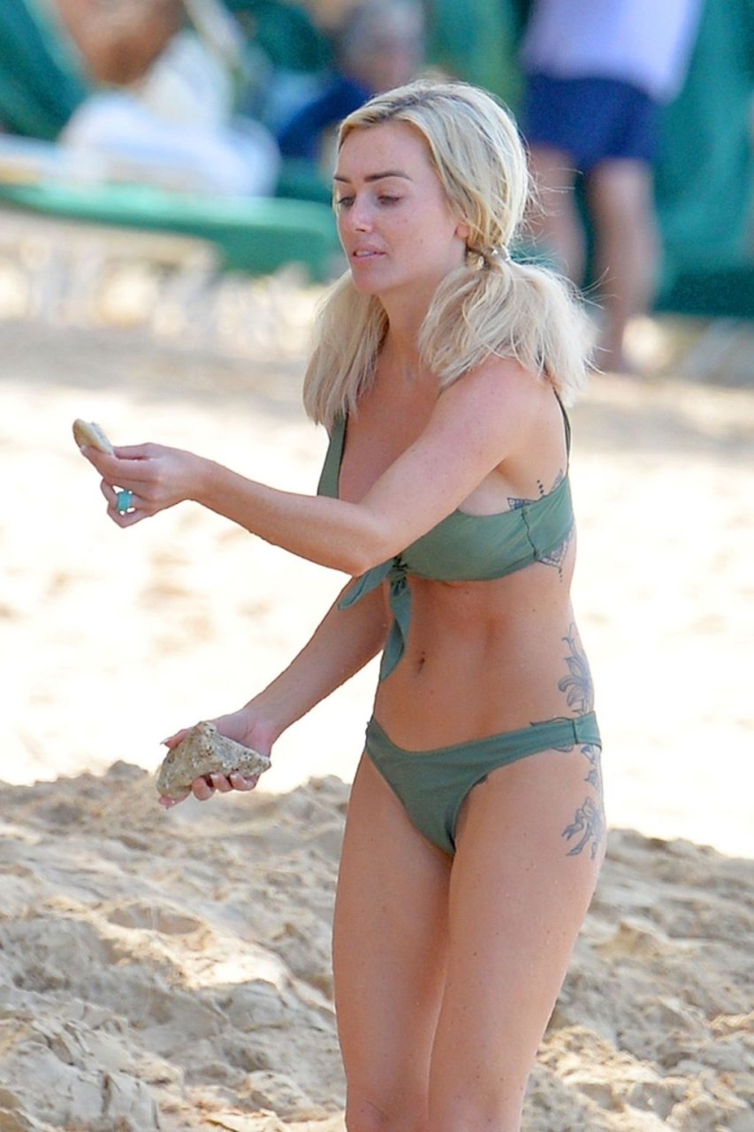 Coppia Laura Anderson e Max Morley sono stati fotografati a Barbados, 12/10/2018. La bionda di 29 anni ha mostrato il suo sexy corpo tatuato in bikini sulla spiaggia.