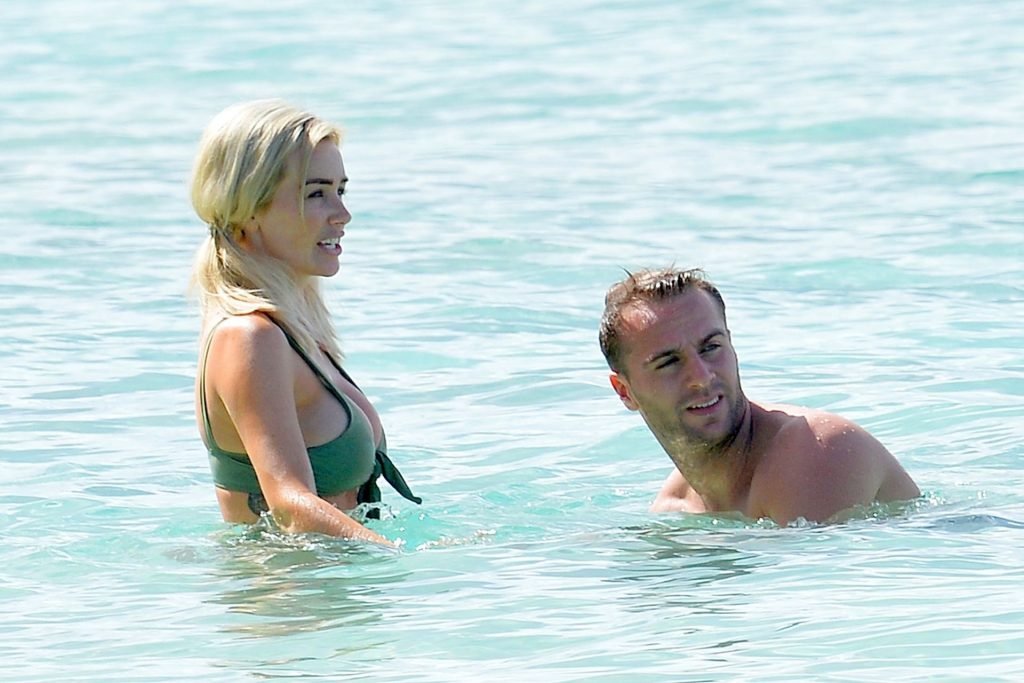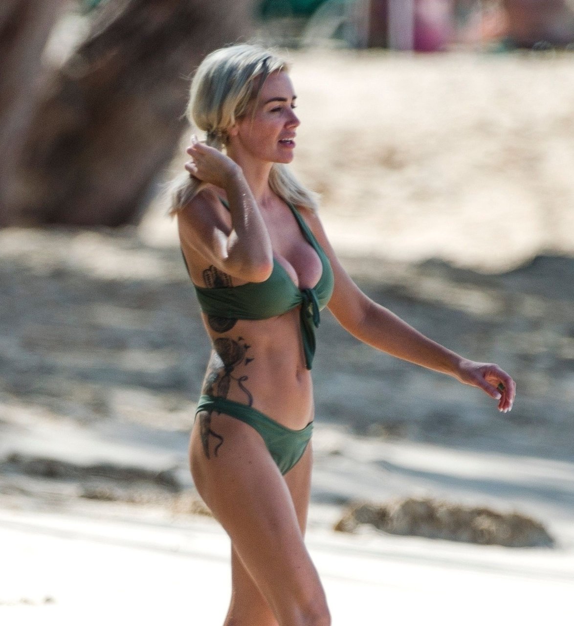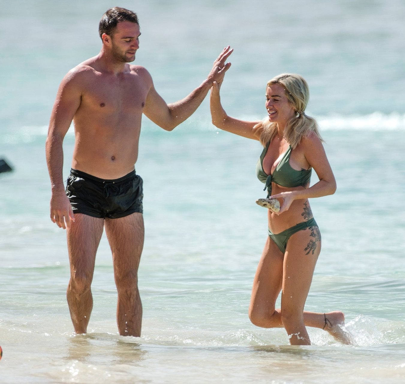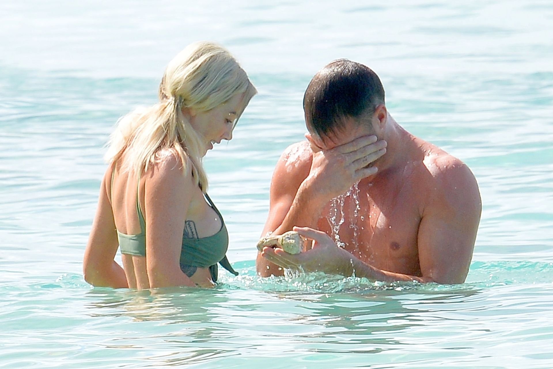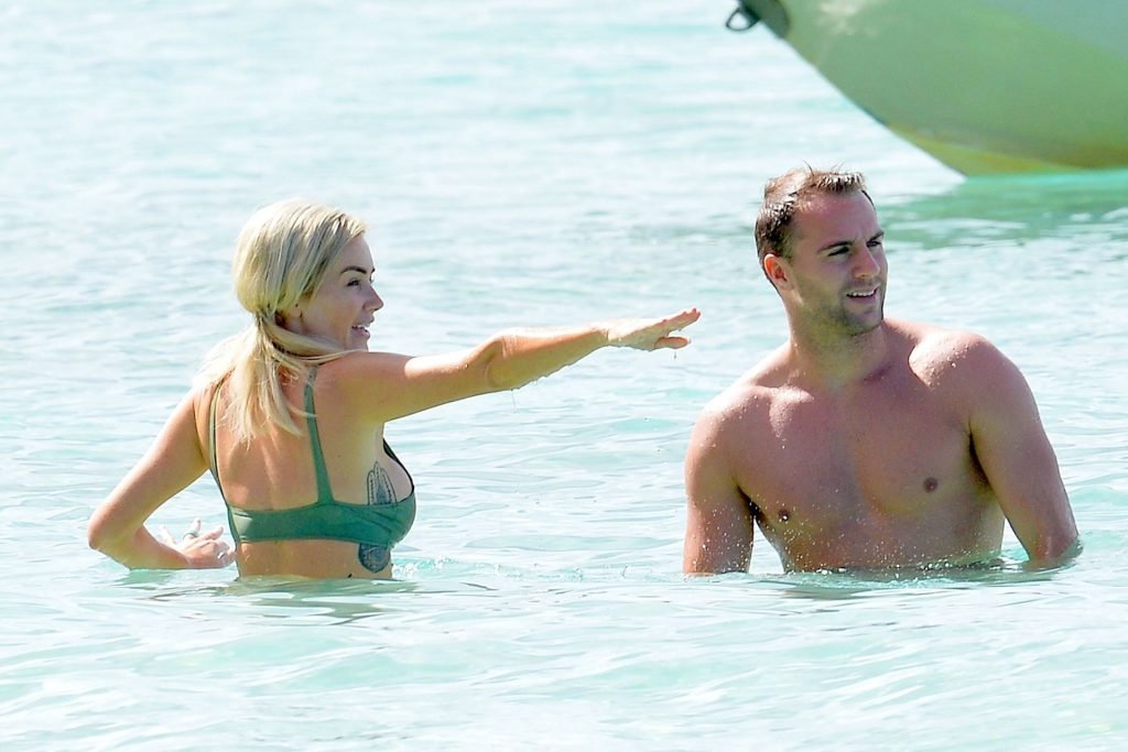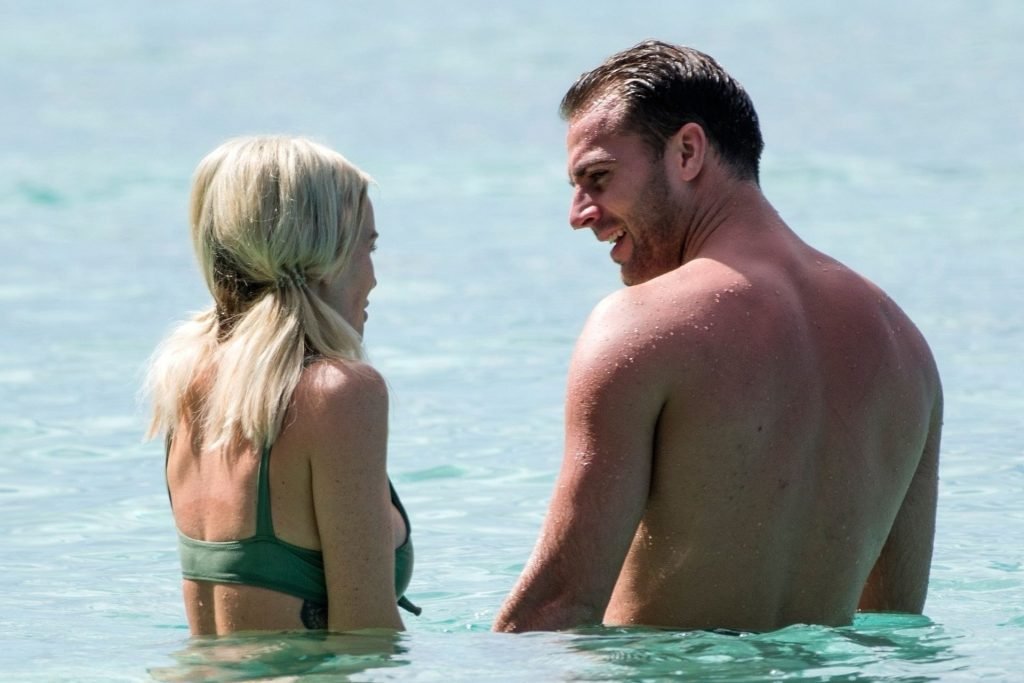 Coppia Laura Anderson e Max Morley sono stati fotografati a Barbados, 12/10/2018. La bionda di 29 anni ha mostrato il suo sexy corpo tatuato in bikini sulla spiaggia.