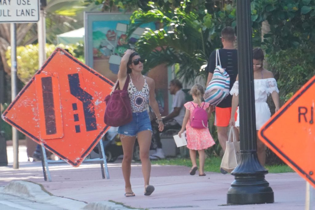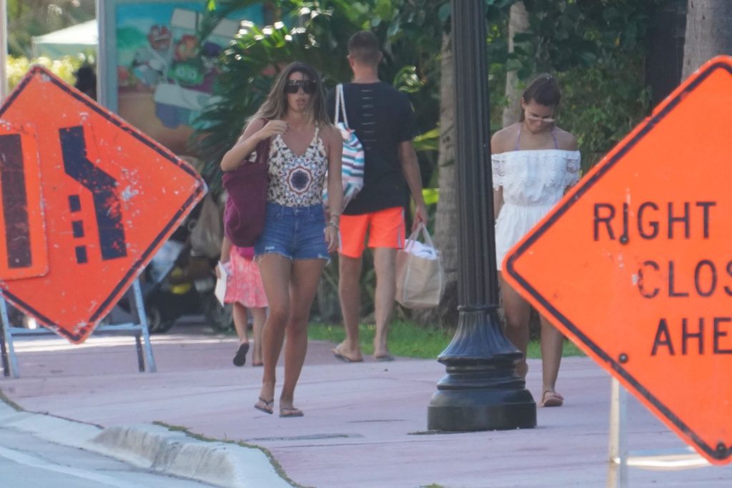 La star spagnola della TV reality Laura Matamoros (26) è stata fotografata in un costume intero in spiaggia con un’amica a Miami, 11/05/2019.