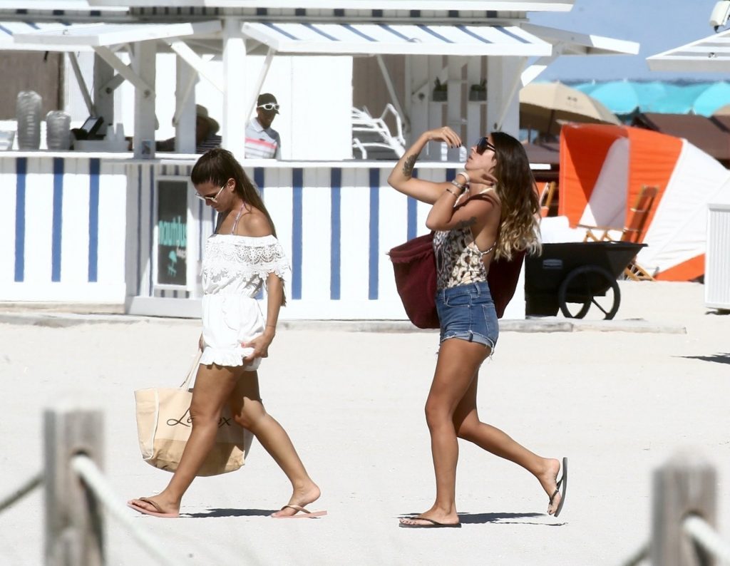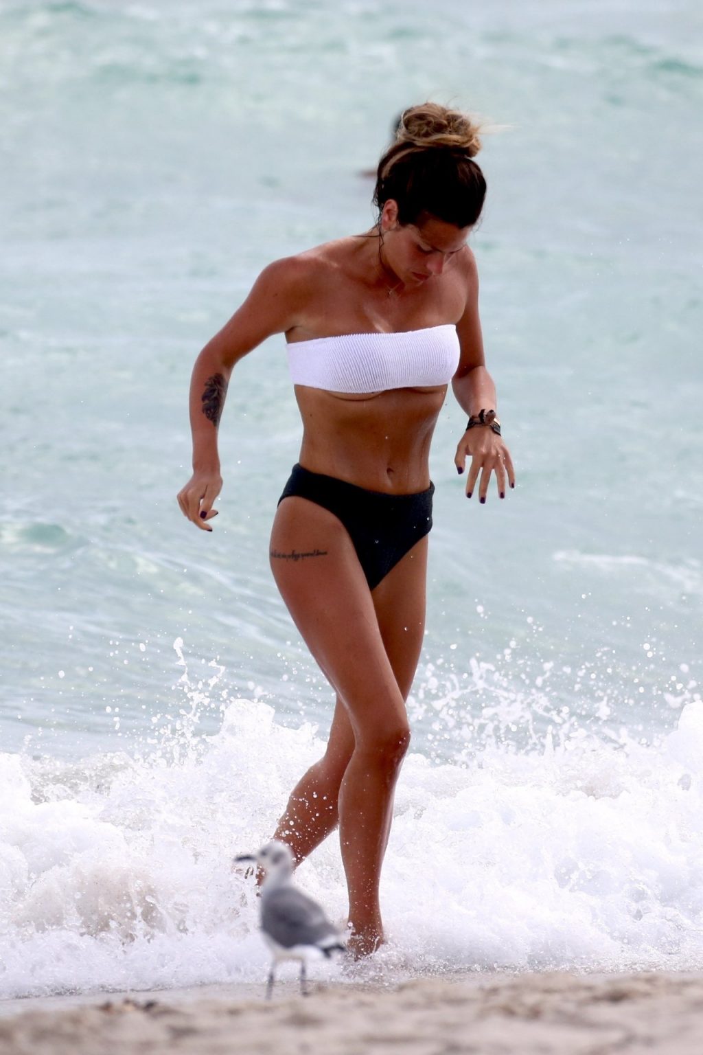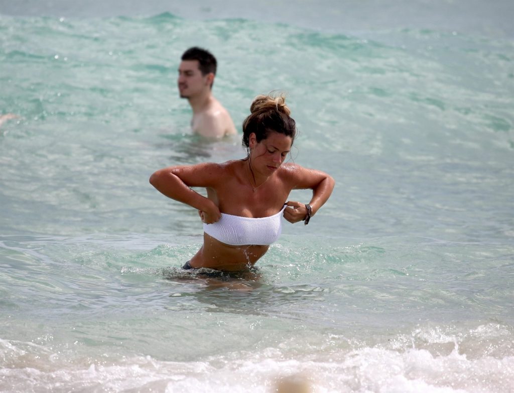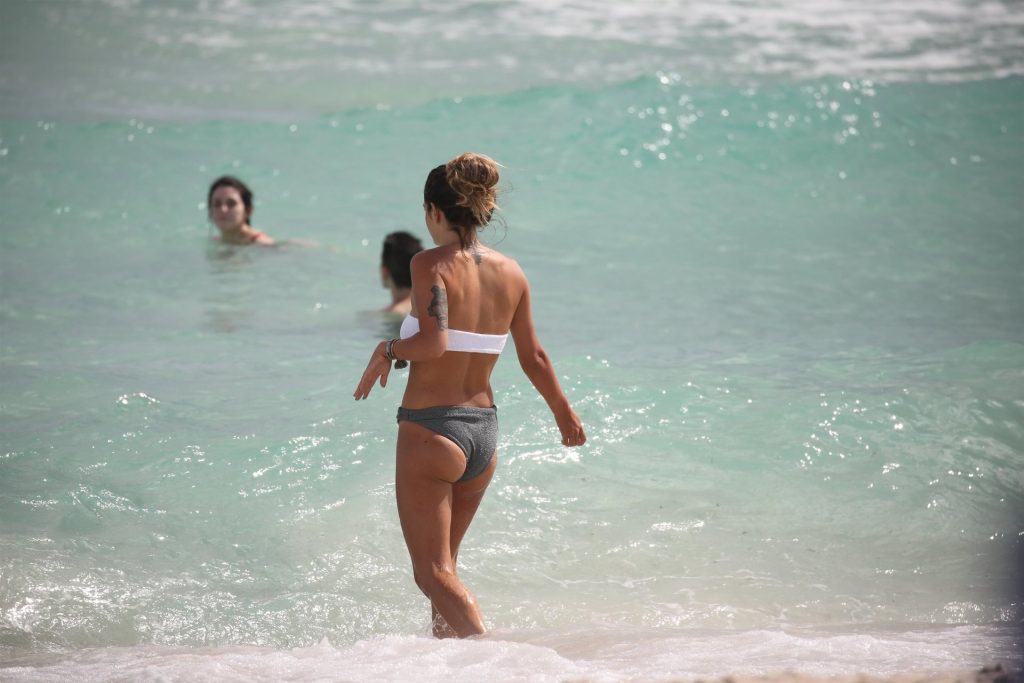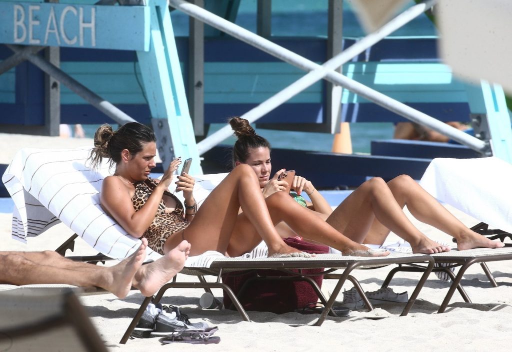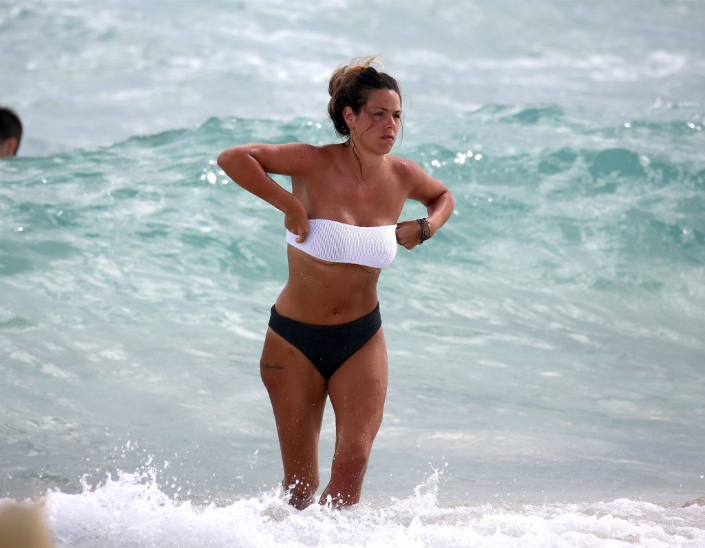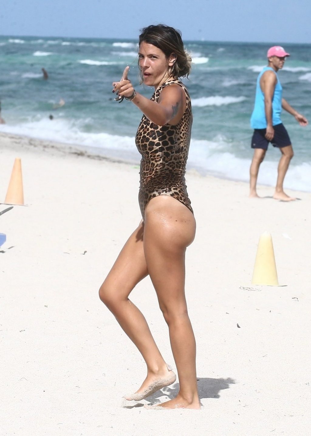 L’influencer spagnola Laura Matamoros illumina Miami Beach! La star dei social media ha sfoggiato la sua figura in un costume intero a stampa leopardata, prima di cambiarsi in un top a fascia bianco e slip bikini grigi, 16/12/2019.