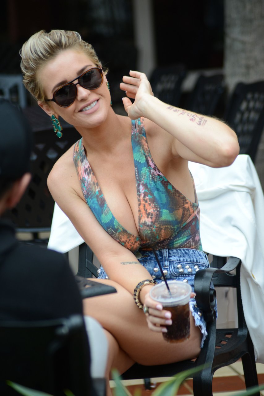 La modella della Home Shopping Network Lauren Hubbard è stata vista fare shopping a Miami, 12/02/2018. La sosia di Sharon Stone era accompagnata dal suo partner/fidanzato. Sembra stupenda con un paio di shorts cortissimi e una maglietta scollata che a malapena contiene il suo seno naturale.