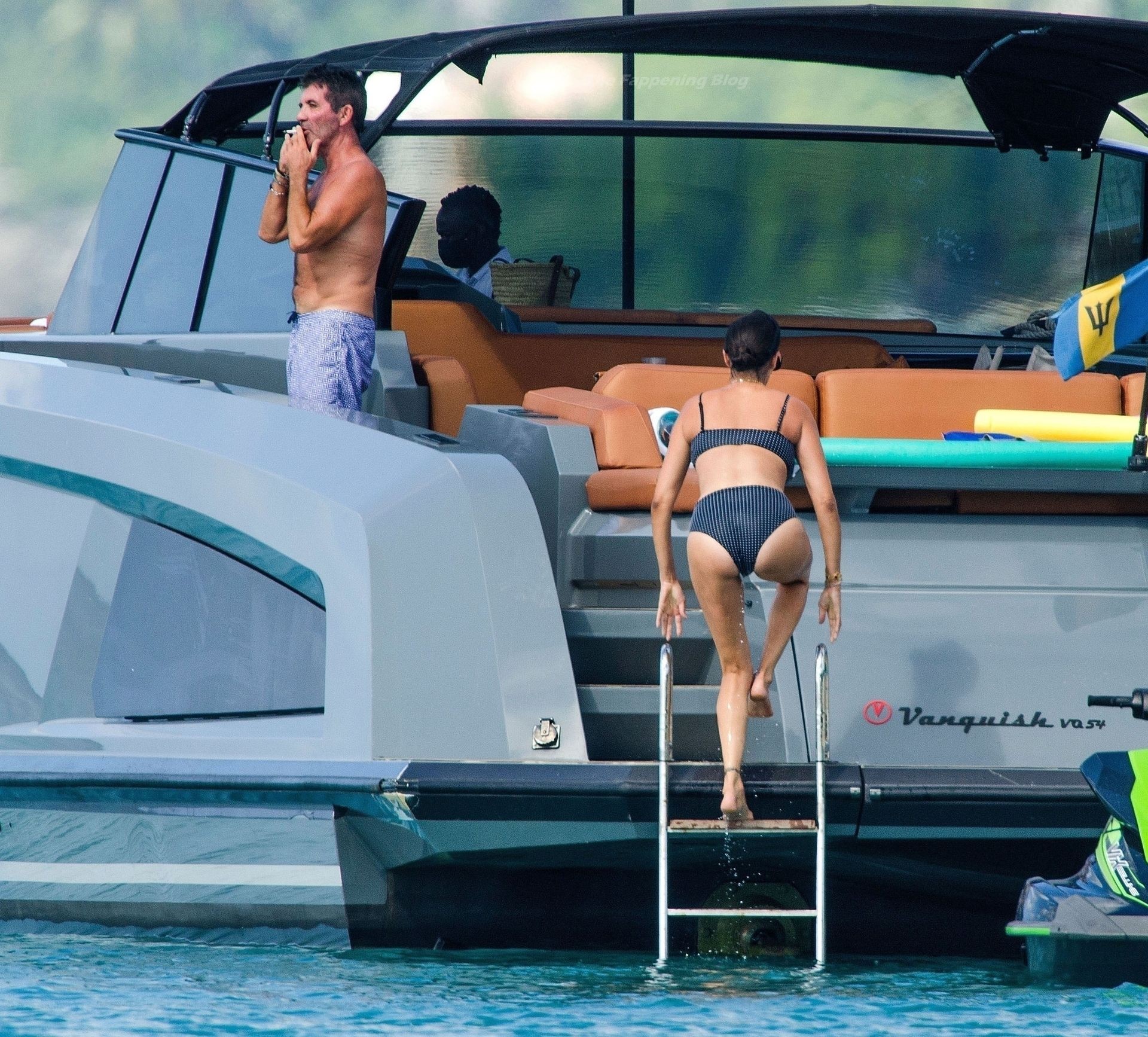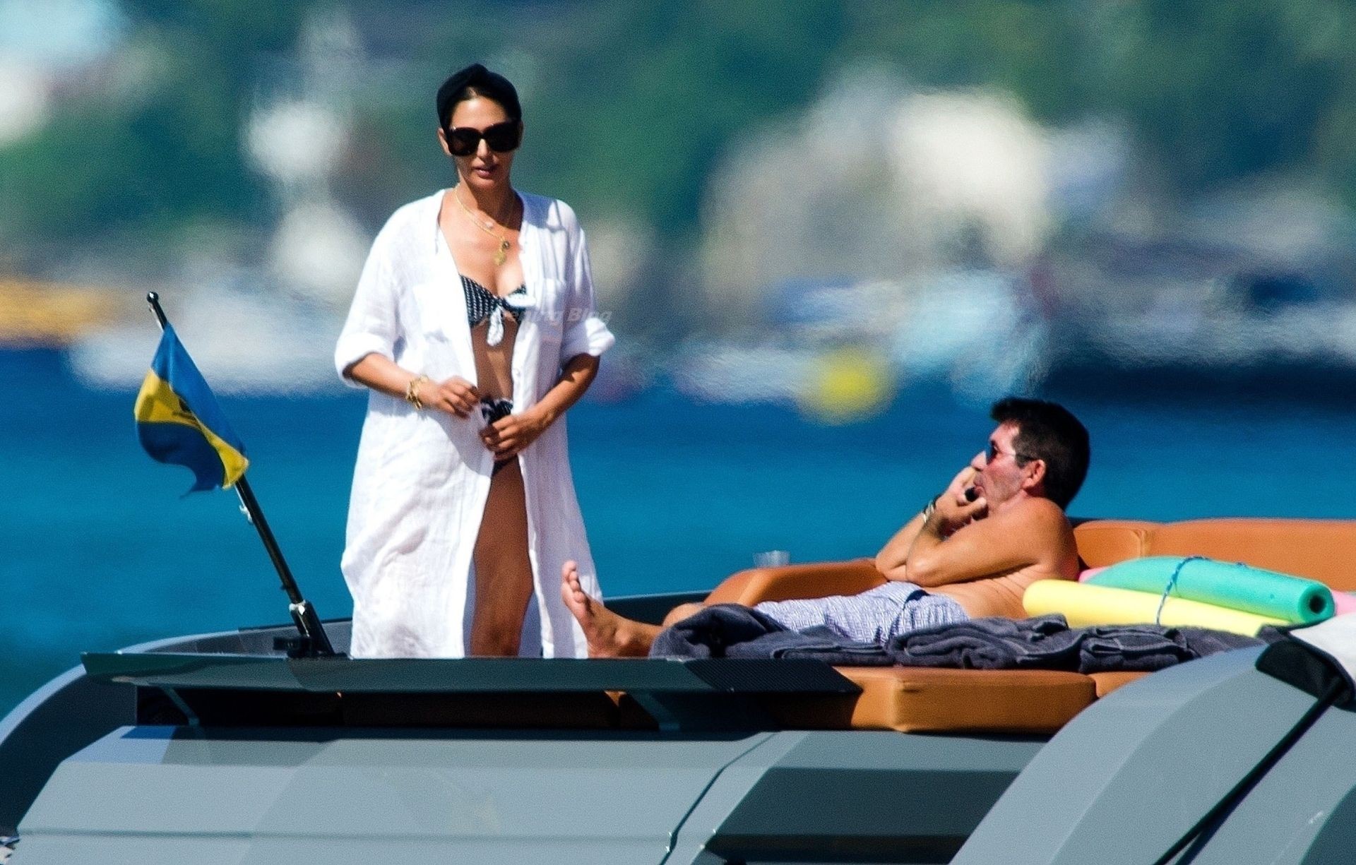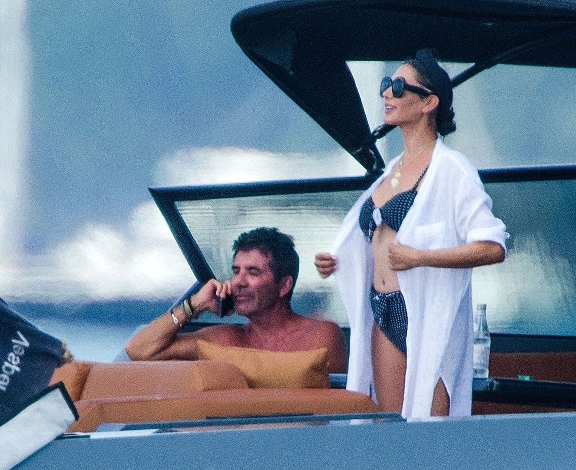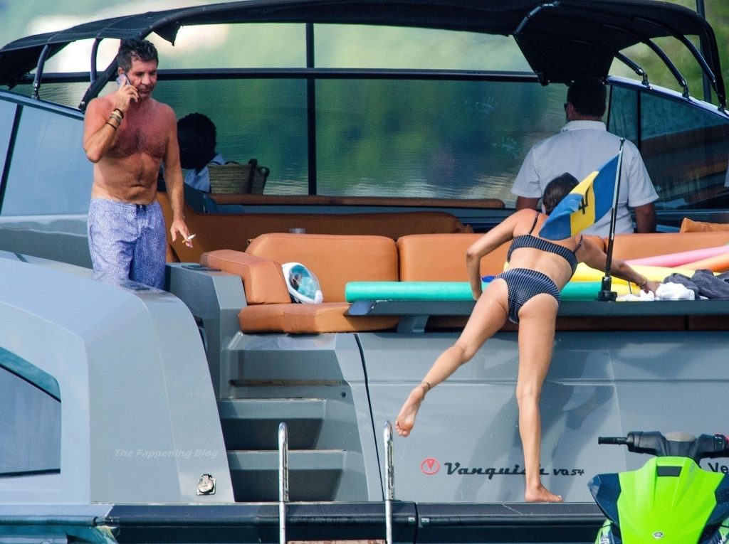 Simon si è assicurato di divertirsi durante la pausa cavalcando qualche onda con il suo jet ski insieme alla partner Lauren Silverman, che si rilassa con una sigaretta in bocca mostrando la sua figura elegante nel suo piccolo e succinto bikini.