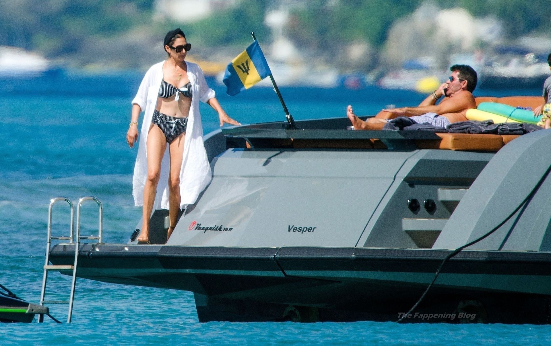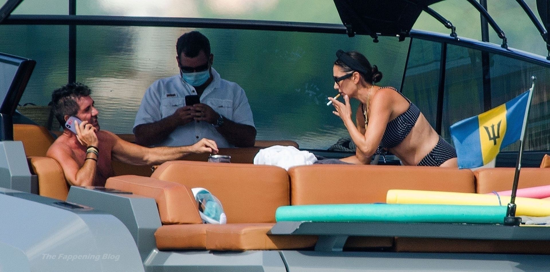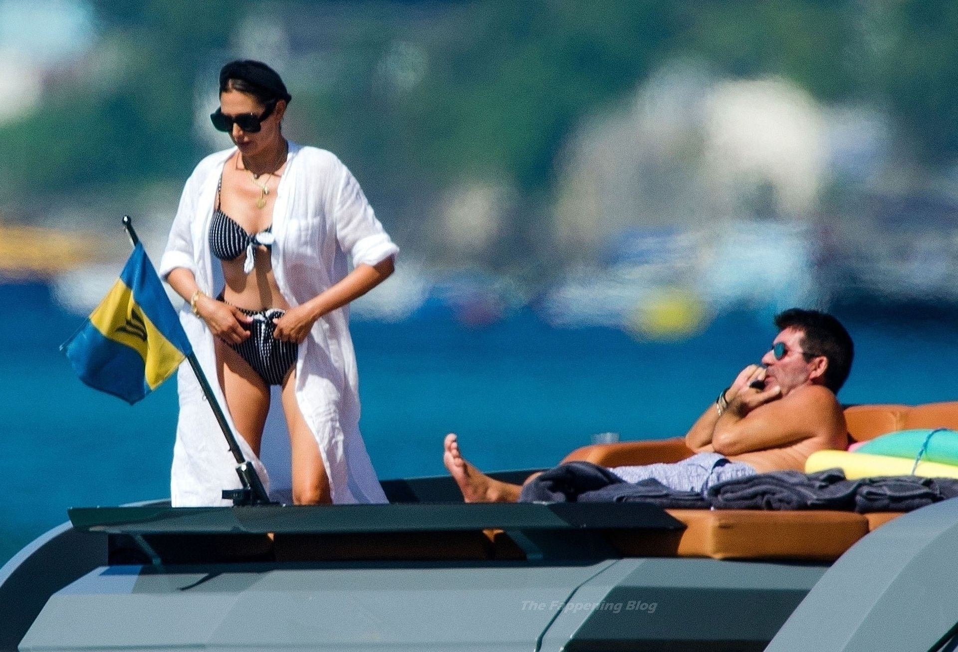 Simon si è assicurato di divertirsi durante la pausa cavalcando qualche onda con il suo jet ski insieme alla partner Lauren Silverman, che si rilassa con una sigaretta in bocca mostrando la sua figura elegante nel suo piccolo e succinto bikini.