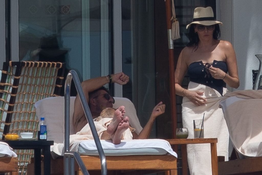 Simon Cowell è stato visto mentre sorseggiava del succo verde fresco mentre si godeva una vacanza in spiaggia a Cabo con Lauren Silverman e il loro figlio, 01/10/2019. Simon ha sicuramente perso molto peso recentemente e mostrava una vita più snella mentre si divertiva nella piscina del suo resort.