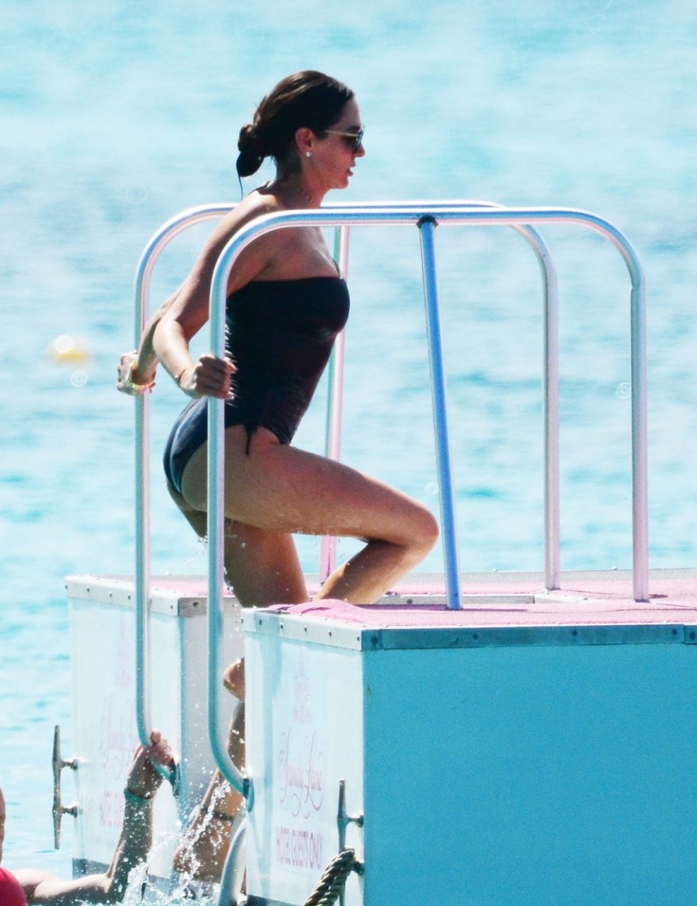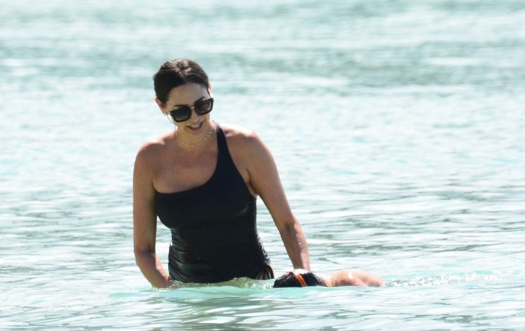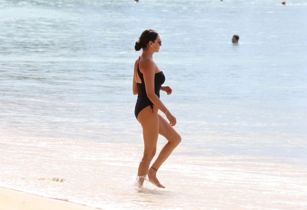 La fidanzata di Simon Cowell, Lauren Silverman di 41 anni, è stata fotografata in un costume intero nero sulla spiaggia a Barbados, 18/12/2018.