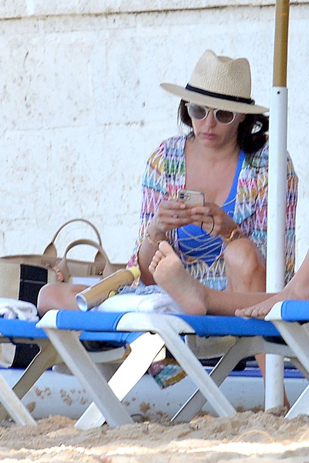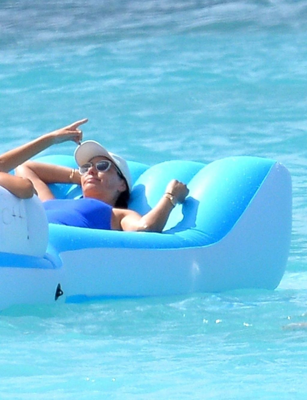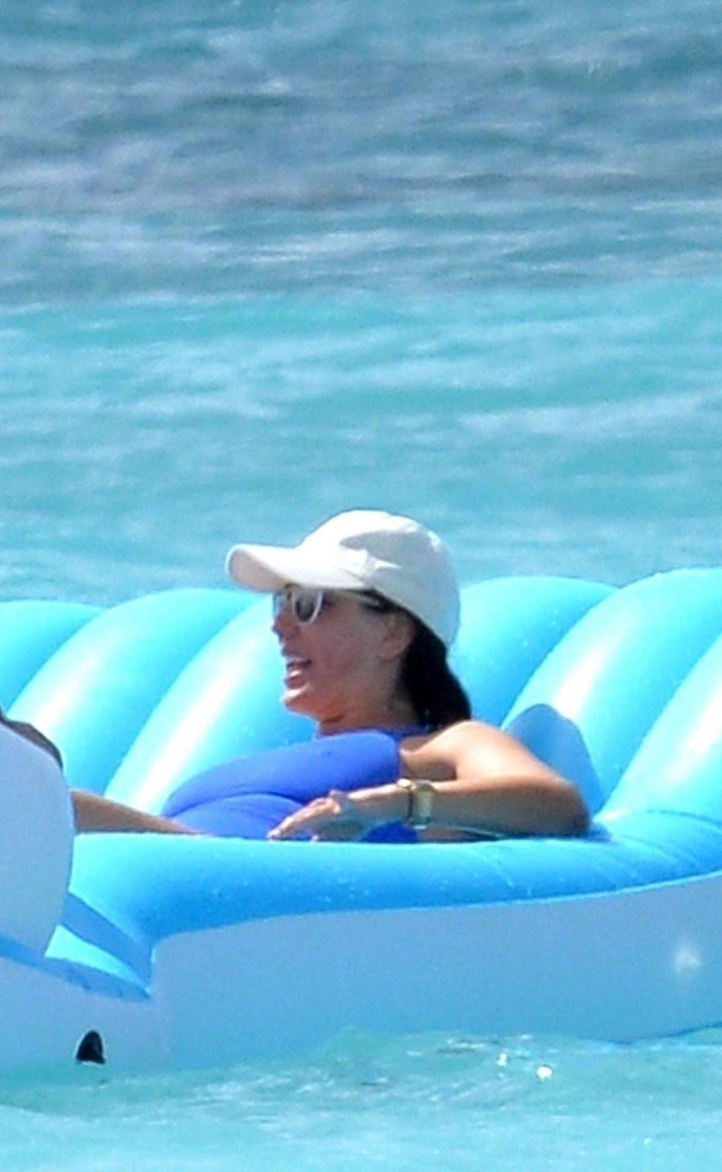 La sempre molto elegante Lauren, con la sua borsa da spiaggia Chanel, si rilassa sul lettino prendisole e più tardi si è tuffata in mare per rinfrescarsi.